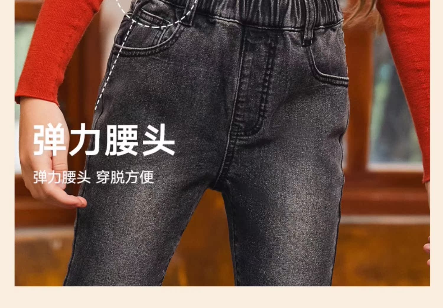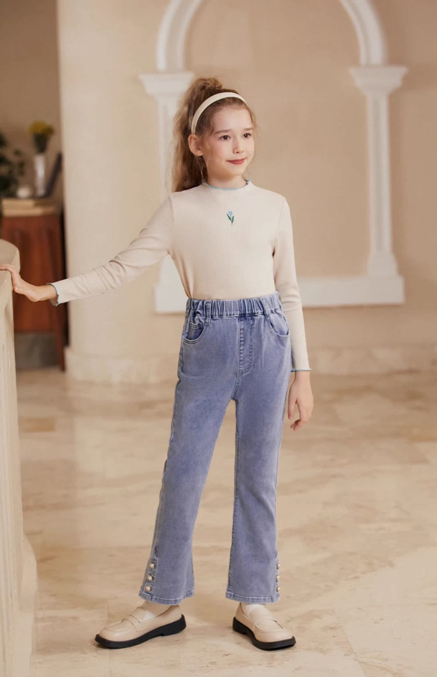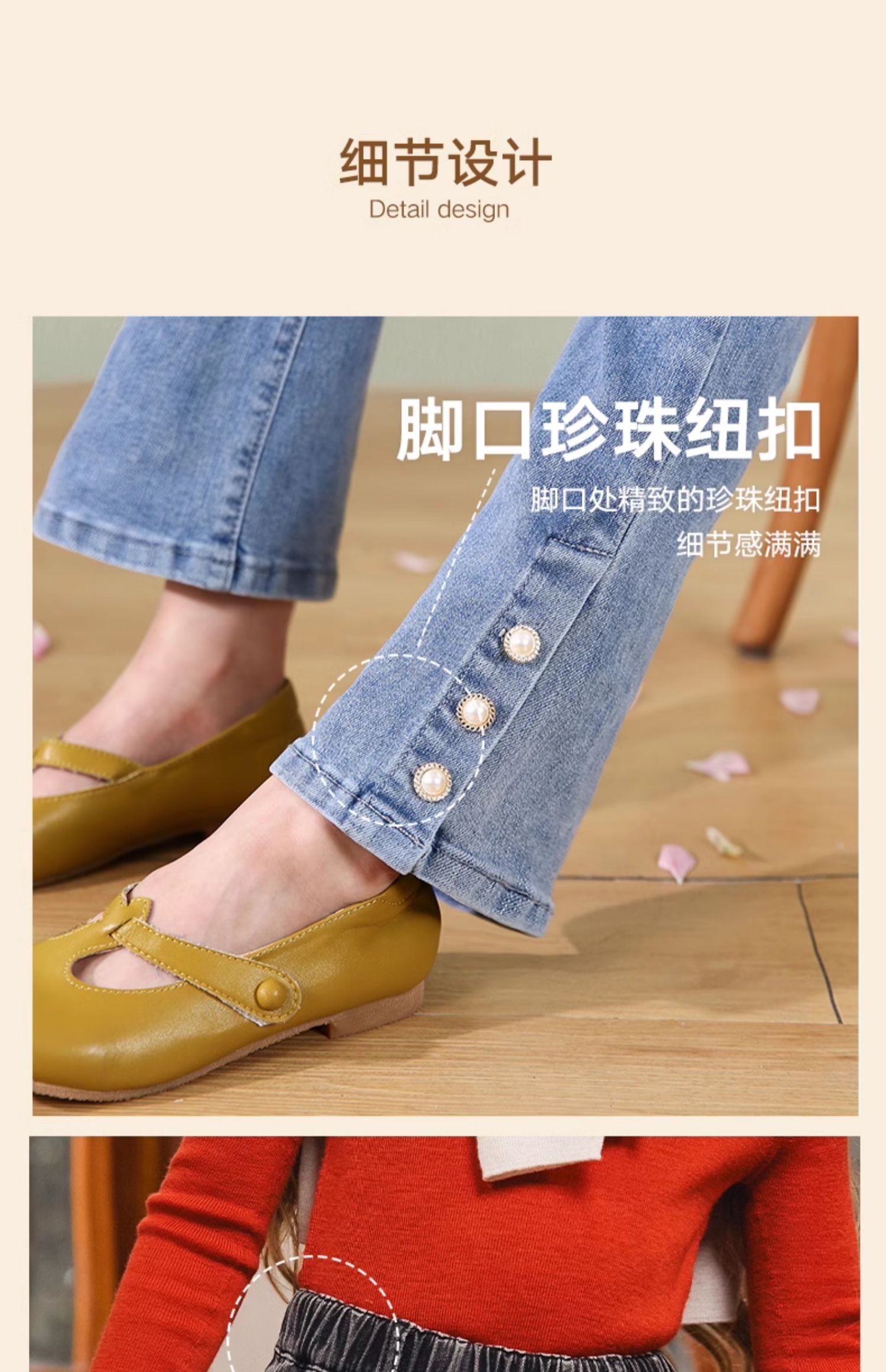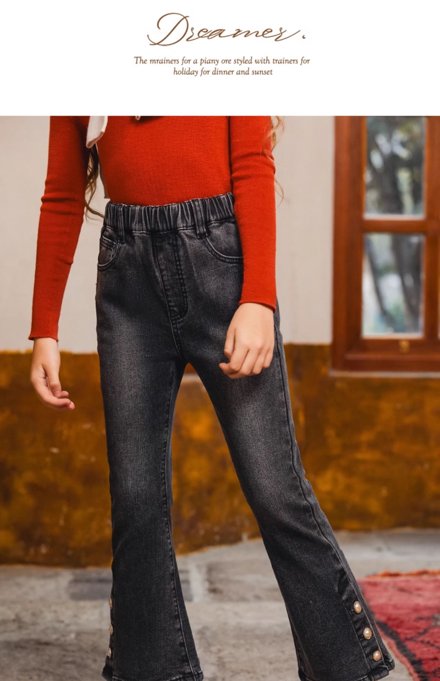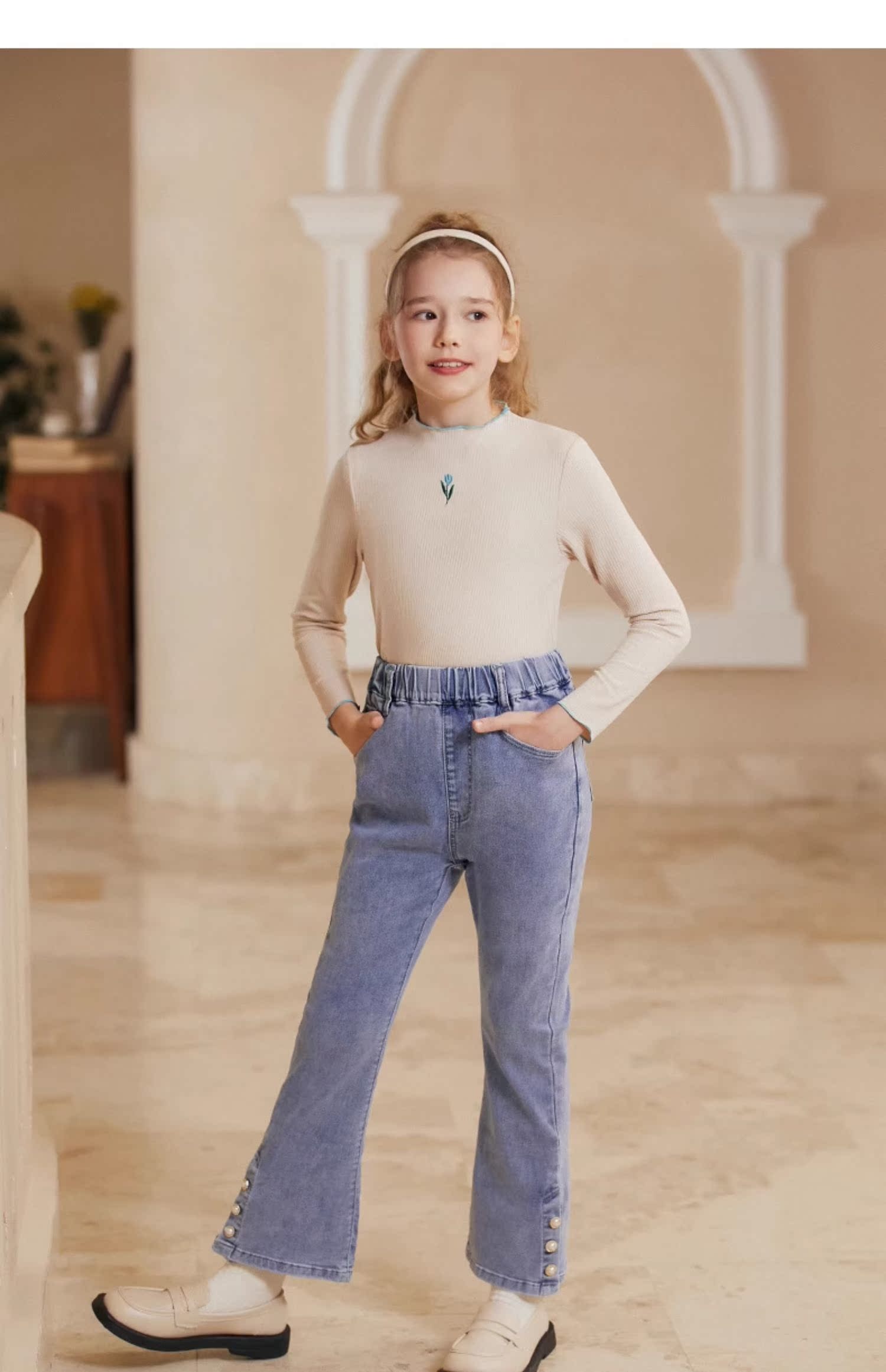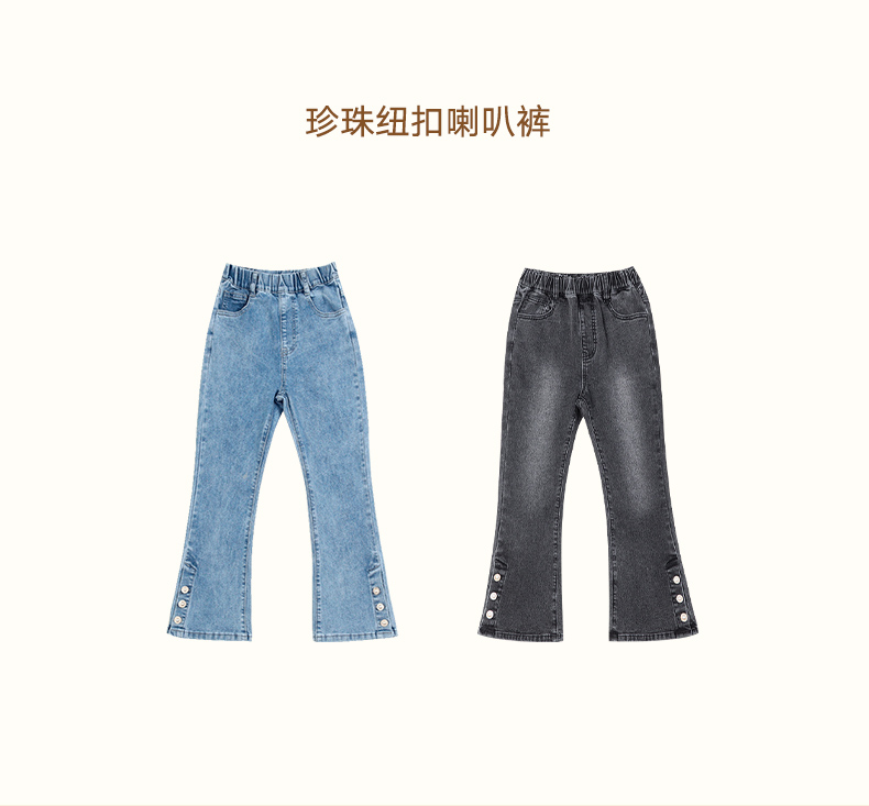 little naive女童牛仔裤春秋款中大童休闲长裤洋气儿童牛仔喇叭裤