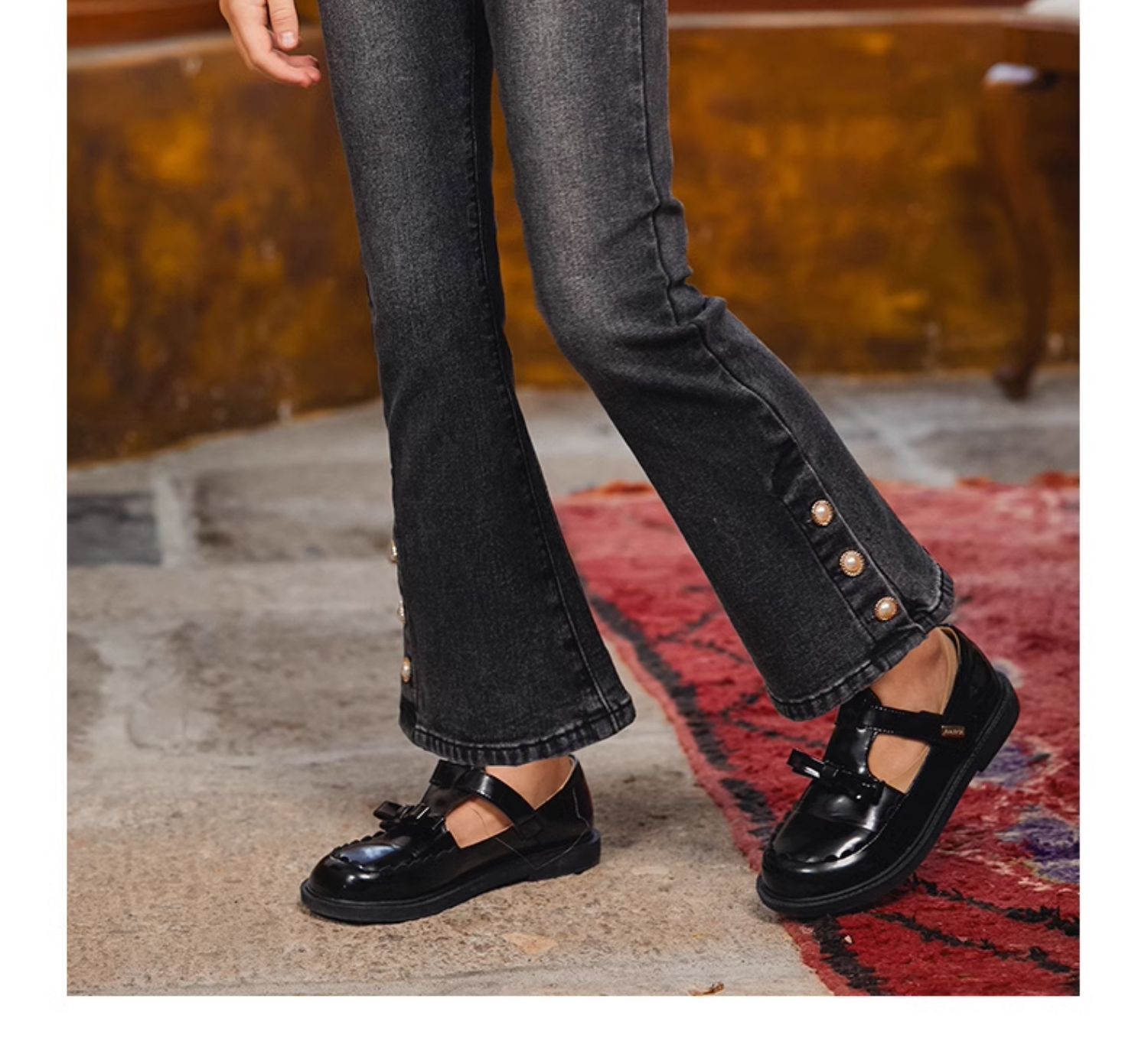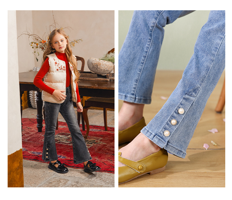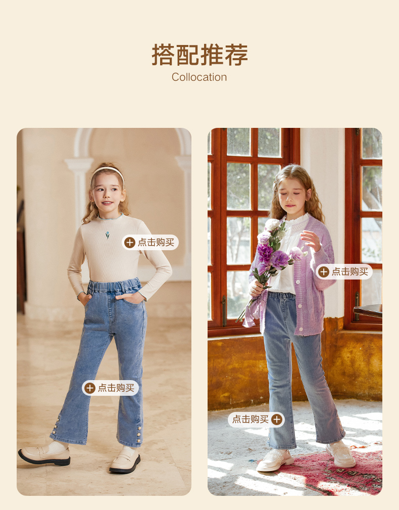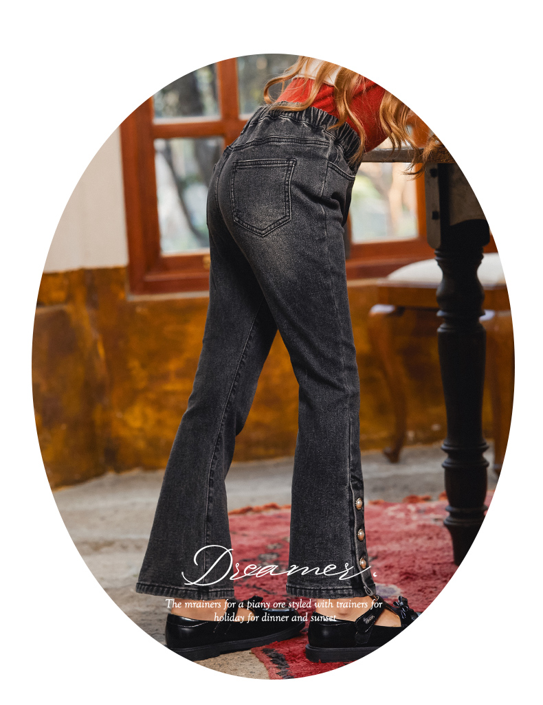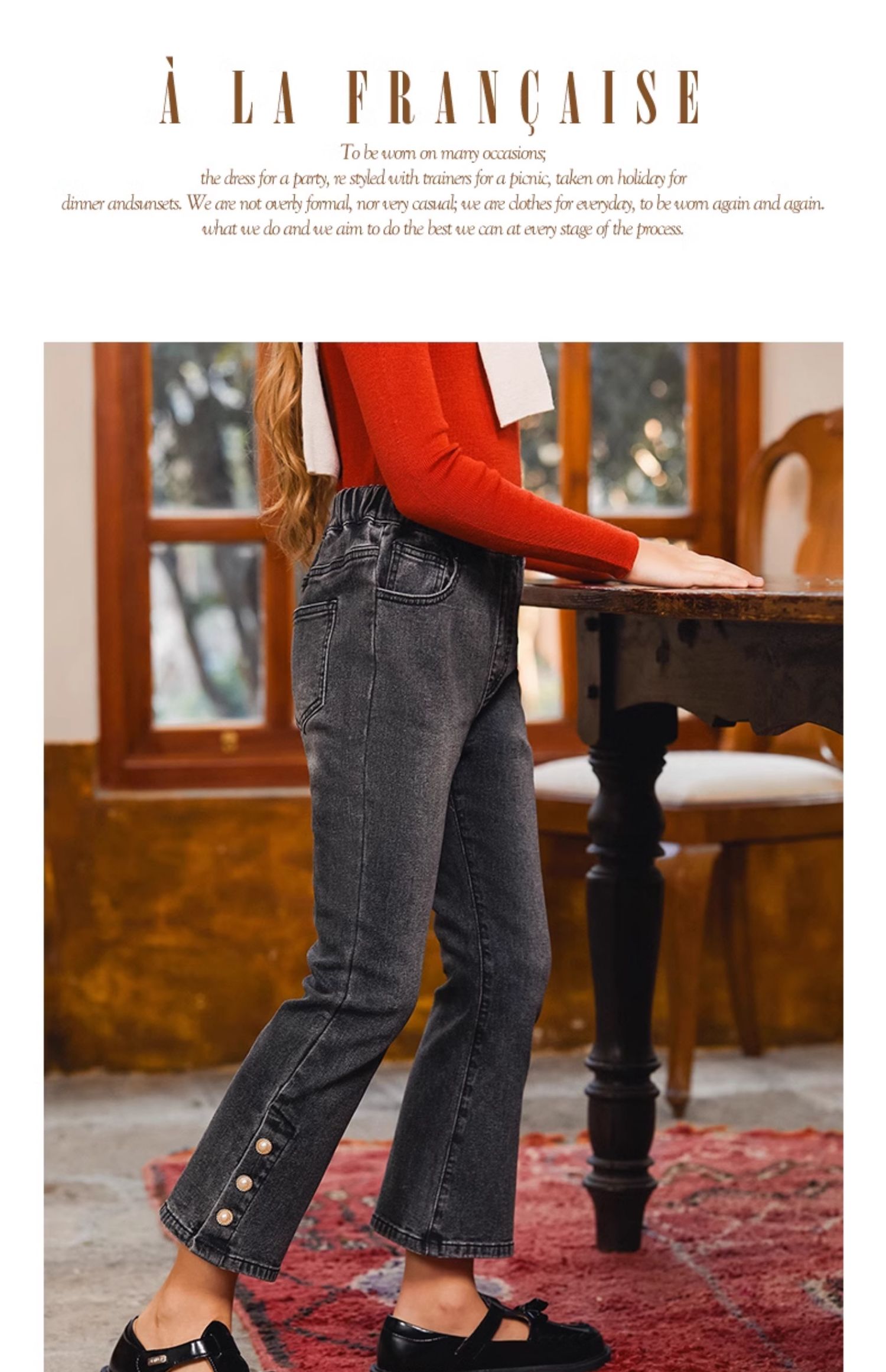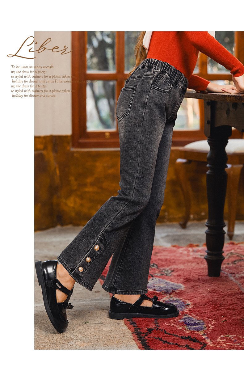 little naive女童牛仔裤春秋款中大童休闲长裤洋气儿童牛仔喇叭裤