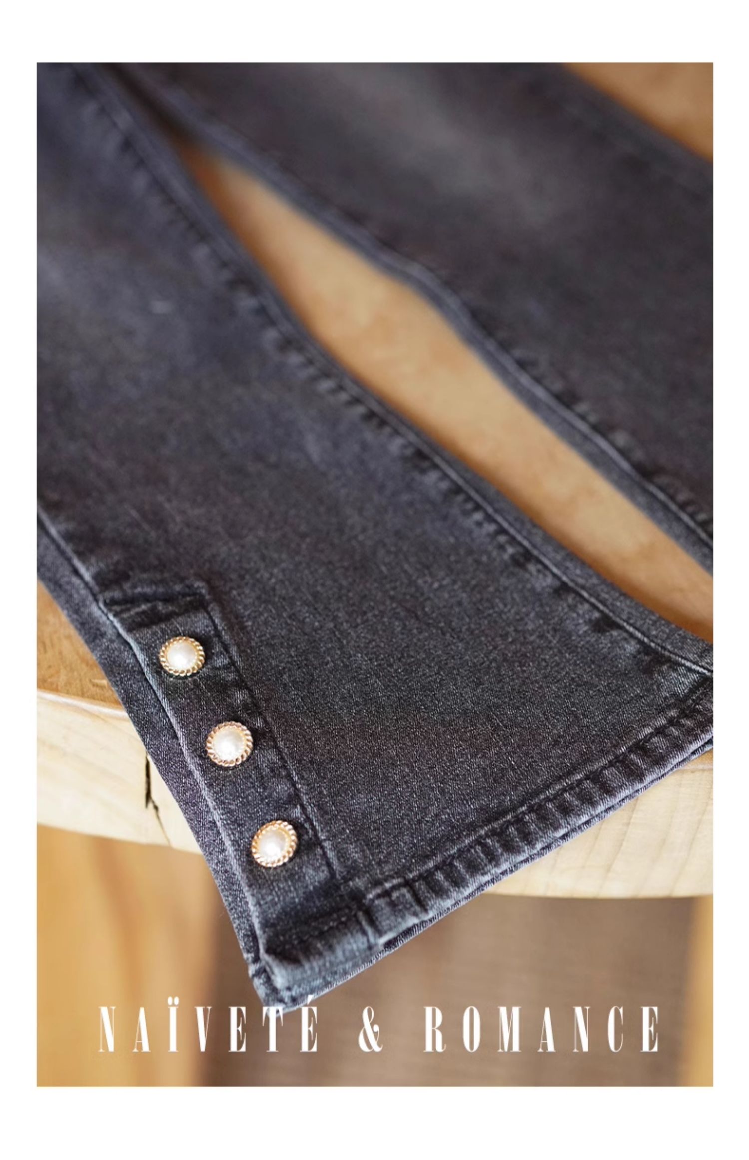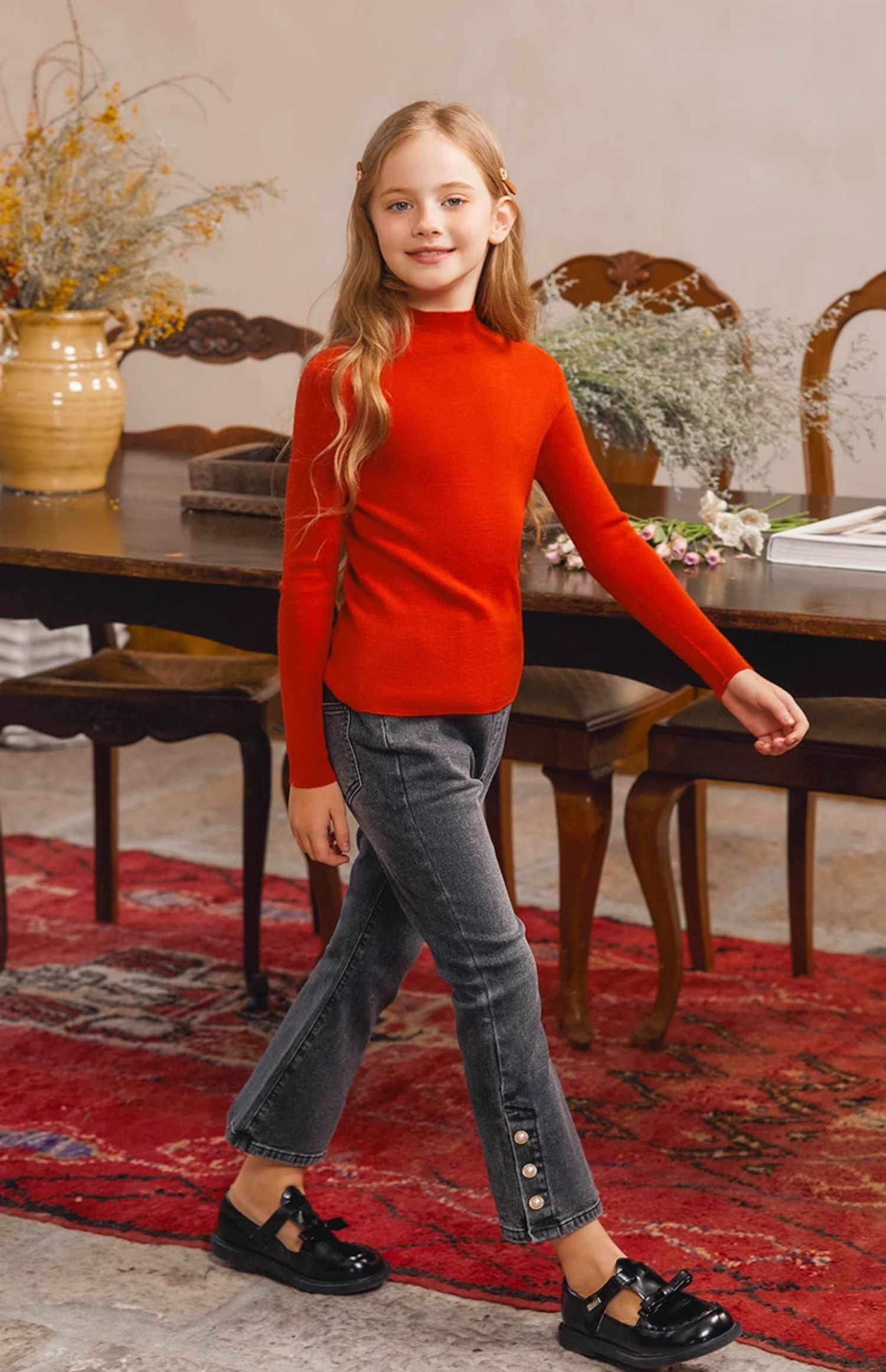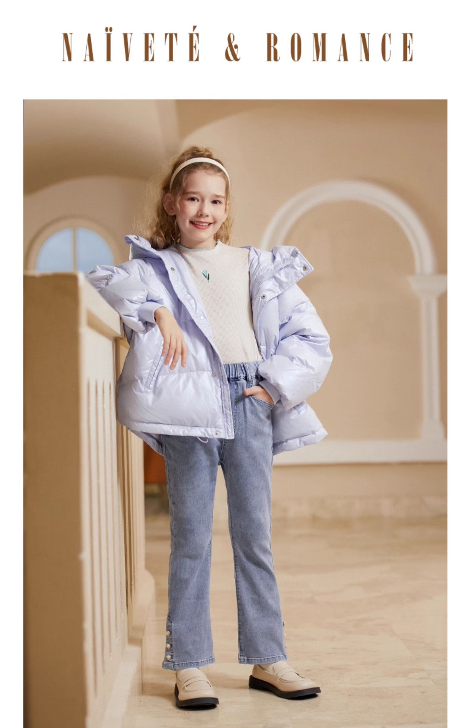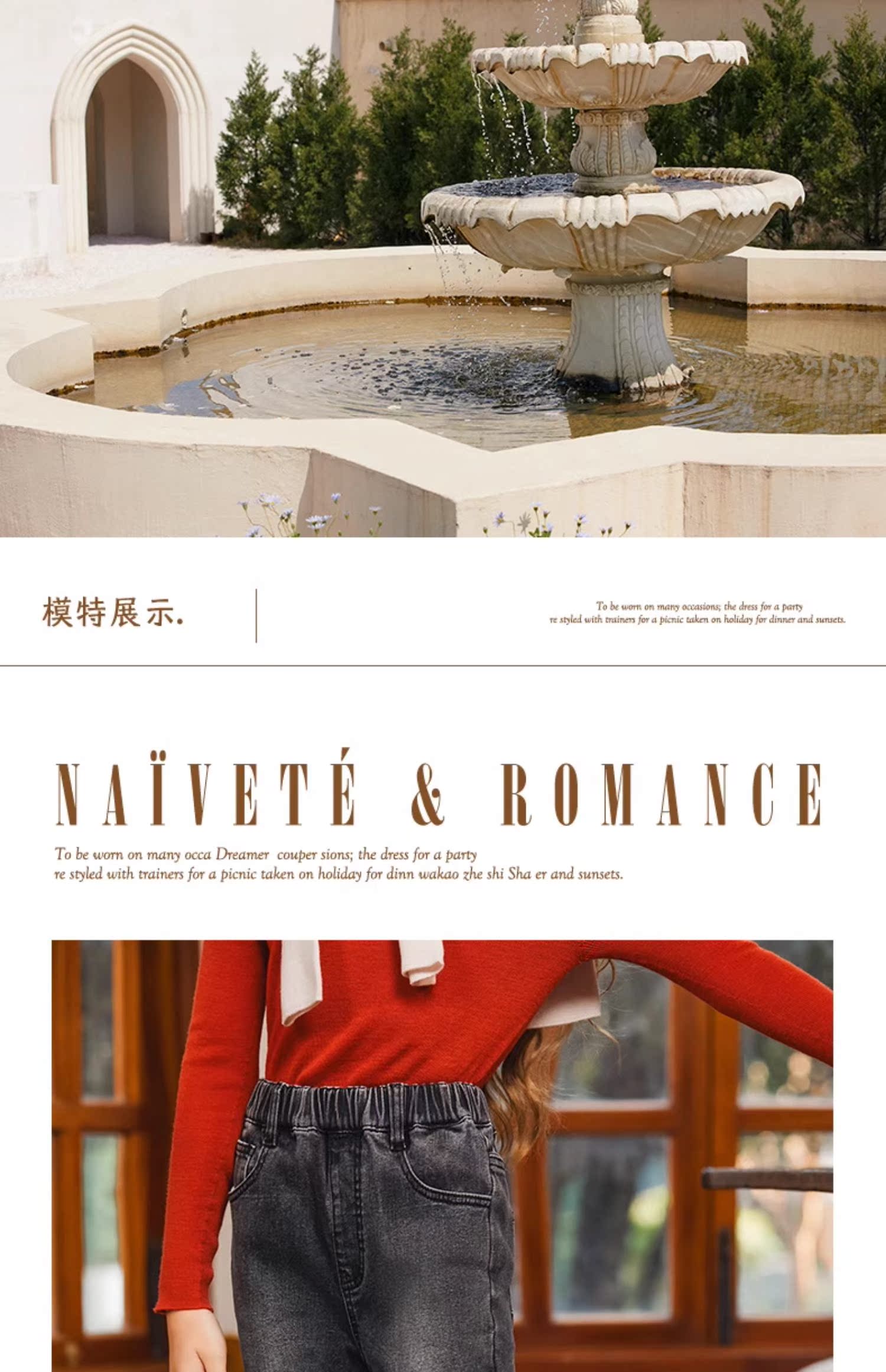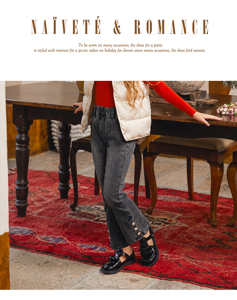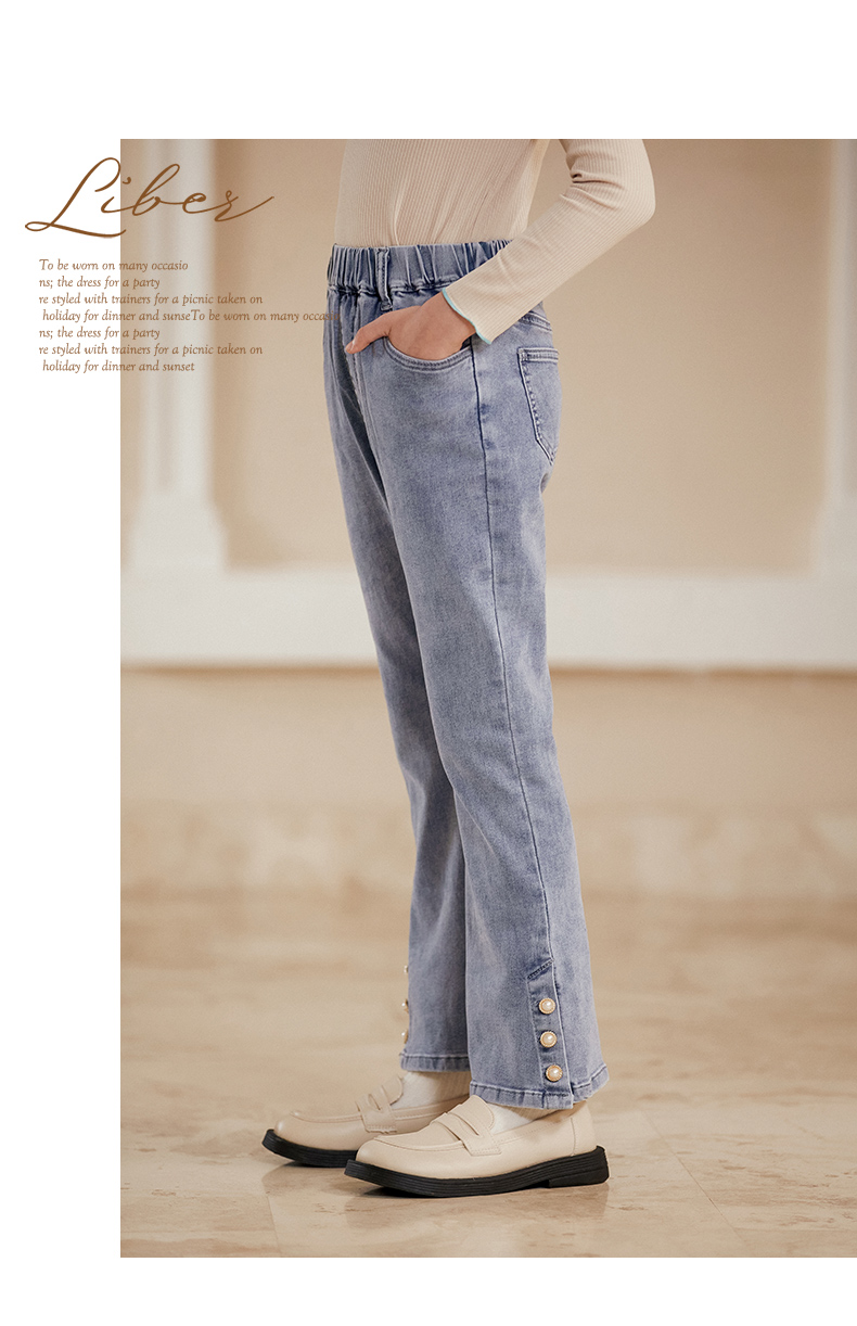 little naive女童牛仔裤春秋款中大童休闲长裤洋气儿童牛仔喇叭裤