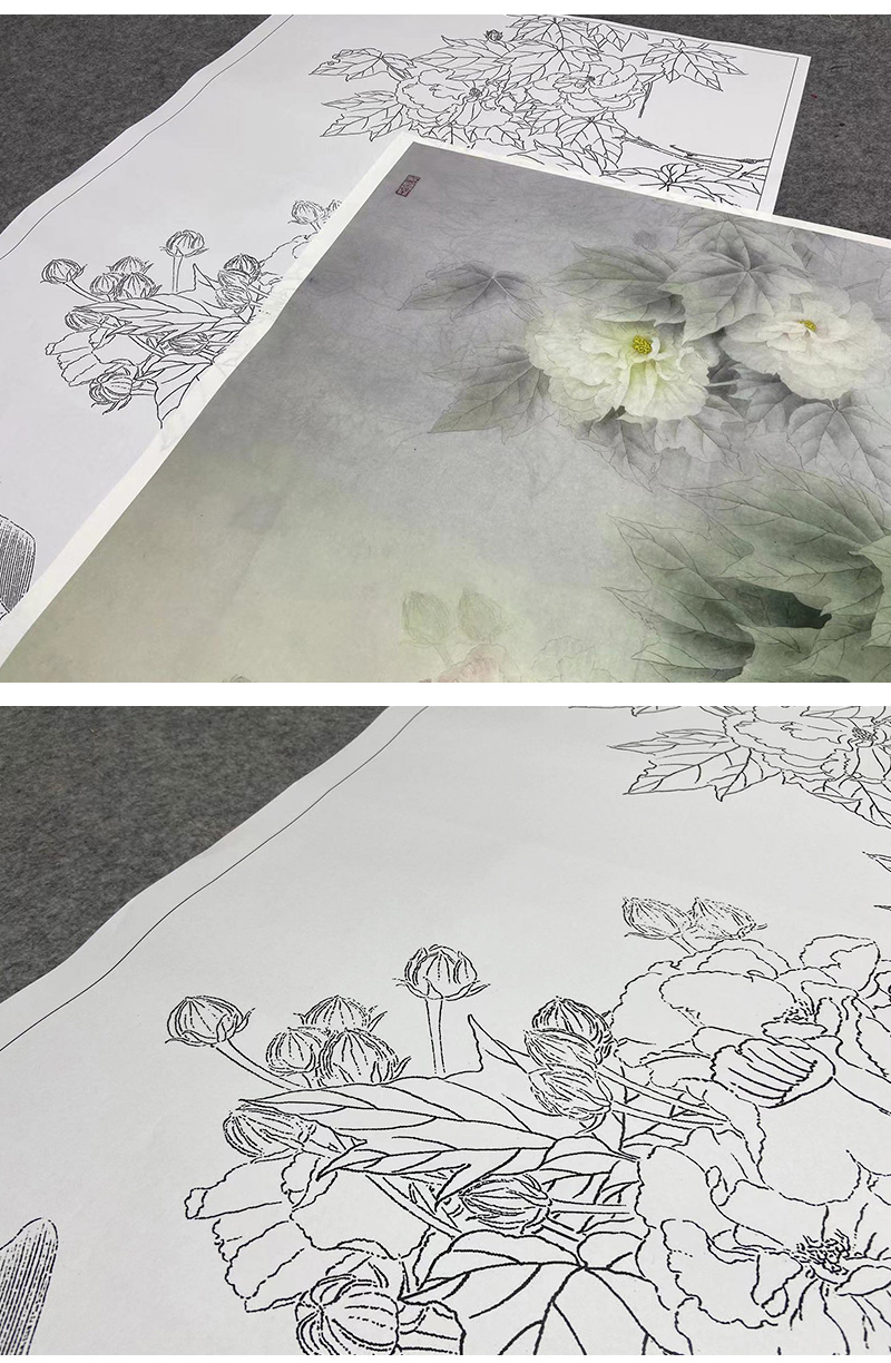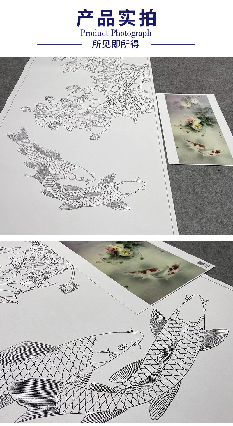 【大彩图】龚雪青工笔画白描底稿《荣华富贵》芙蓉鱼临摹勾线花鸟线稿XQ61