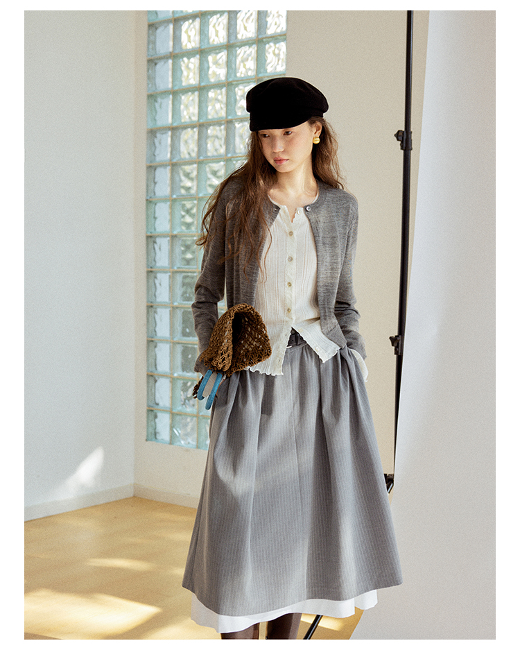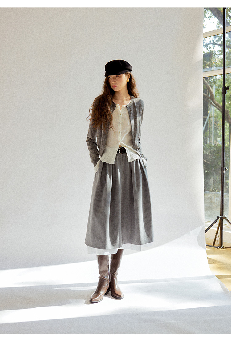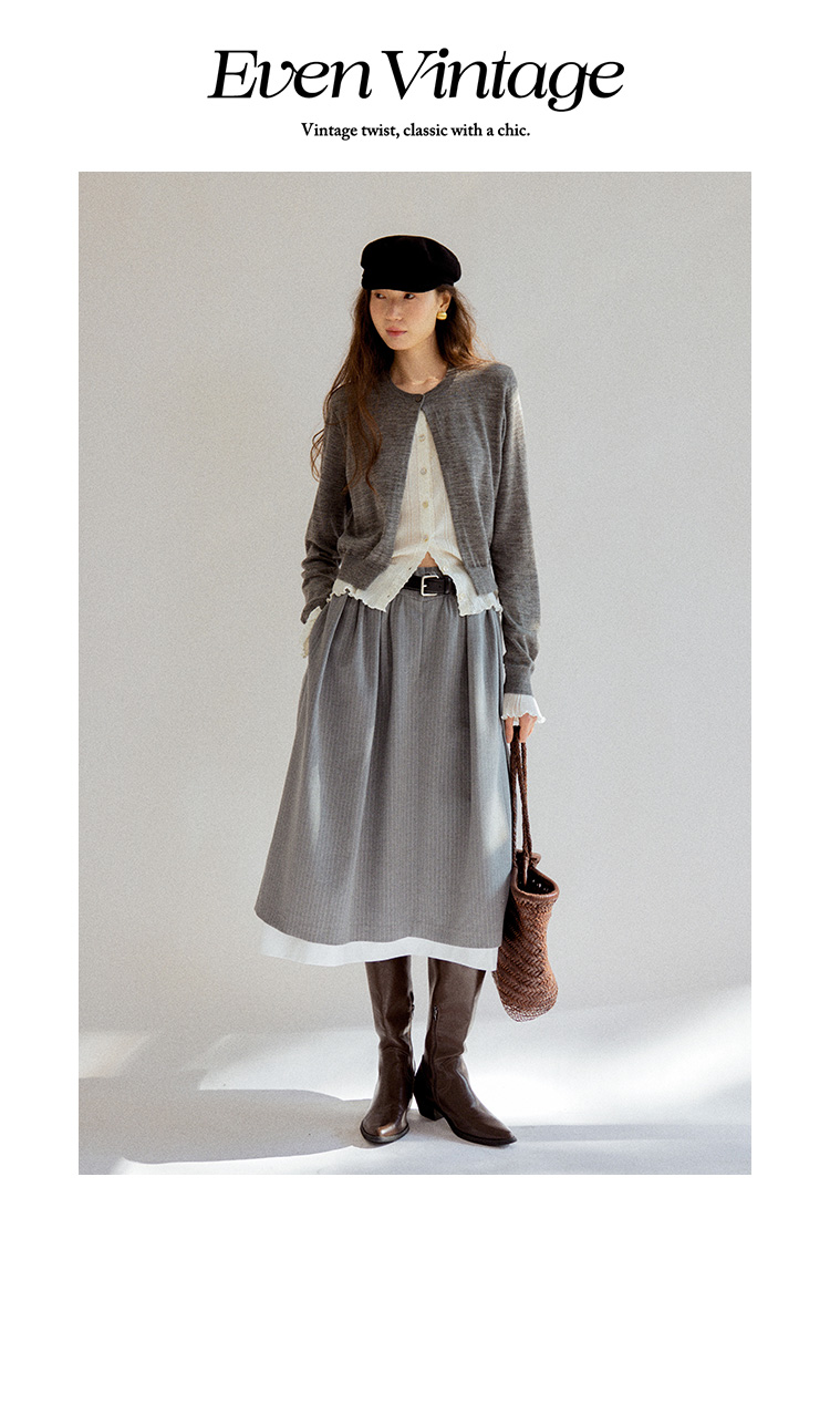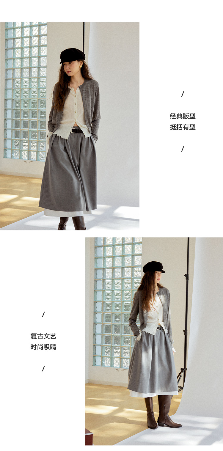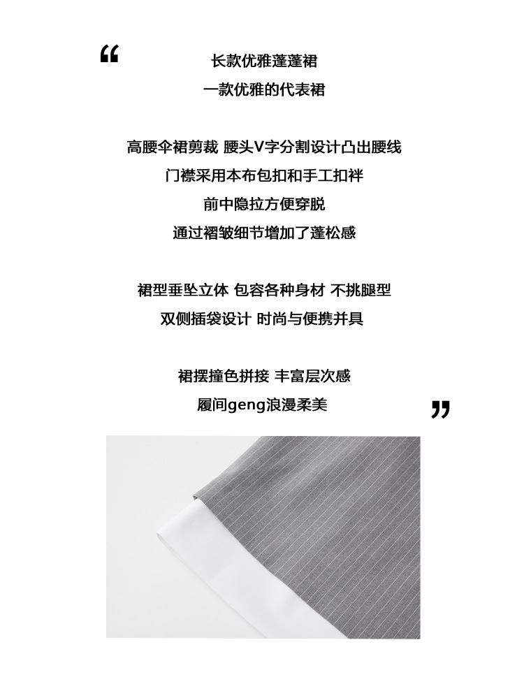 Even Vintage丨复古格雷系 长款优雅挺阔有型高腰伞裙蓬蓬半身裙
