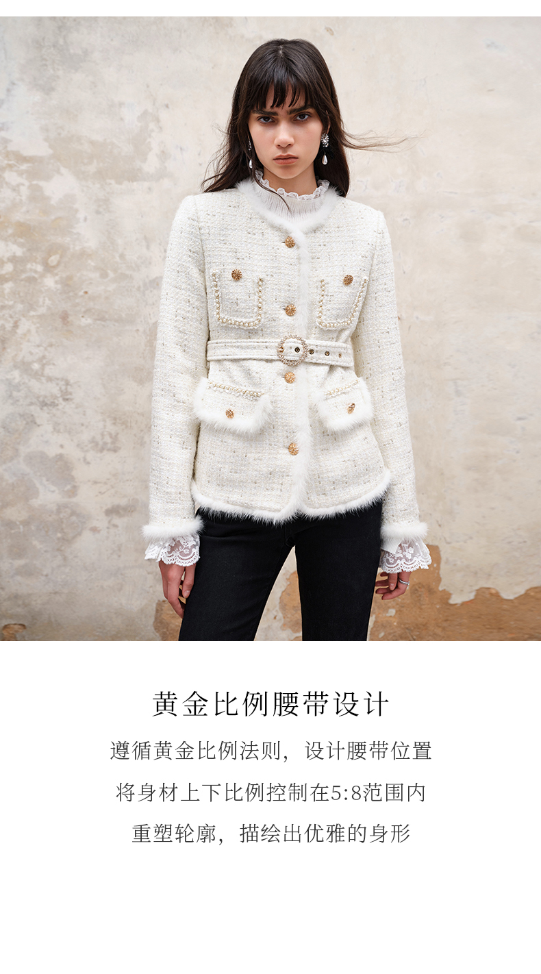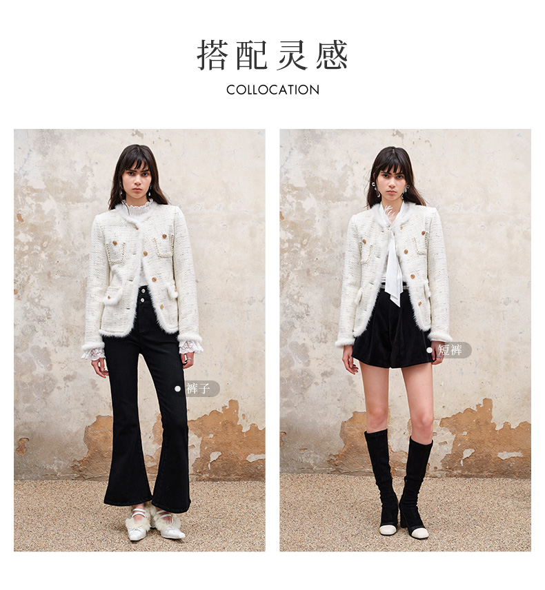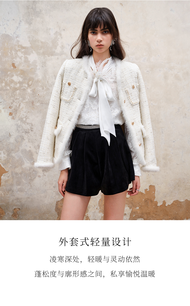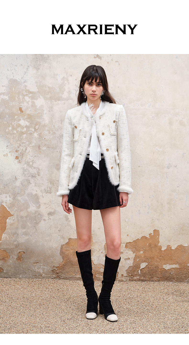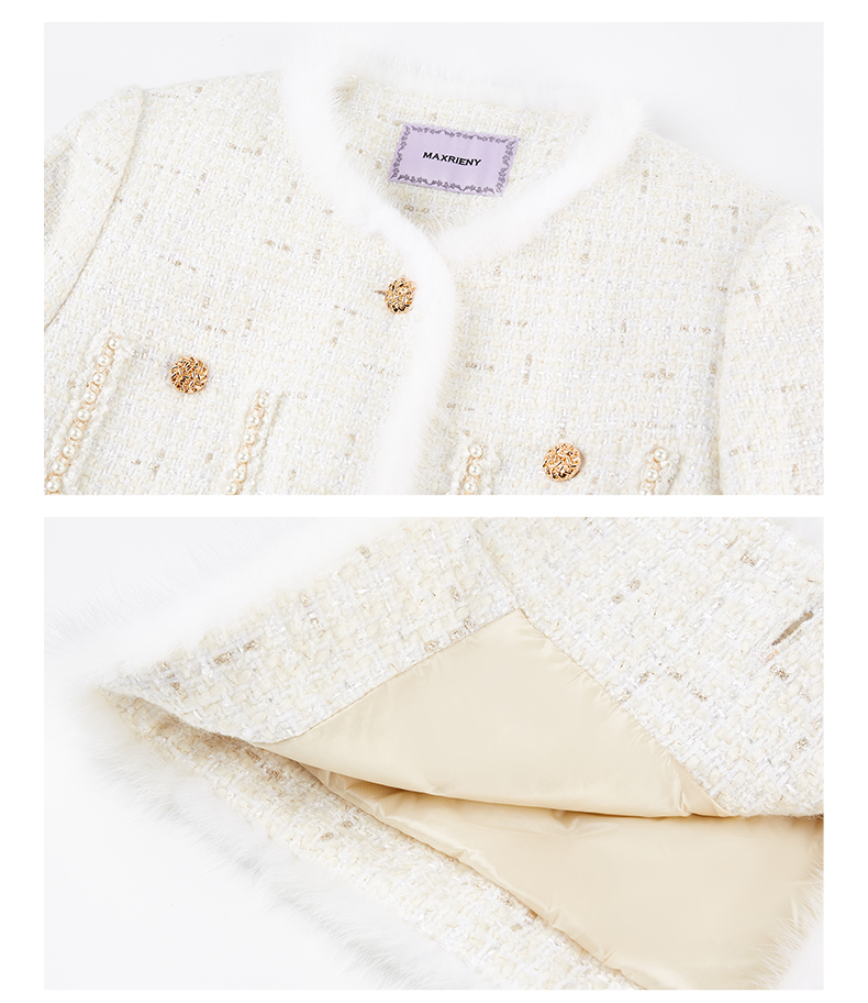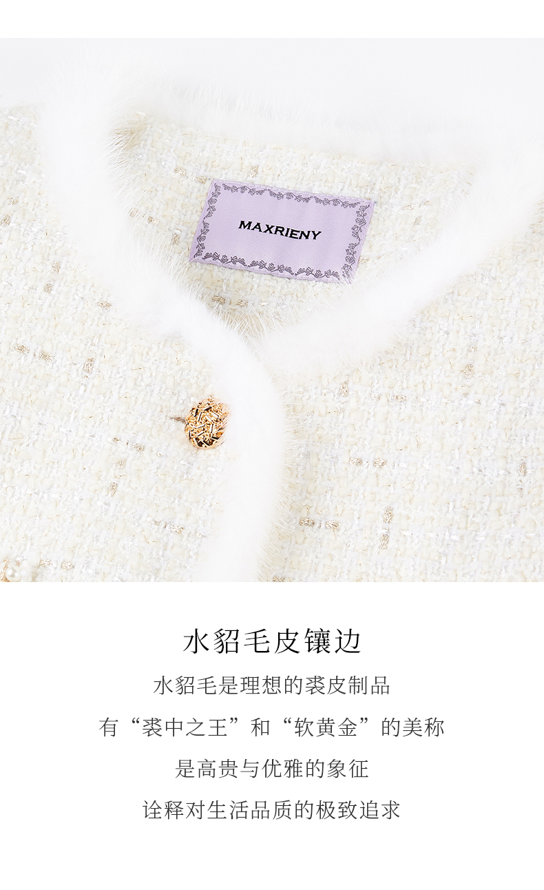 【防寒】MAXRIENY名媛千金小香风轻羽绒服气质冬季新款复古水貂毛(货号:MS88DC539)