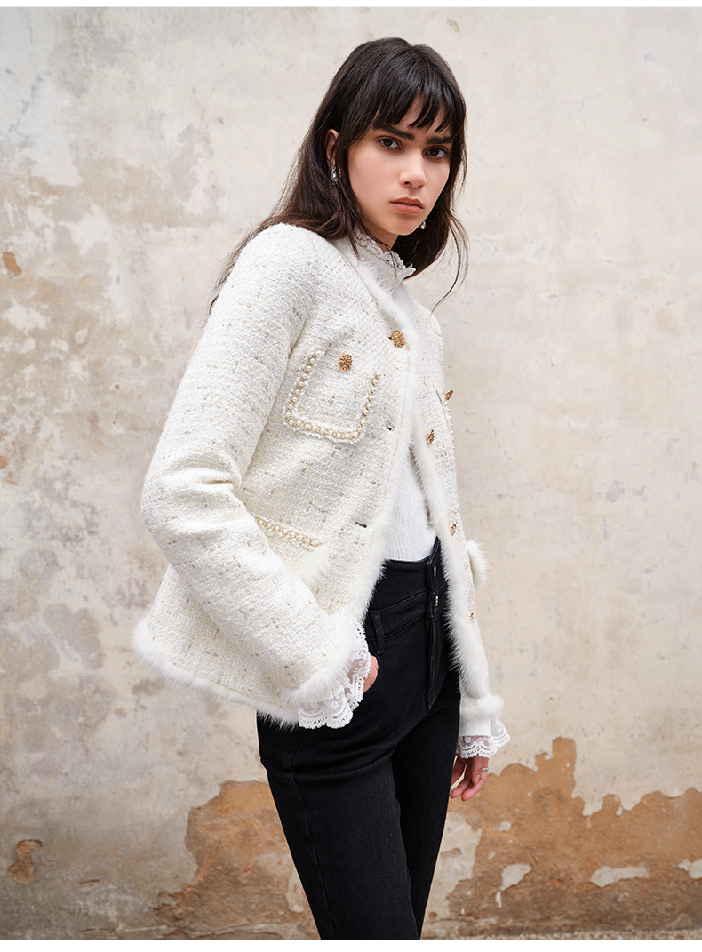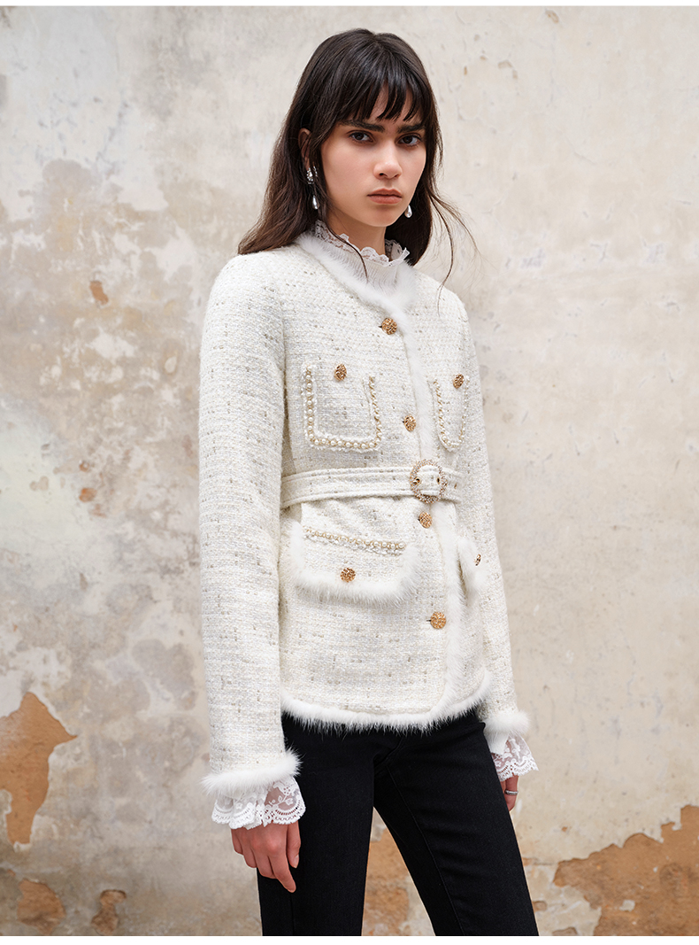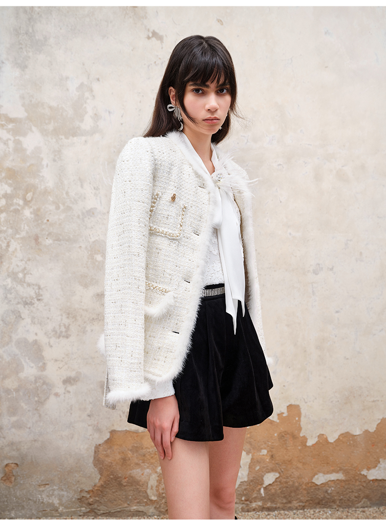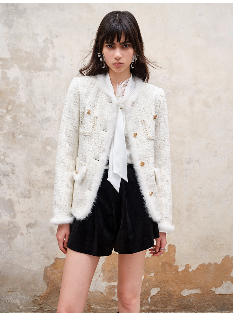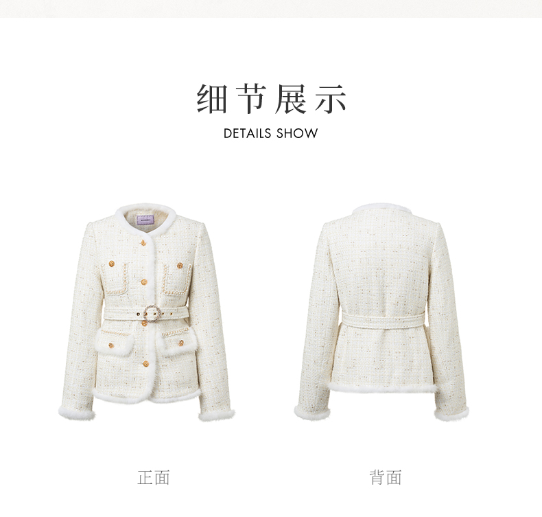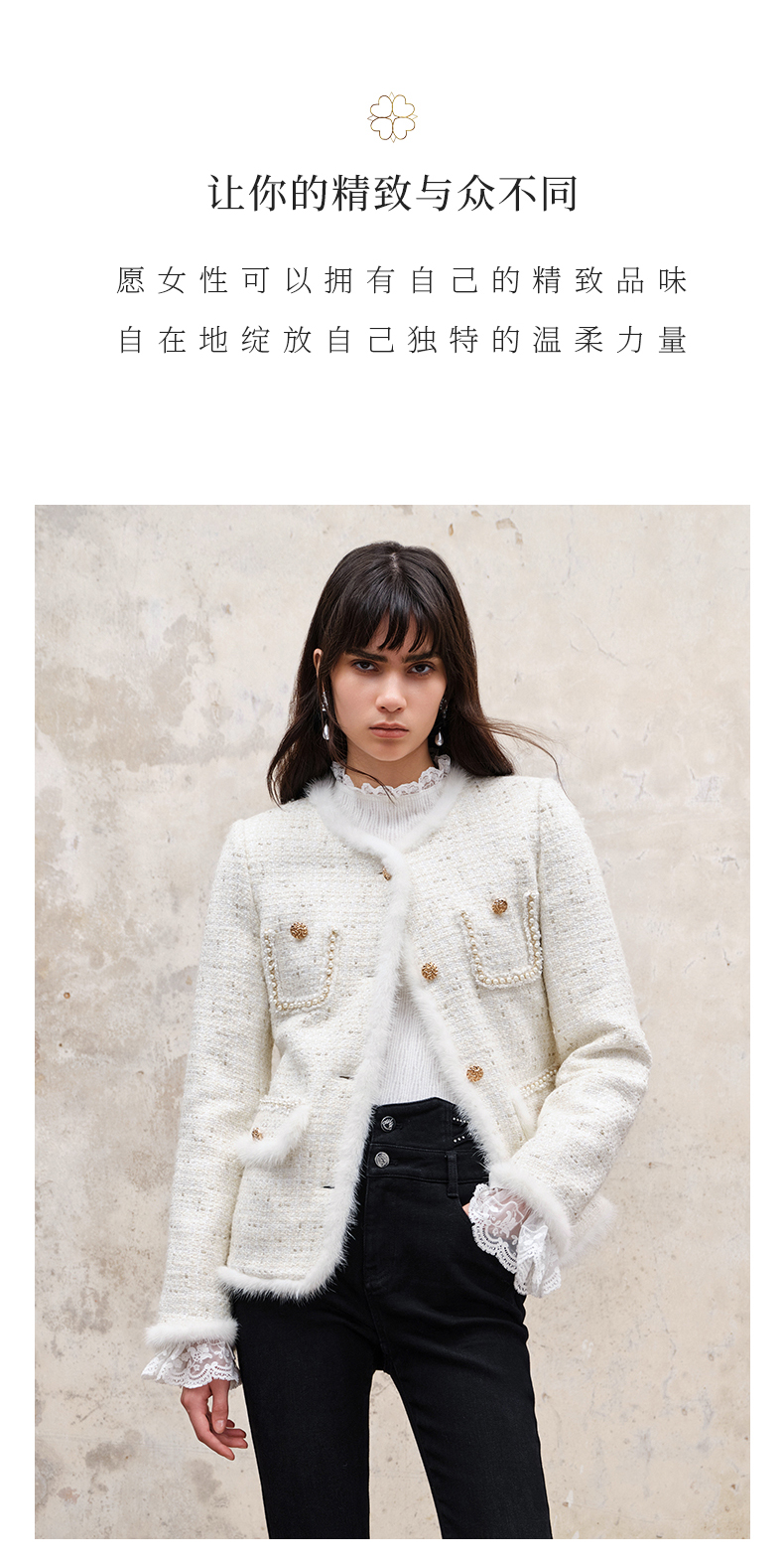 【防寒】MAXRIENY名媛千金小香风轻羽绒服气质冬季新款复古水貂毛(货号:MS88DC539)