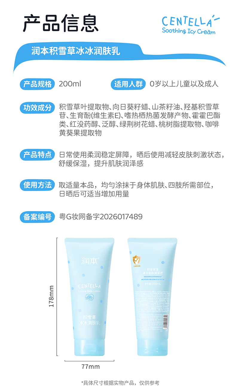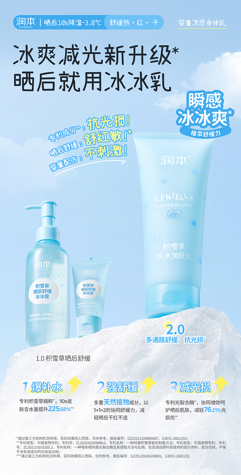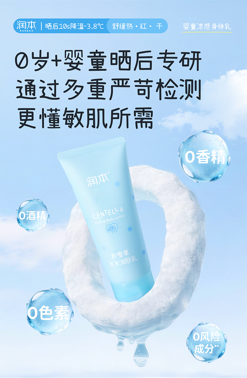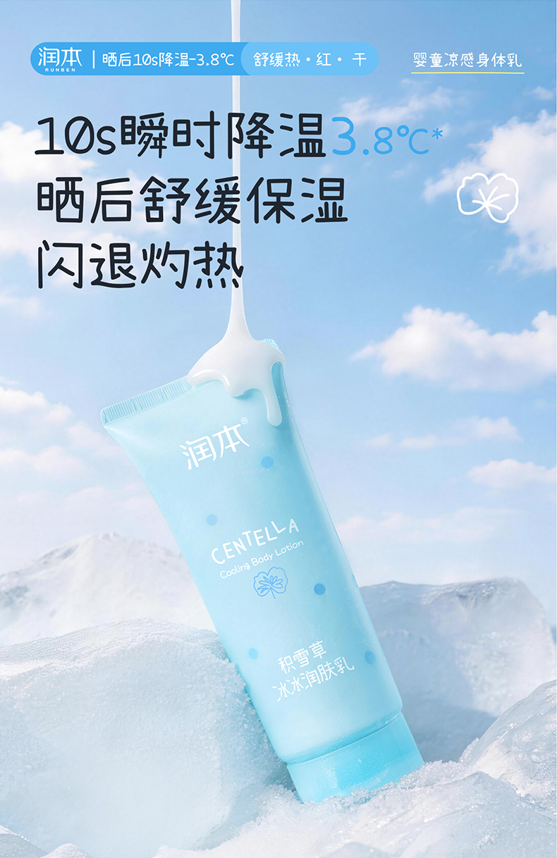 润本积雪草冰冰润肤乳 夏天身体乳 0岁+专研 舒缓晒后泛红 冰凉一夏