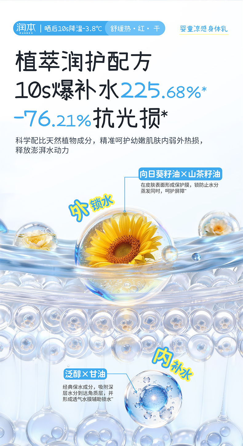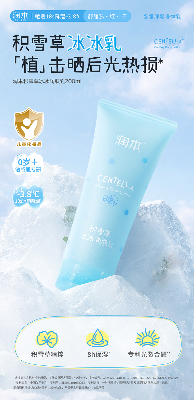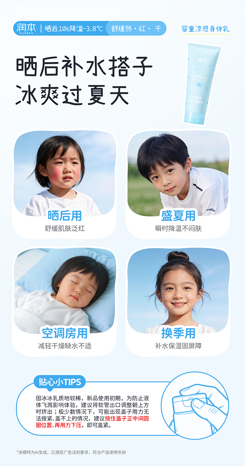 润本积雪草冰冰润肤乳 夏天身体乳 0岁+专研 舒缓晒后泛红 冰凉一夏