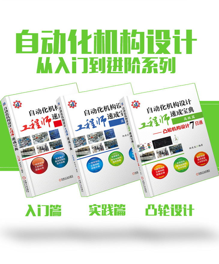 企业大量从业人员都是从企业内部成长起来的,机器换人的落地和推行,也必然会吸引其他行业或社会人员转行转岗于自动化。那么,要避免行业技术群体的良莠不齐,就必须依靠教育培训来加强员工的知识储备和能力。然而,我国在自动化机构设计方面起步较晚,市面上也很难找到一本接地气的实用培训教材;学校传统理论和企业应用之间出现了认知上的沟壑,学校培养的学生也很难在企业刚入职就可以上手——学校和企业之间需要一座连接的知识桥梁,而本书正是这样一本为入职者架起的一座迈入企业大门,顺利上岗工作的成功之桥。