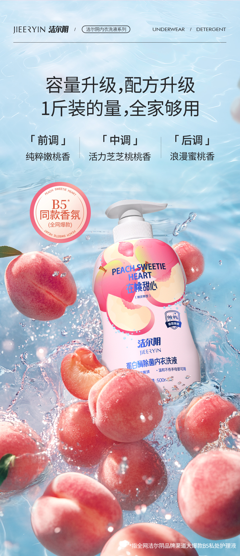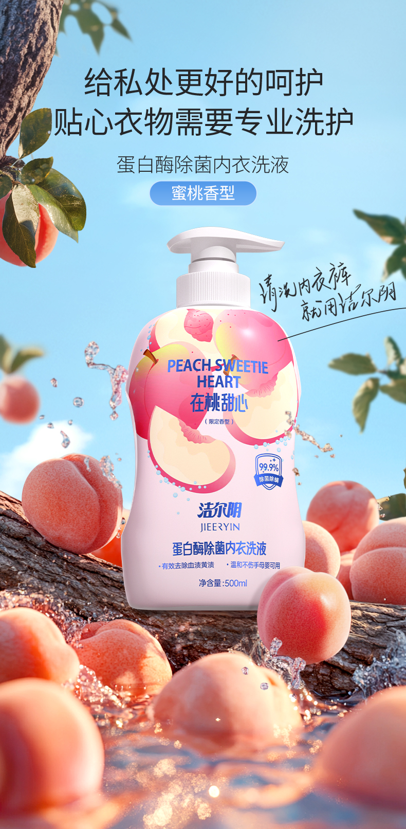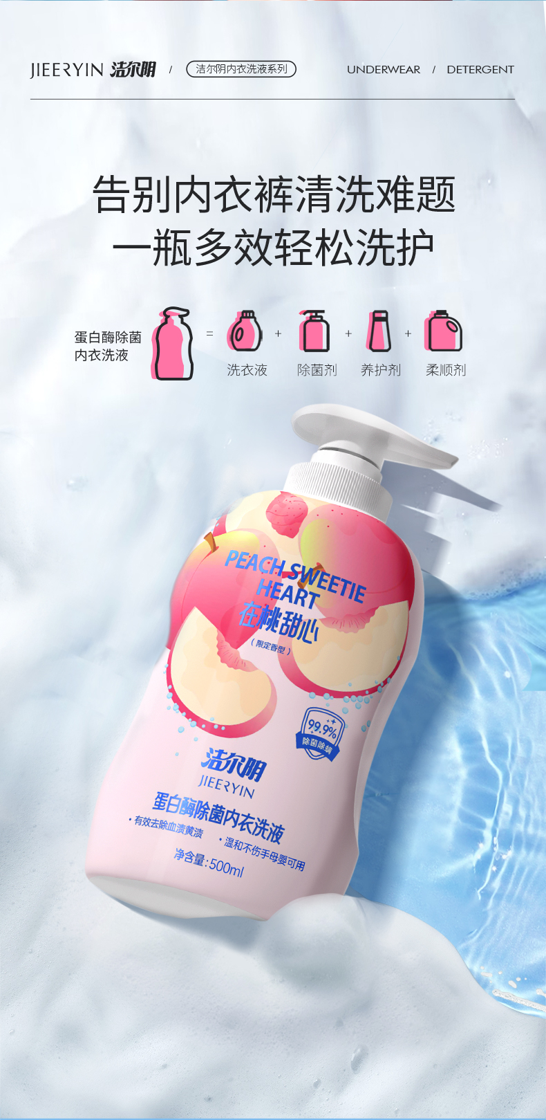 【在桃甜心】洁尔阴蛋白酶抑菌桃子内衣内裤洗衣液专用祛血渍女士洗内裤清洗液