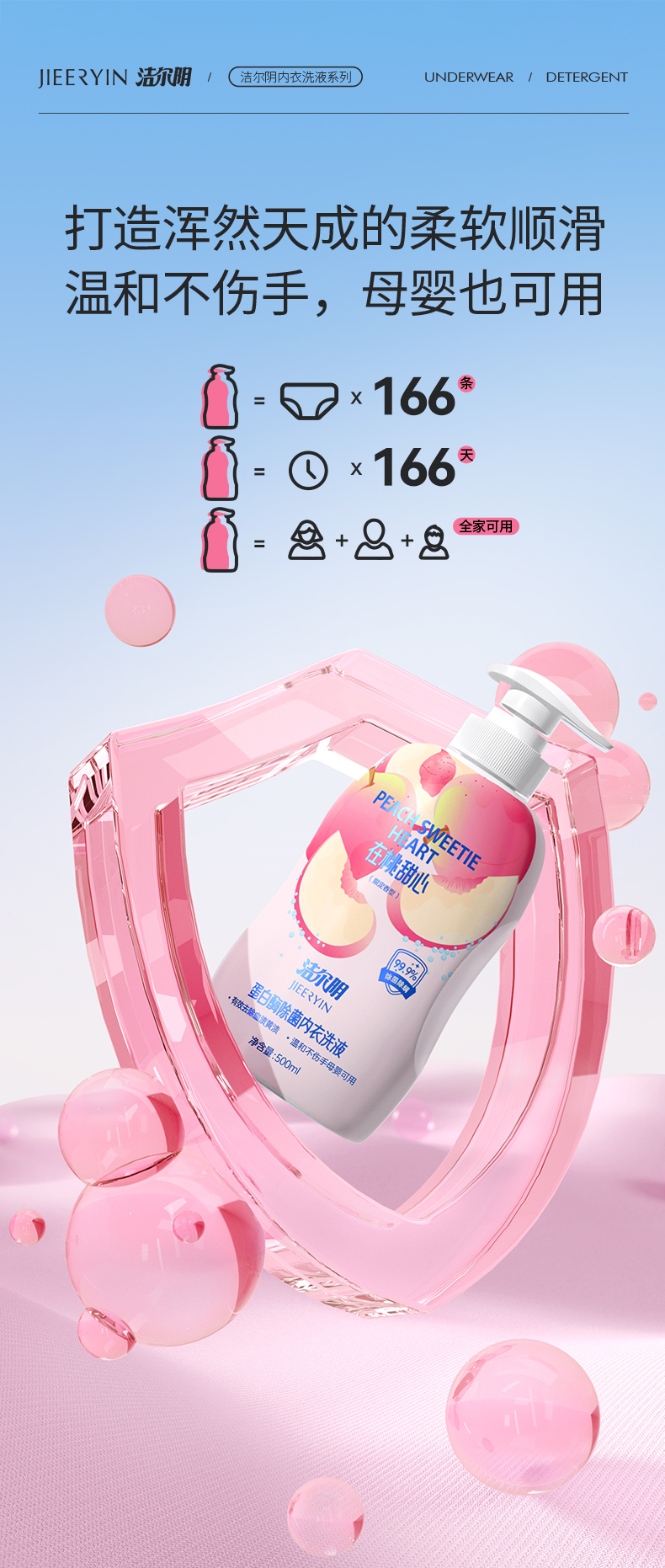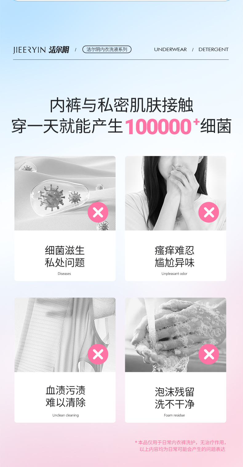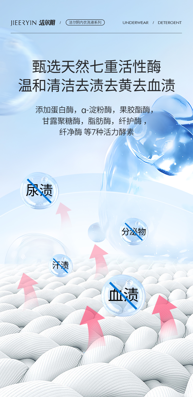 【在桃甜心】洁尔阴蛋白酶抑菌桃子内衣内裤洗衣液专用祛血渍女士洗内裤清洗液