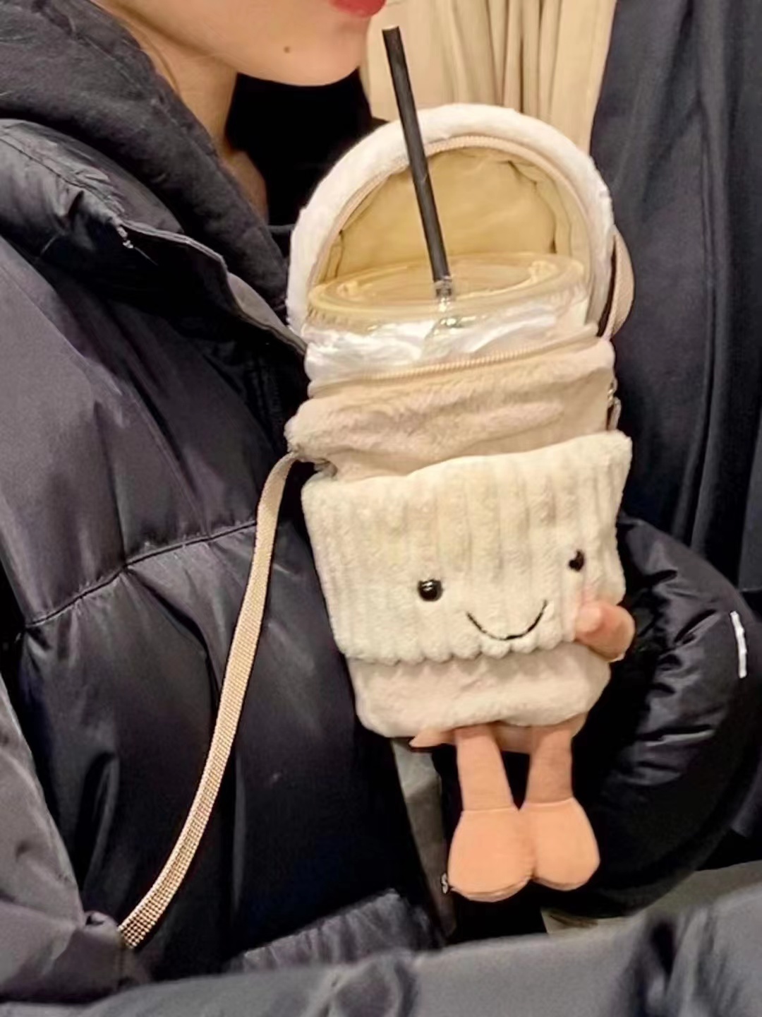 趣味咖啡随行杯,忙忙碌碌好伴侣。轻巧的中性杯子是你的监督小伙伴,它有柔软的咖啡色绒毛,棕色的小短腿,肚子上还绑着一根粗壮的绳带。让我们微笑地迎接朝阳。