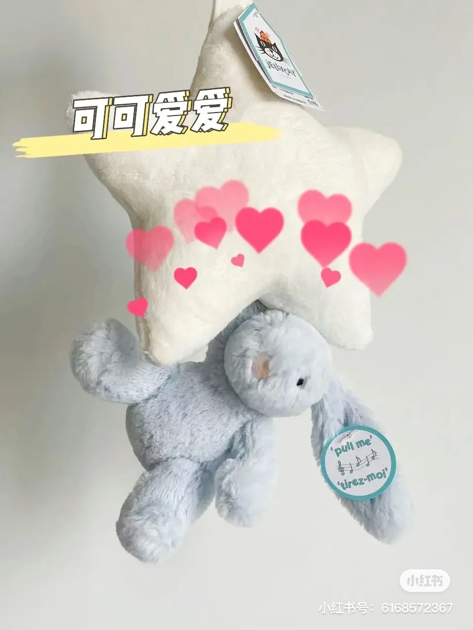 航行在一颗小巧柔软的小星星之上,邦尼兔星星音乐拉铃。我们这位观星爱好者美丽而适合抓握,宝宝的小小手伸出就能够拉动。无需电池,因为这只小兔使用的是星星能量。