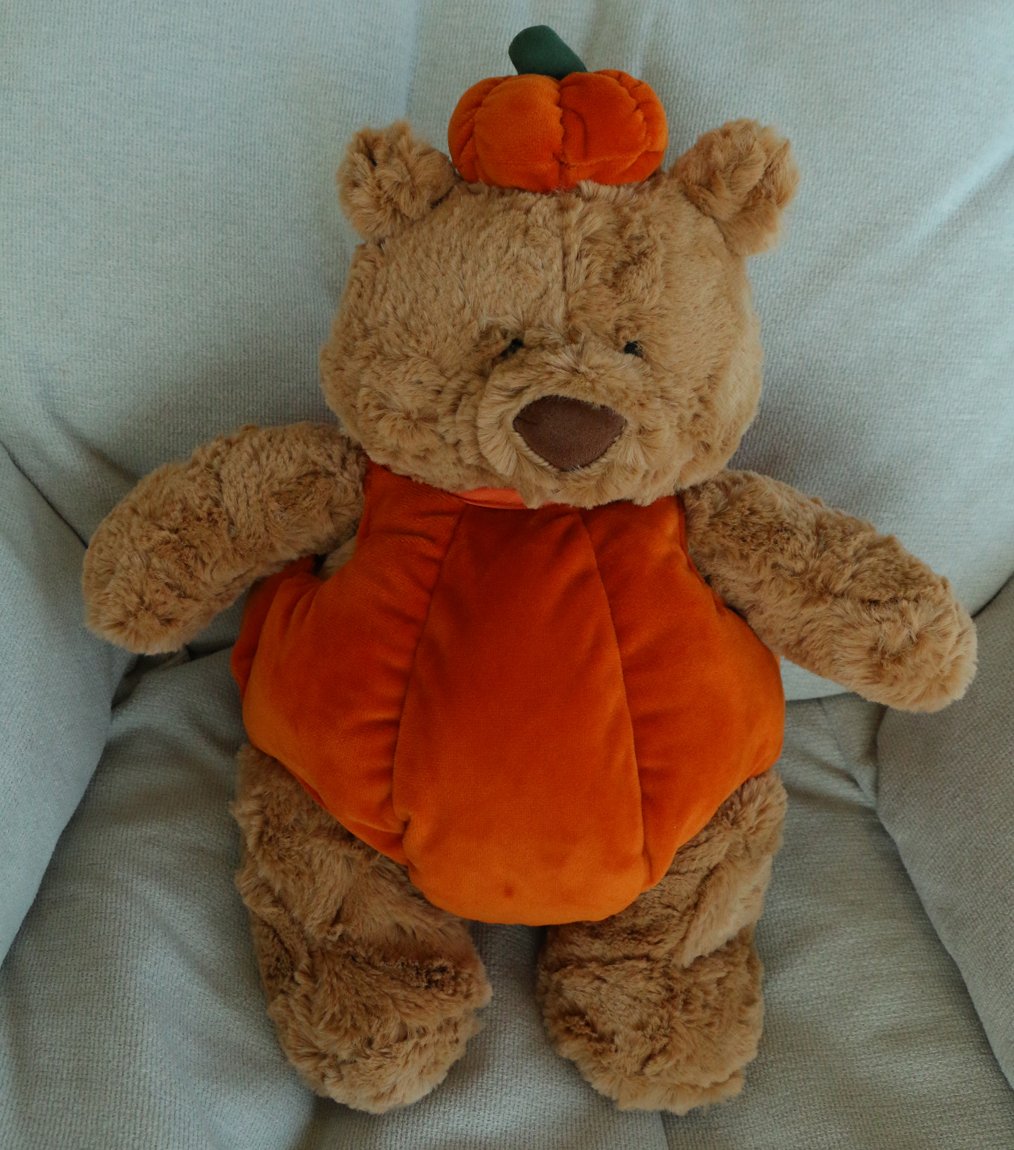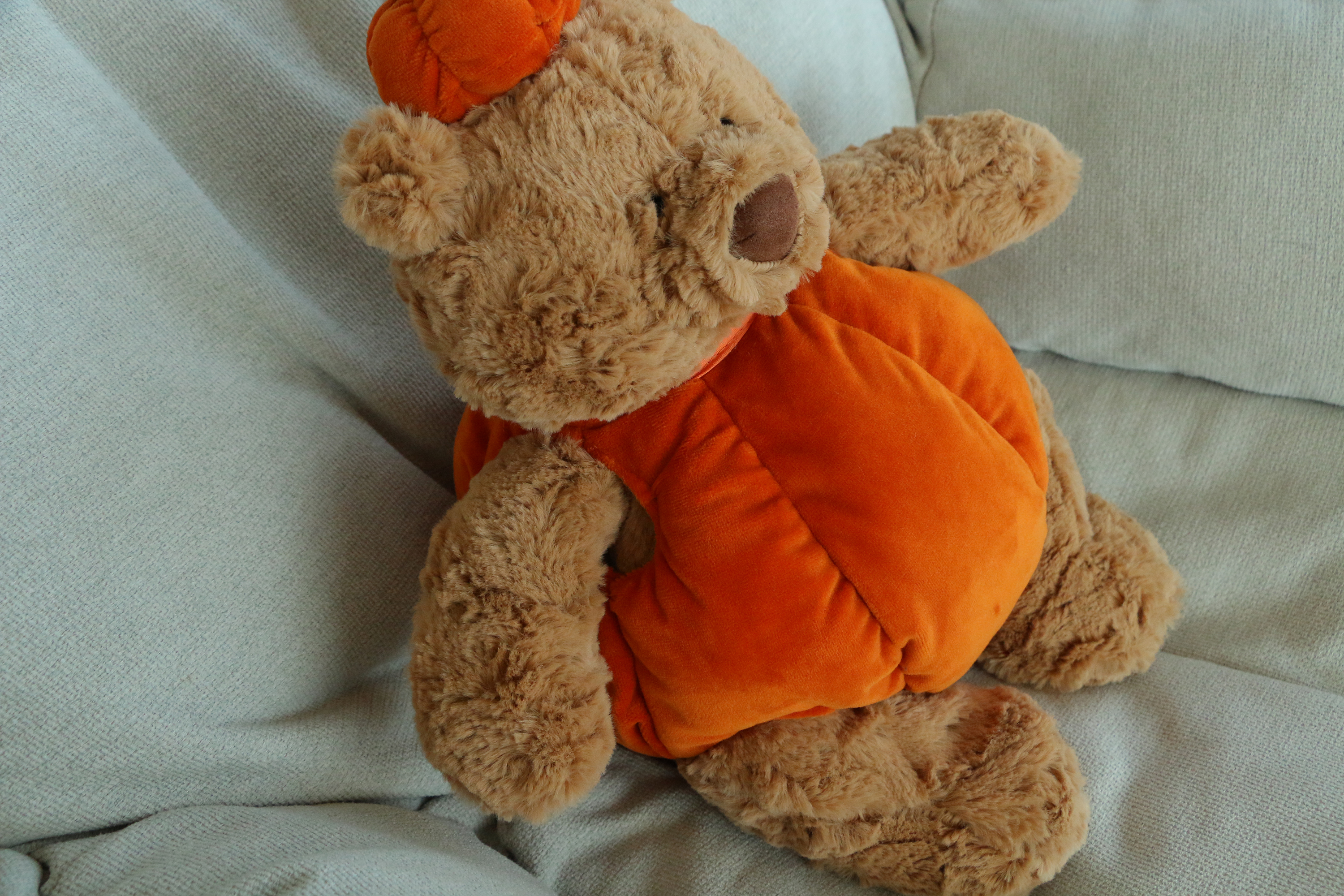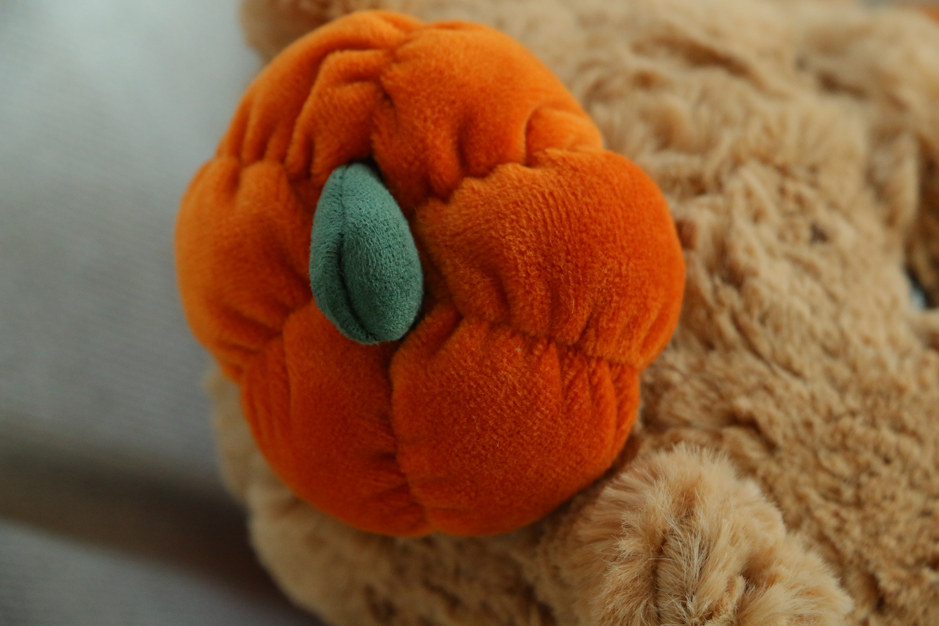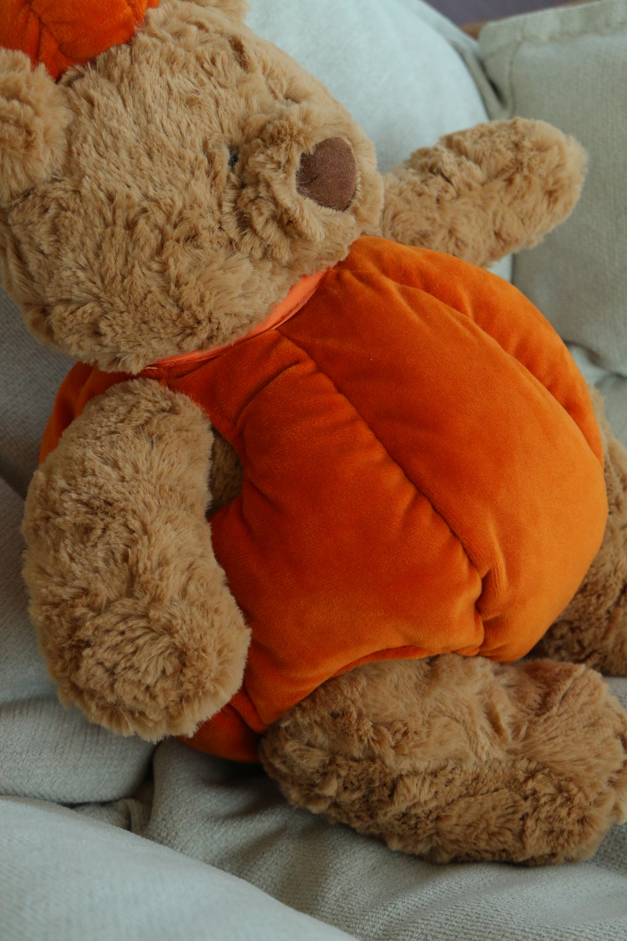 希望能收到大量的糖果!巴塞罗熊为万圣节做好了准备,为他的南瓜装造型!身上有缝制的橙色条纹,头顶上还带着俏皮的秆帽,毛发松乱金黄。他那圆滚滚的小肚子和可爱的爪子,让他成为万圣节“不给糖就捣乱”的忠诚小伙伴!