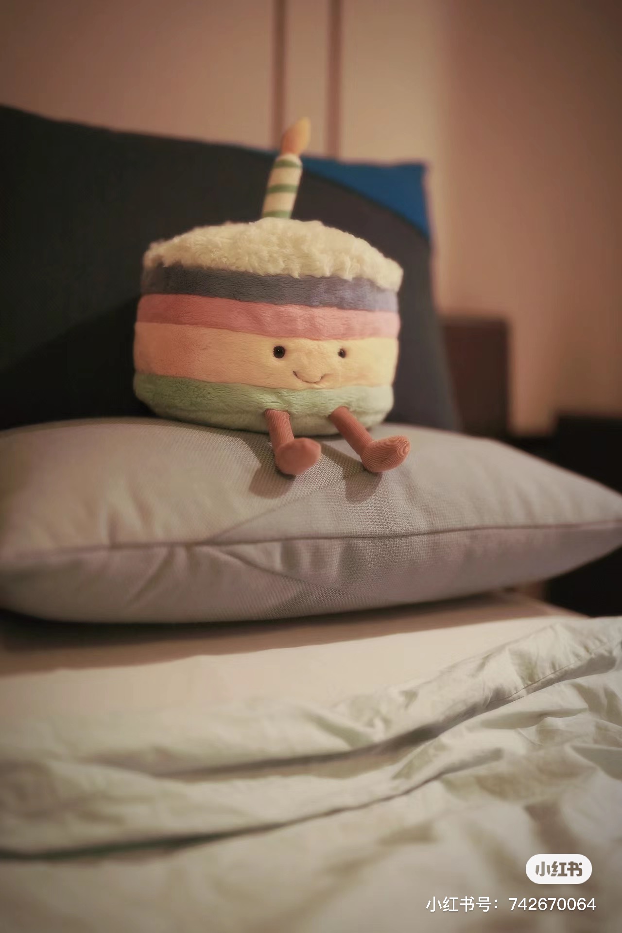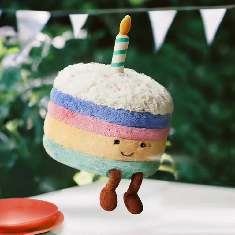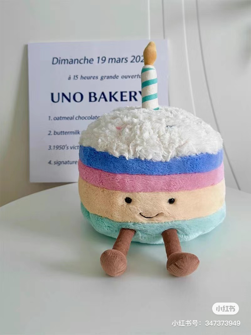 许个愿让派对开始吧!与趣味彩虹生日蛋糕一起庆生!这款欢乐的蛋糕由粉色、黄色、紫色和绿色四层柔软的蛋糕组成。蓬松的糖衣上布满巧克力碎,还有一支带着金色火焰的仿鹿皮材质蜡烛。让这双穿着灯芯绒靴子的小脚尽情跳舞吧!