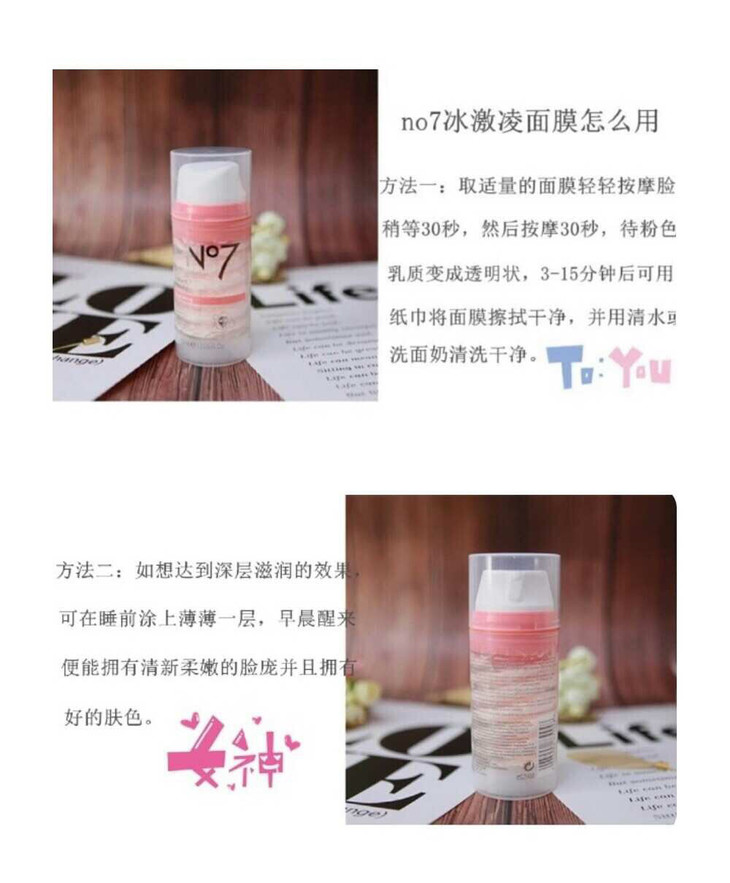 新版英国boots no7冰淇淋面膜冰激凌面膜no.7睡眠面膜 熬夜补水保湿💕 富含滋养精华的乳霜和啫喱复合配方㊙ 可让水分及养分极易被皮肤吸收,使肌肤持续长期维持滋润水嫩状态💕 改善暗哑肤色,提升肌肤弹性,让肌肤时刻散发自然健康的光采。😱 十分钟瞬间补水收毛孔,超级保湿滋润适用于所有肌肤🤗 特别是干性肌肤。涂上去过了一会儿就像冰淇淋一样慢慢融化👻 洗完后很保湿,脸马上亮了一度,特别适合熬夜完的肌肤💚 ‼️