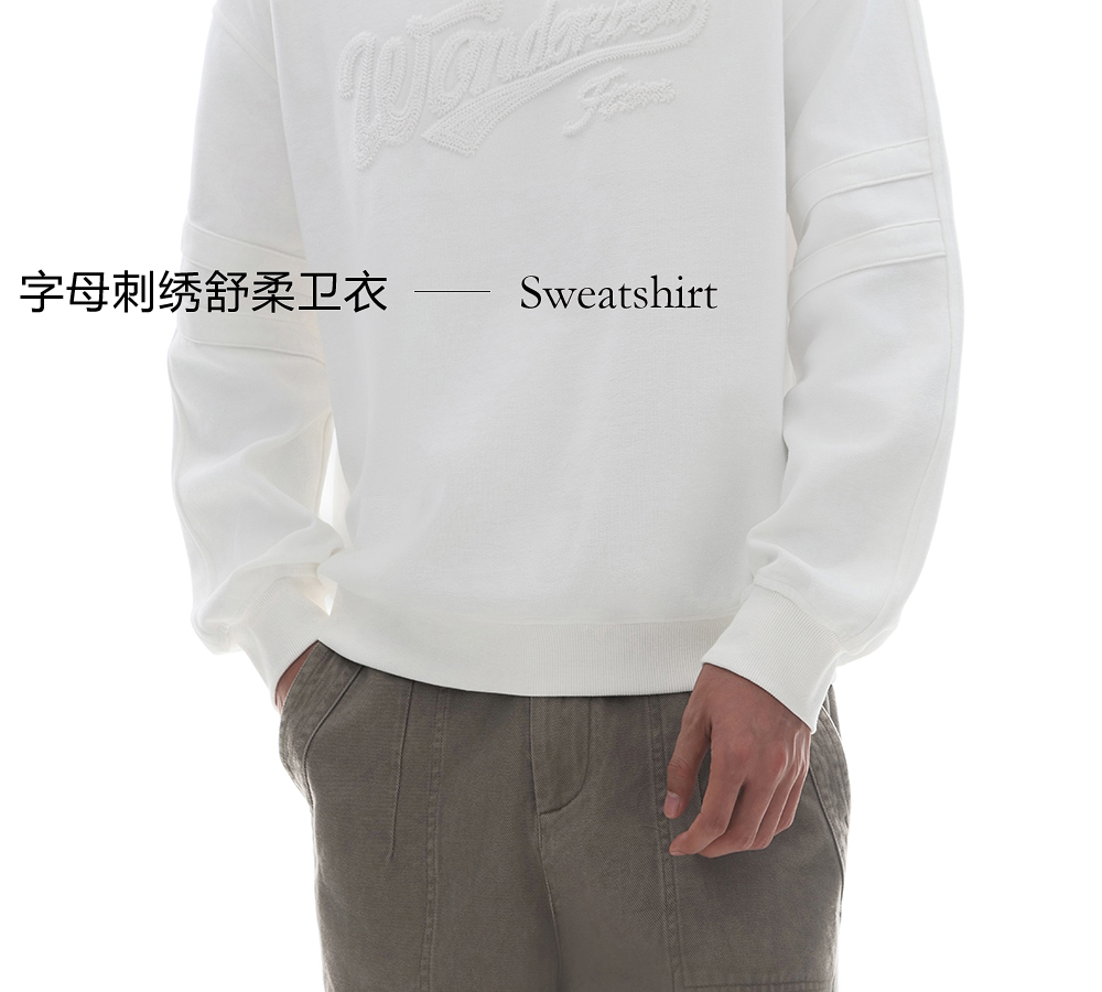 HIM漢崇【商场同款】宽松柔弹长袖圆领卫衣男字母水溶刺绣工艺