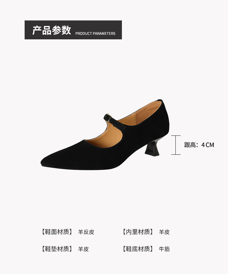 【预售5天】复古尖头浅口单鞋女新款真皮一字扣百搭气质细跟玛丽珍高跟鞋DB&M6187