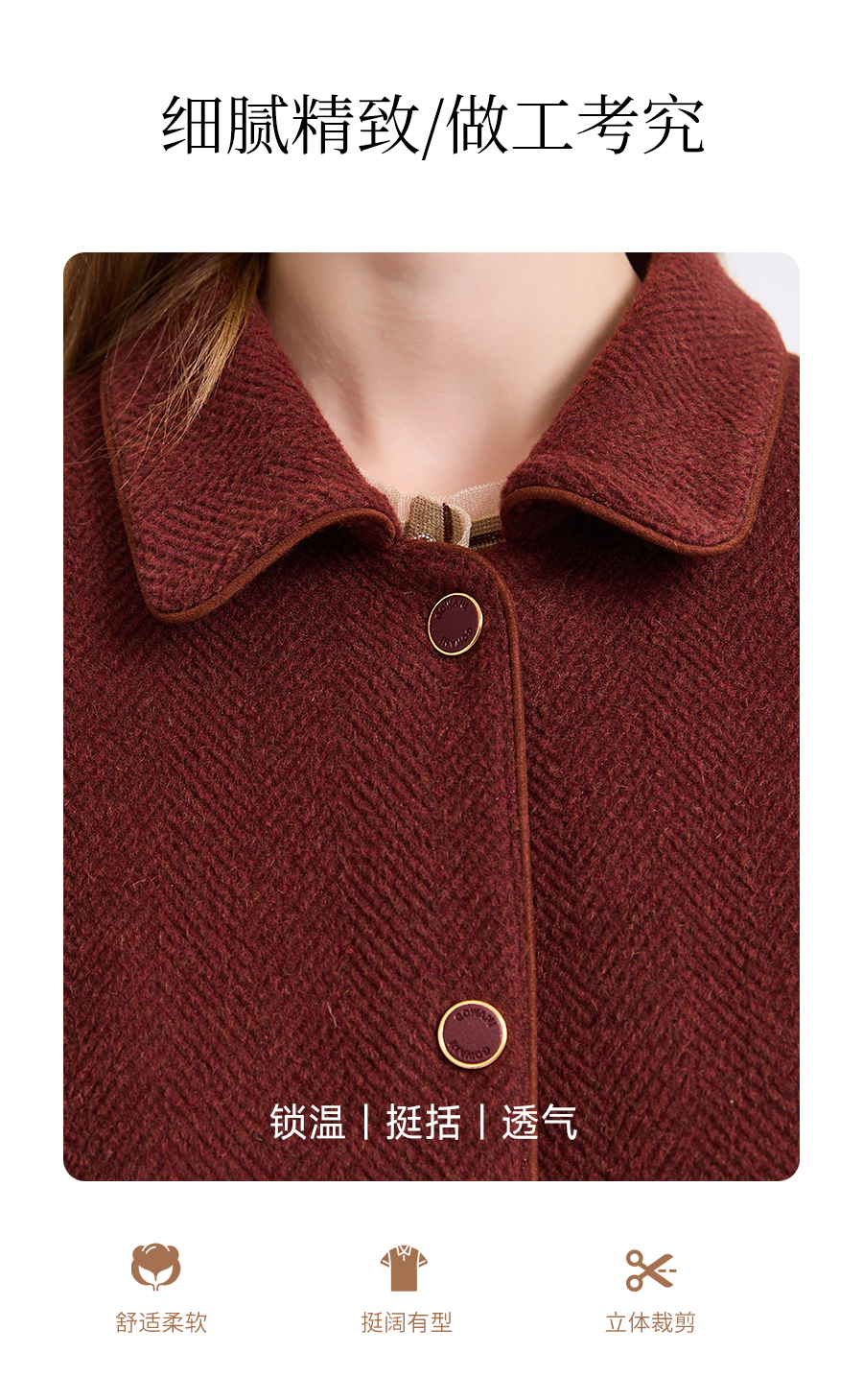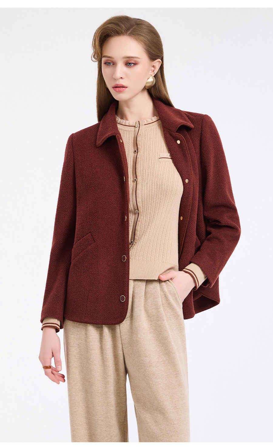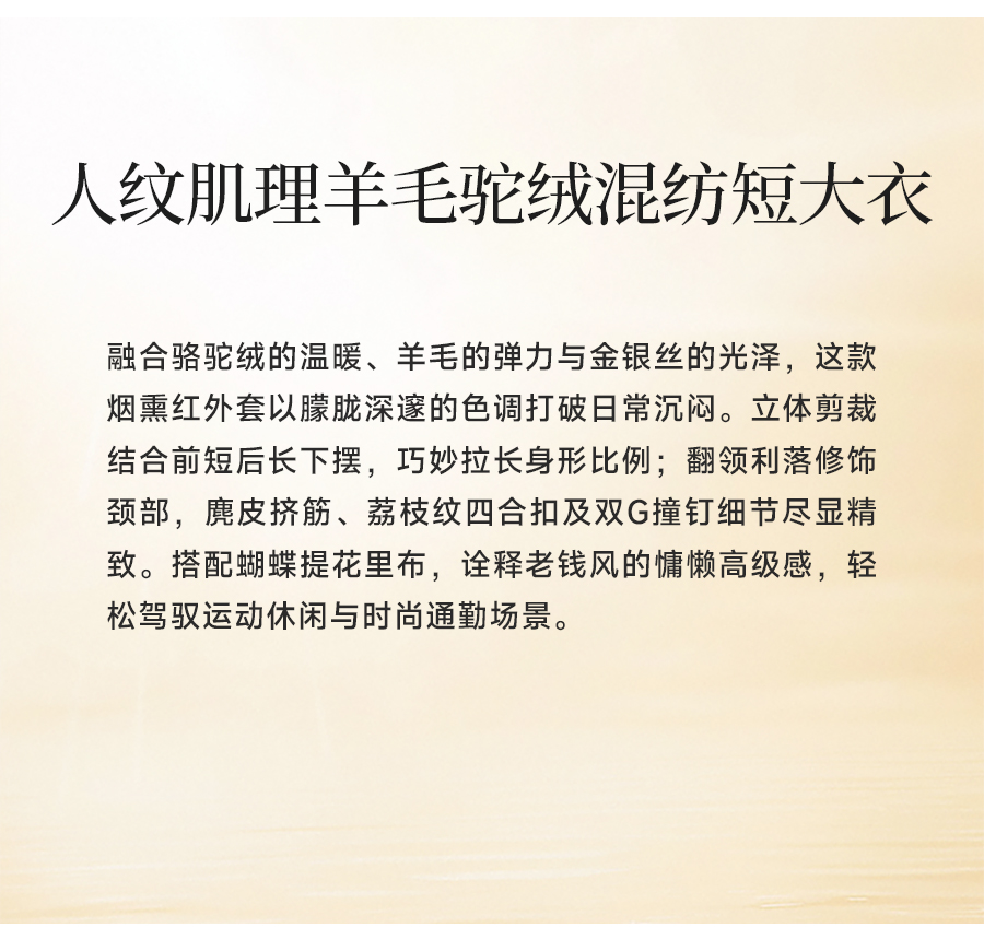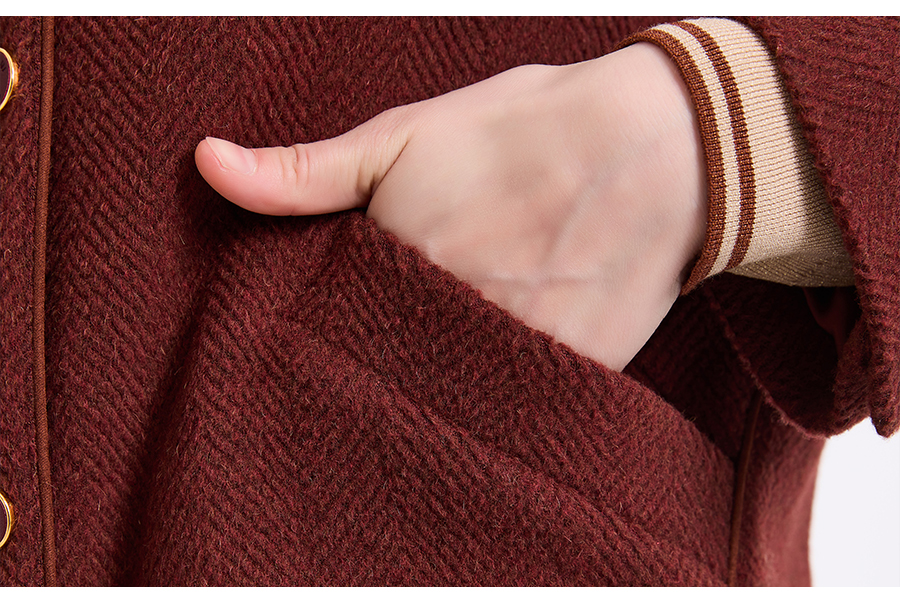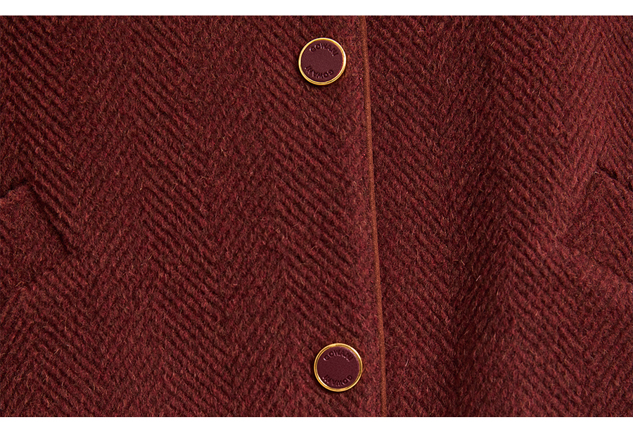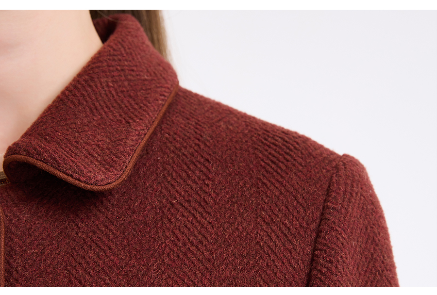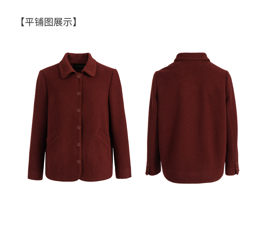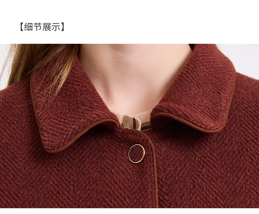 乔万尼新品驼绒羊毛混纺高级感烟熏红翻领短款羊毛大衣ED4B752