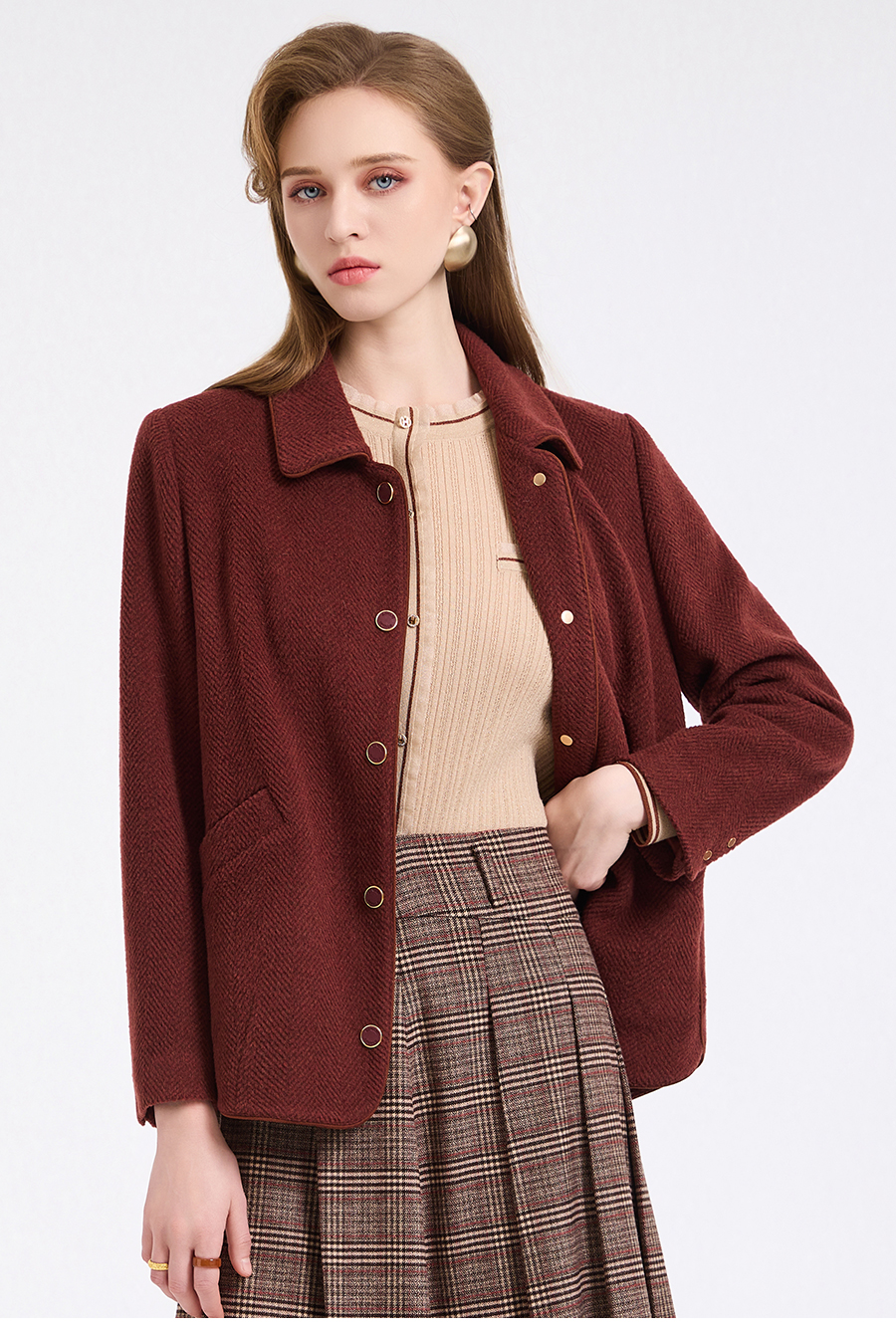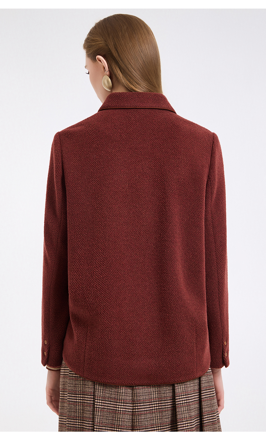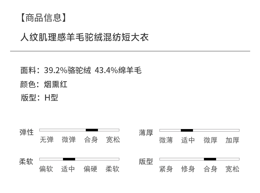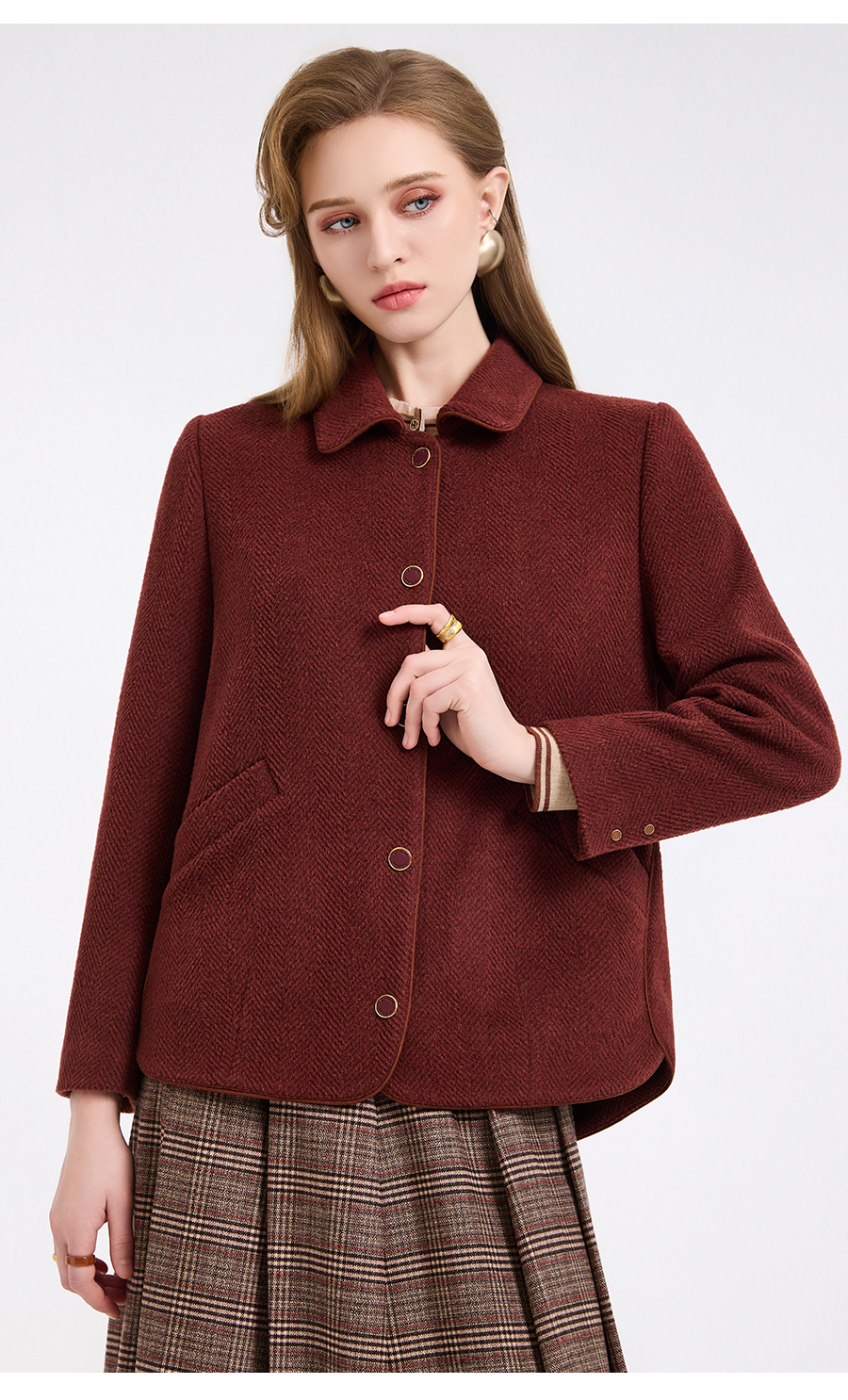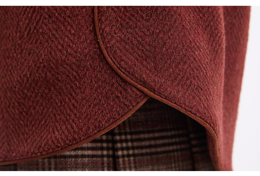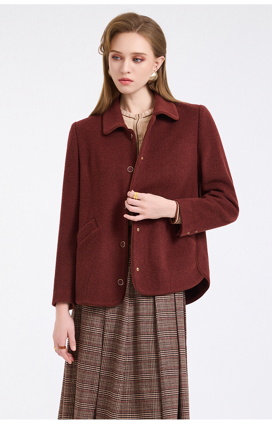 乔万尼新品驼绒羊毛混纺高级感烟熏红翻领短款羊毛大衣ED4B752