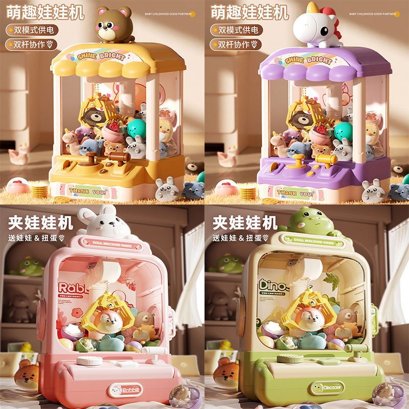 跨境恐龙抓娃娃玩具儿童娃娃机家用公仔男女孩玩具迷你扭蛋机批发