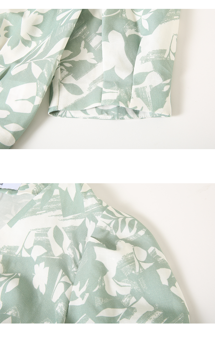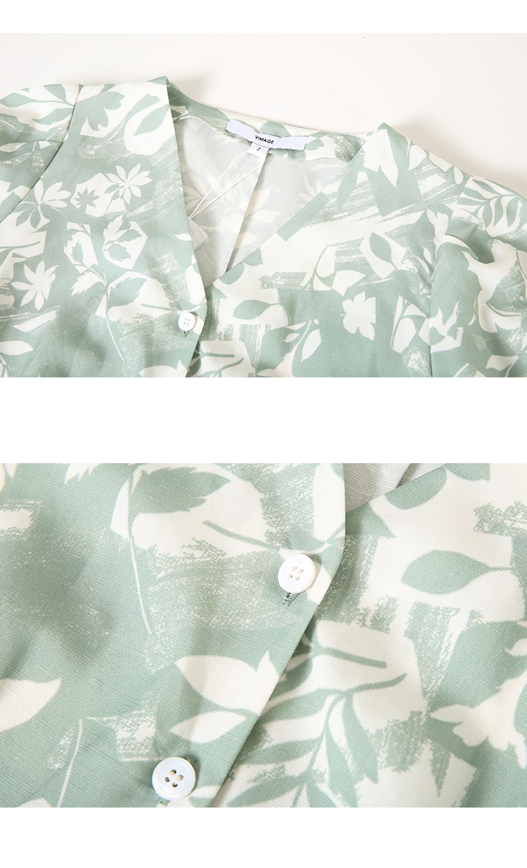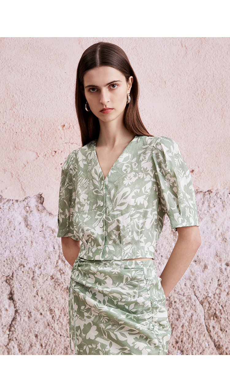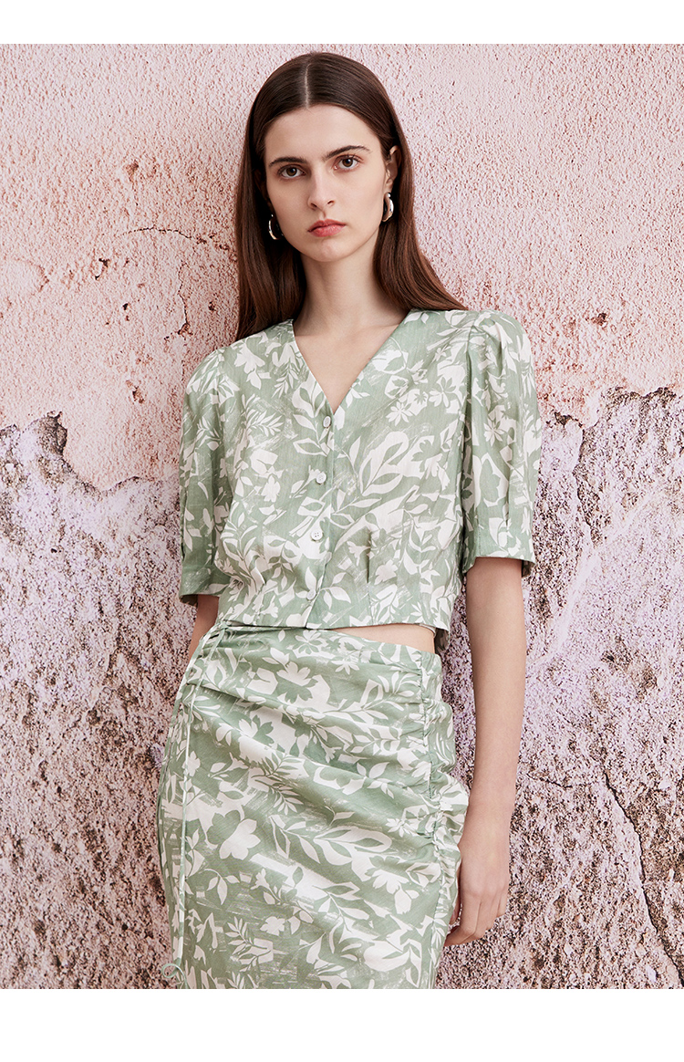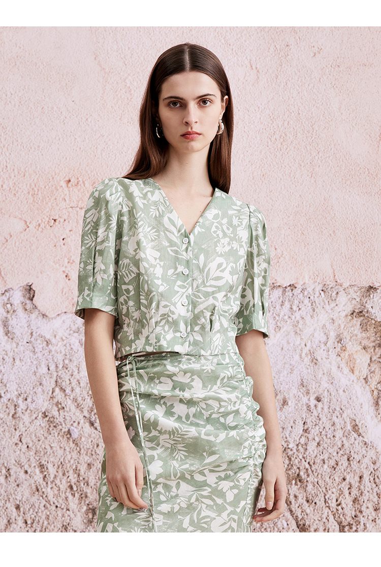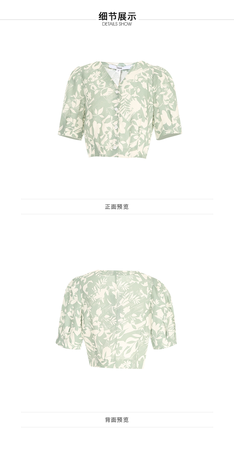 VIMAGE纬漫纪夏季新款气质时尚印花泡泡袖短上衣V2109710