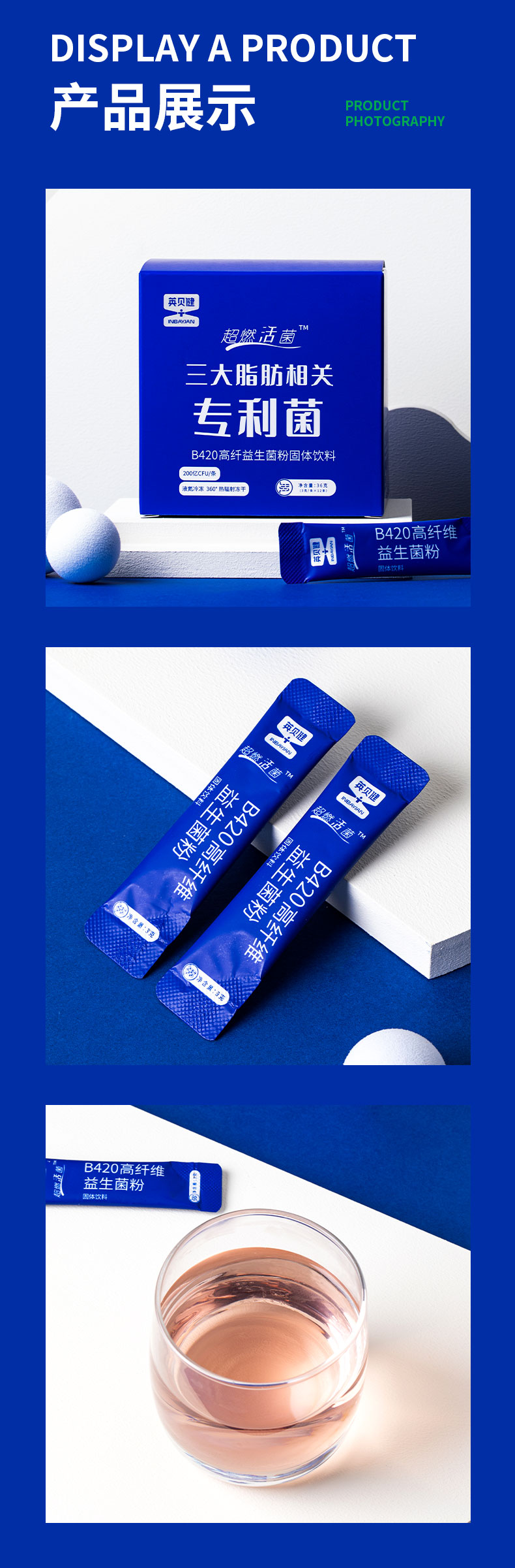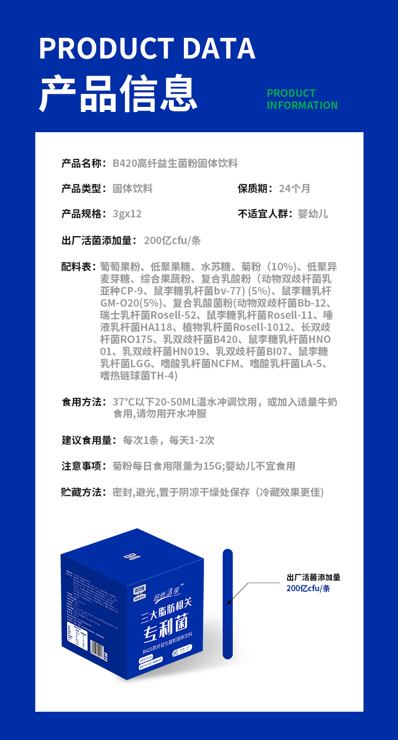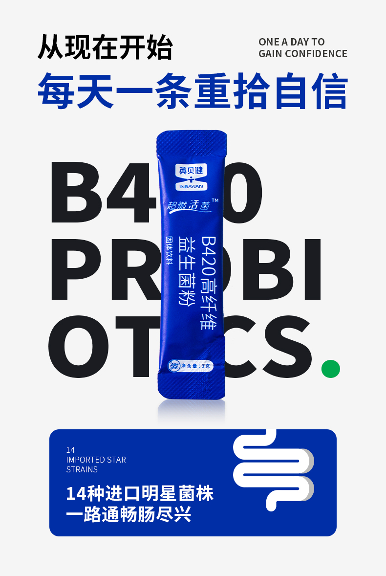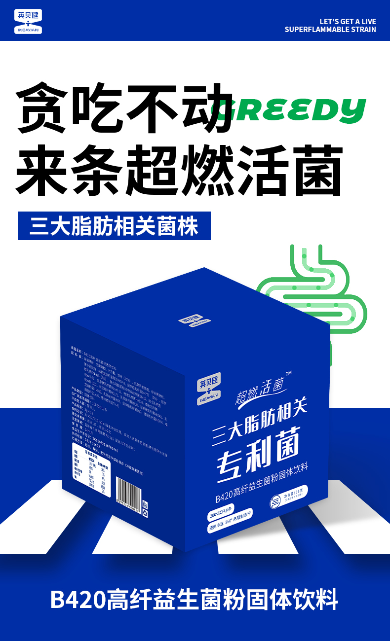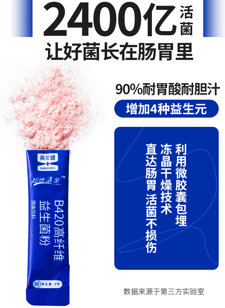 英贝健B420高纤益生菌粉固体饮料(3克*12条)/盒 4盒