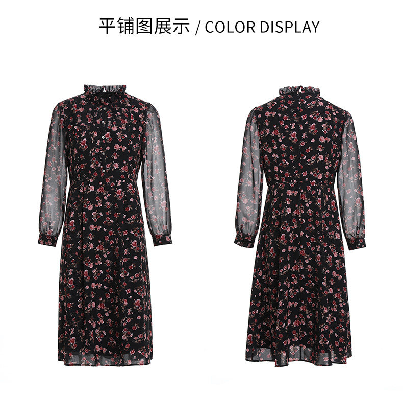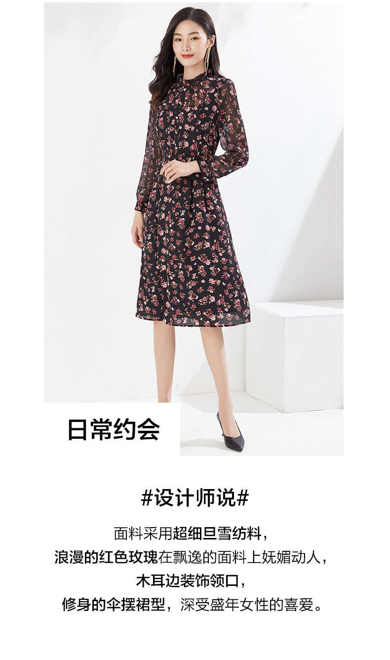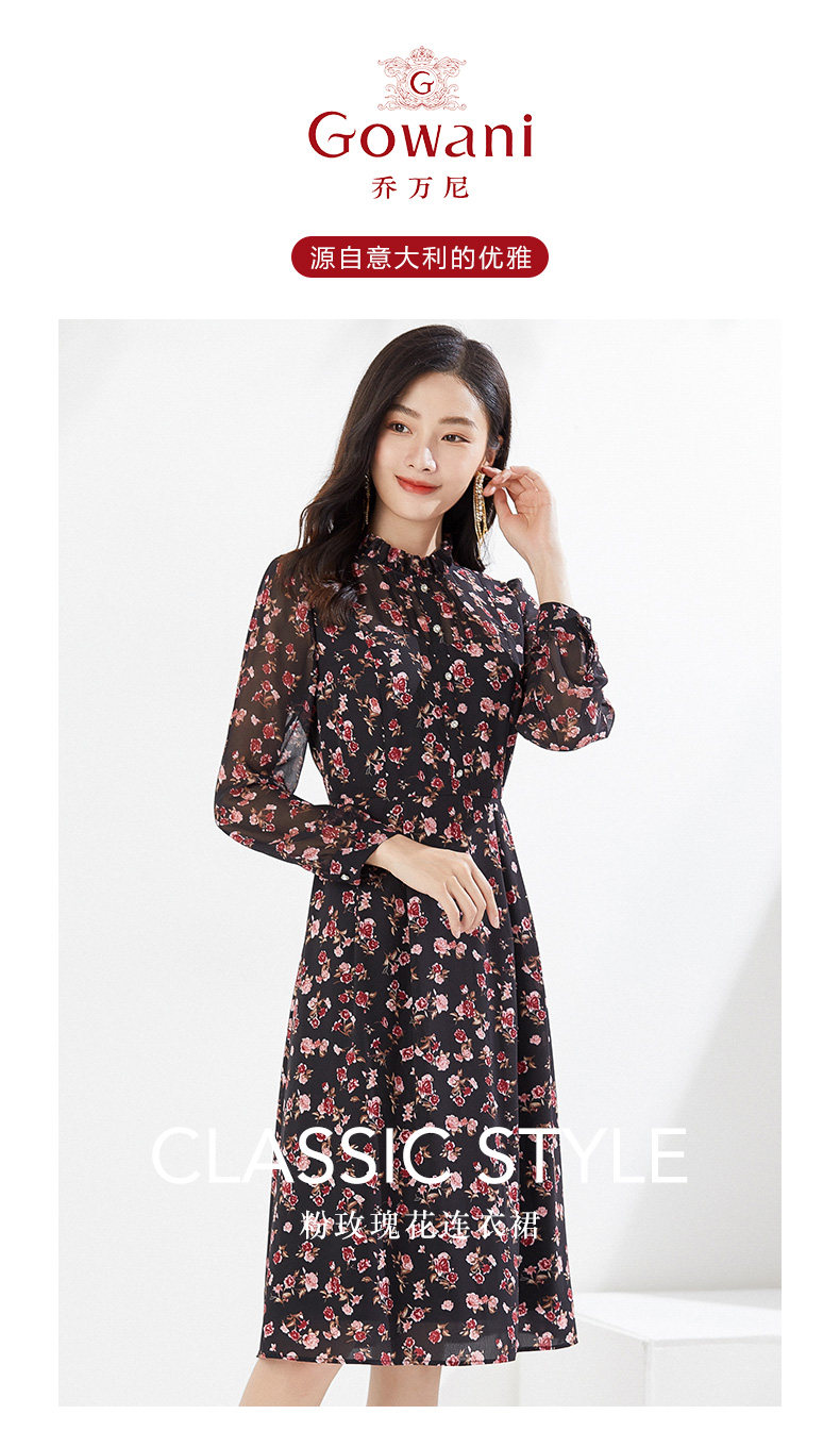 乔万尼春新品连衣裙木耳花边收腰百搭长裙EI3E128