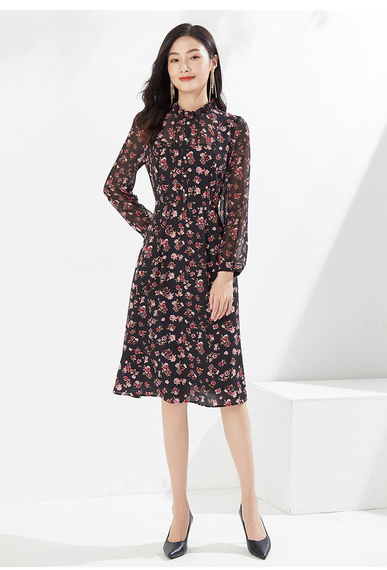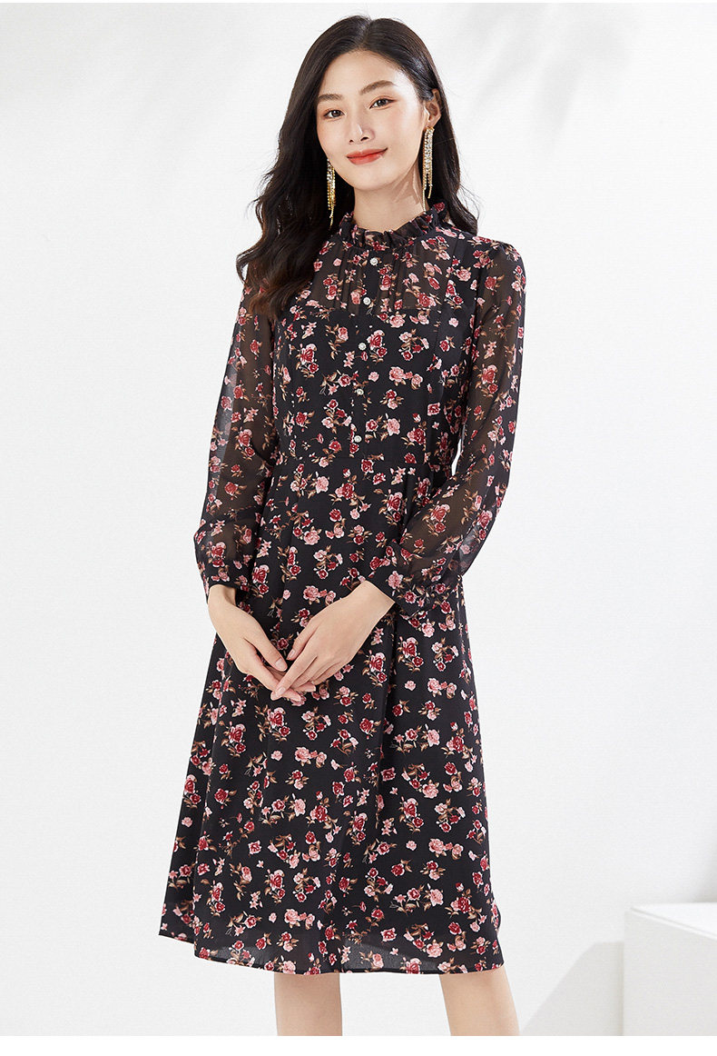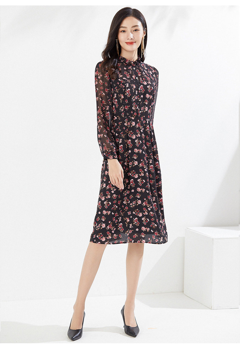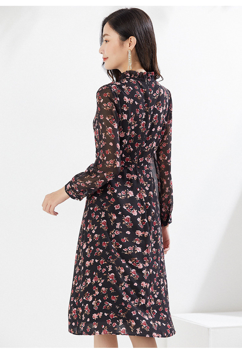 乔万尼春新品连衣裙木耳花边收腰百搭长裙EI3E128