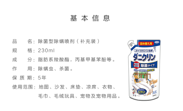 日本UYEKI 强效除螨喷剂 除菌型补充包安全天然成分