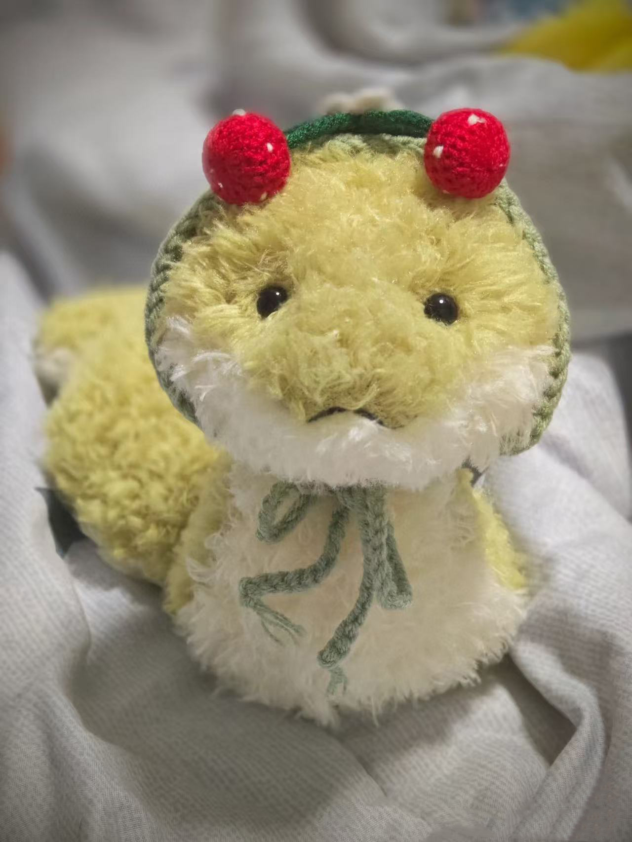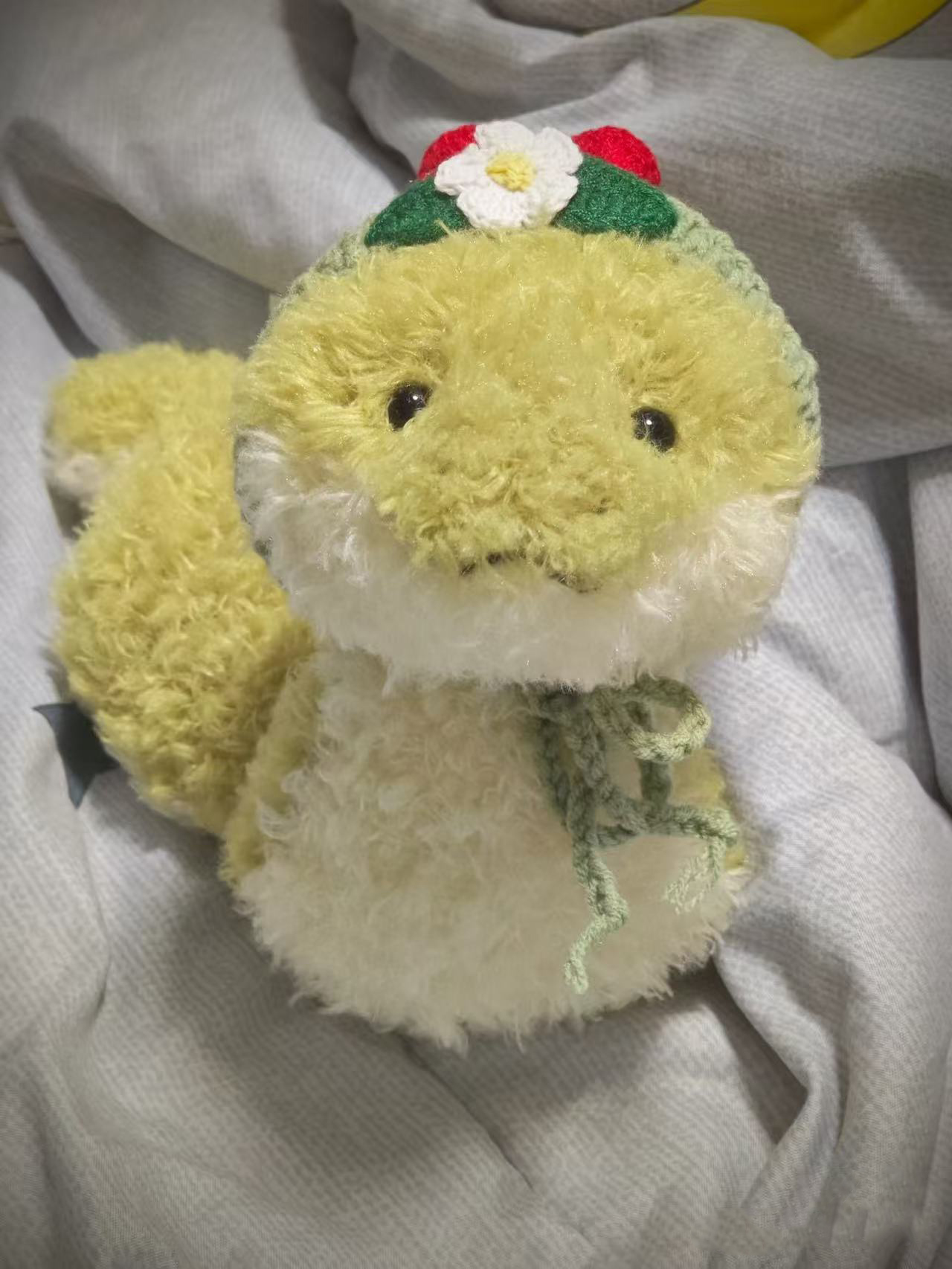 小蛇毛茸茸的,草绿色很舒服,真的好治愈
