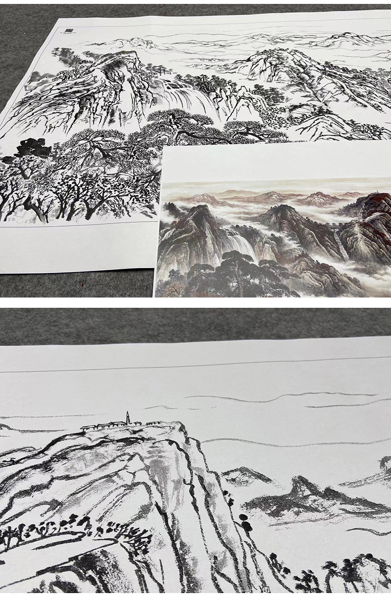【大彩图】横幅工笔画白描底稿临摹勾线山水线稿FS16