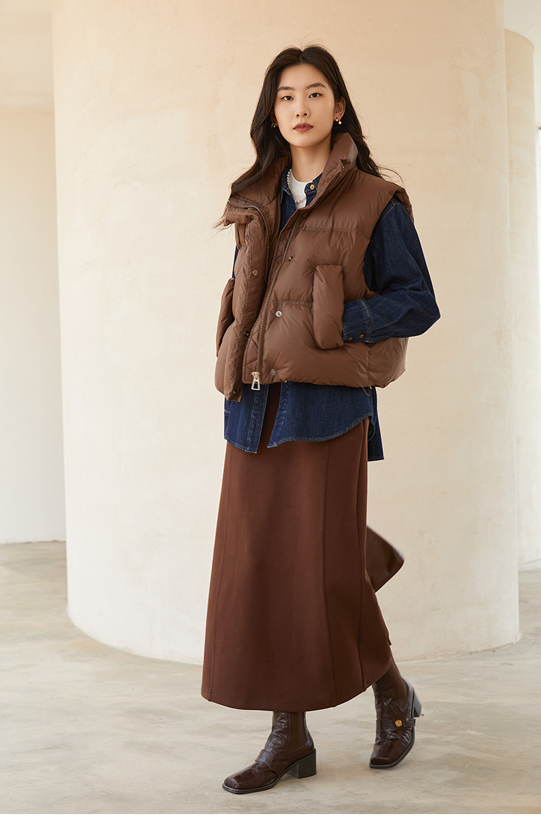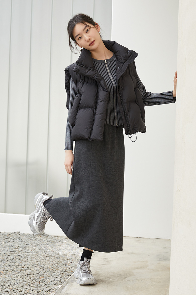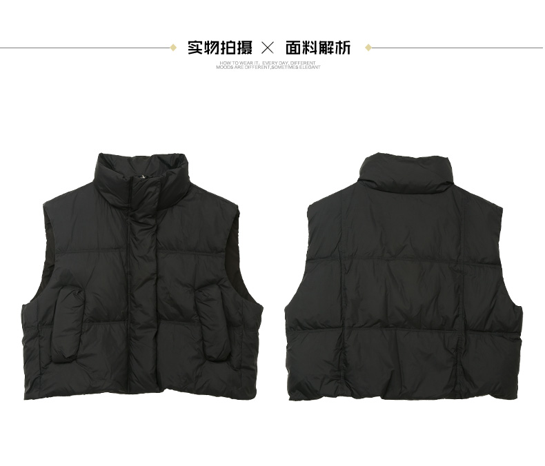 【抽绳收缩】黑色立领羽绒马甲女冬季新款宽松显瘦短款外穿背心外套