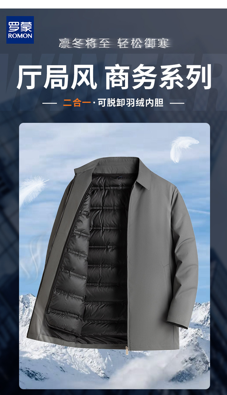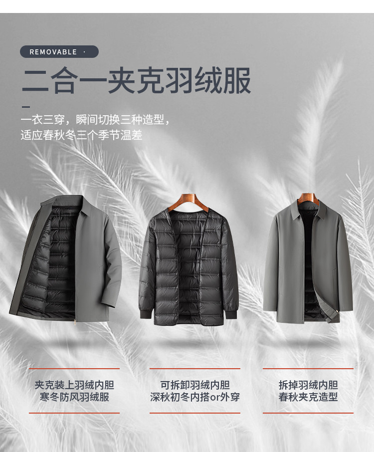【一衣两穿 爸爸装】罗蒙秋冬可脱卸羽绒内胆中长款羽绒服男老干部羽绒夹克爸爸装外套男