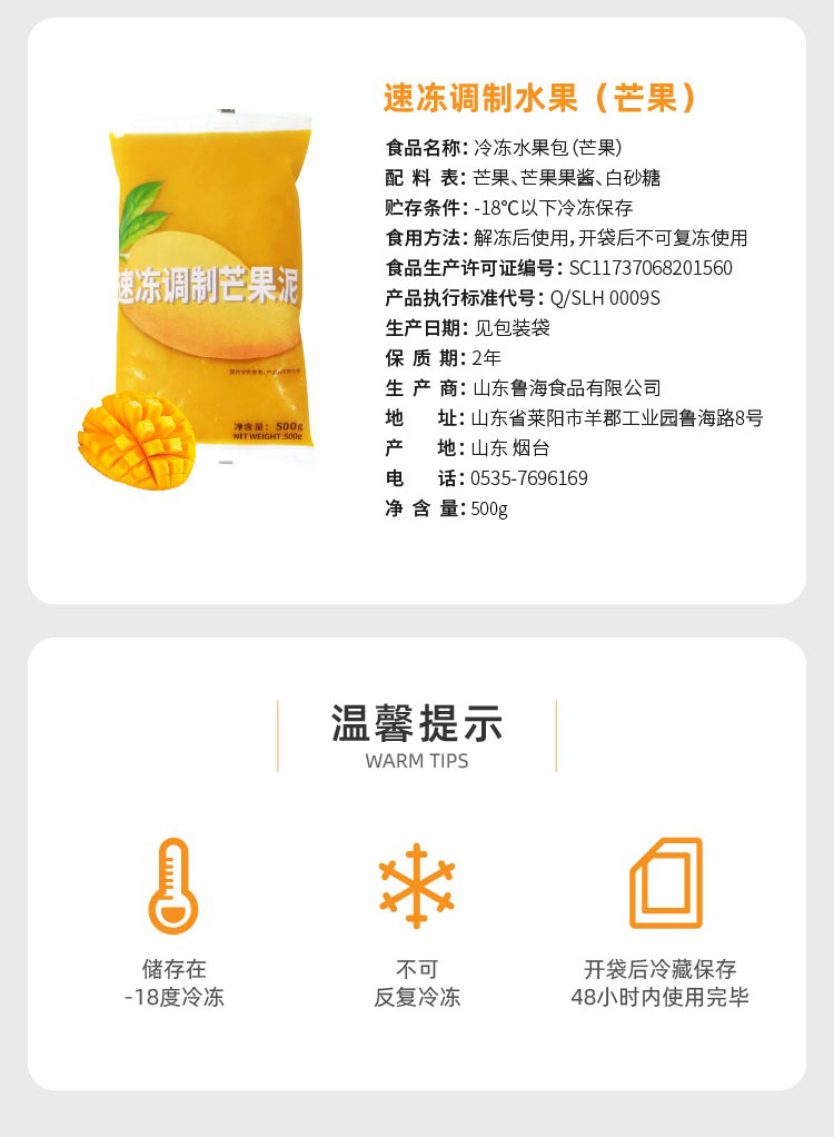 鲁海 速冻调制水果包 芒果口味500g/袋 20袋/箱