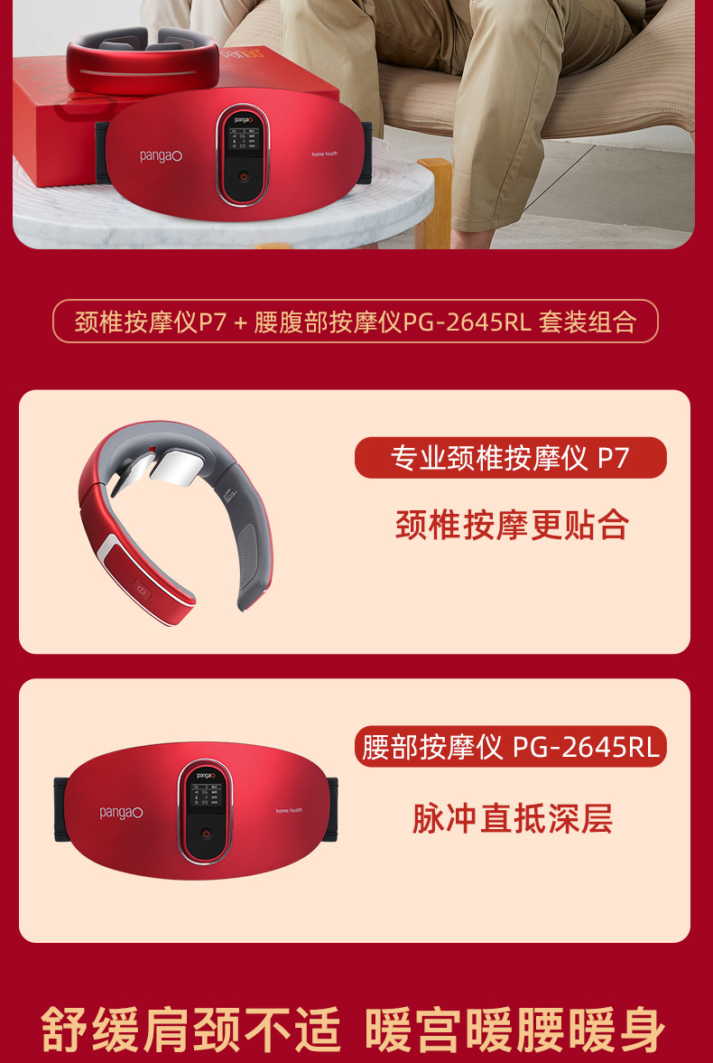攀高智能腰腹部按摩仪+颈椎按摩仪PG-2645RL+P7(礼盒套装)