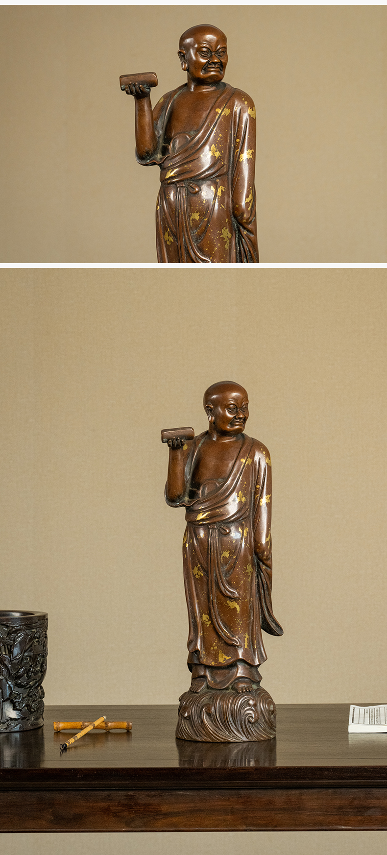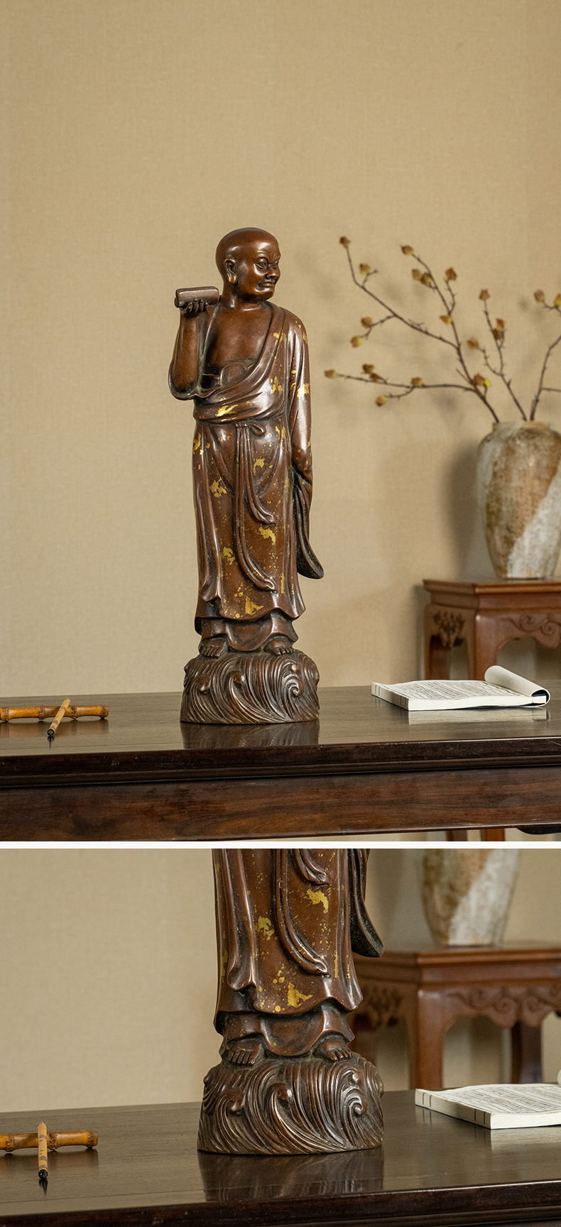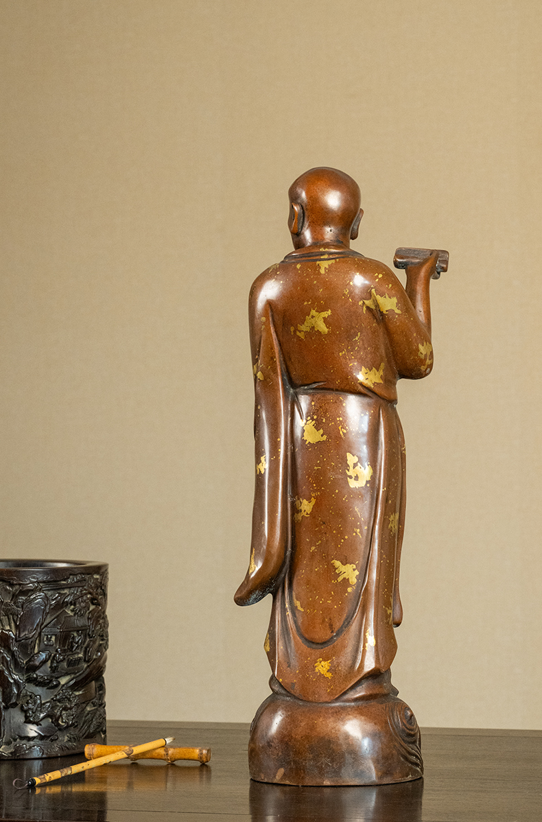 清 青金石嵌绿松石莲花盖盒(红木座)