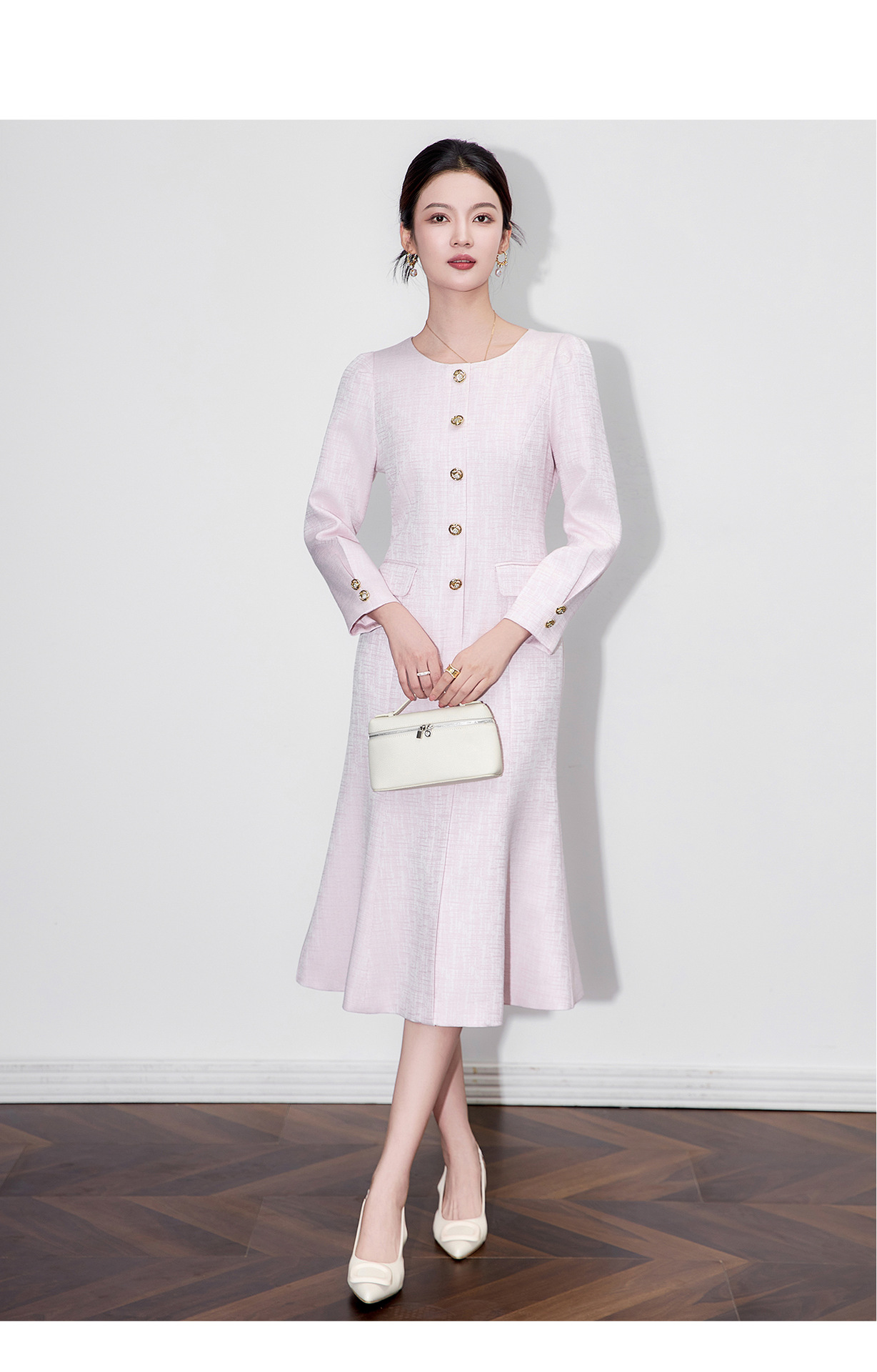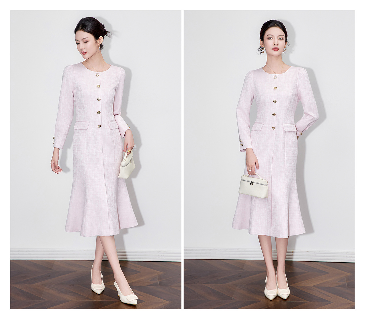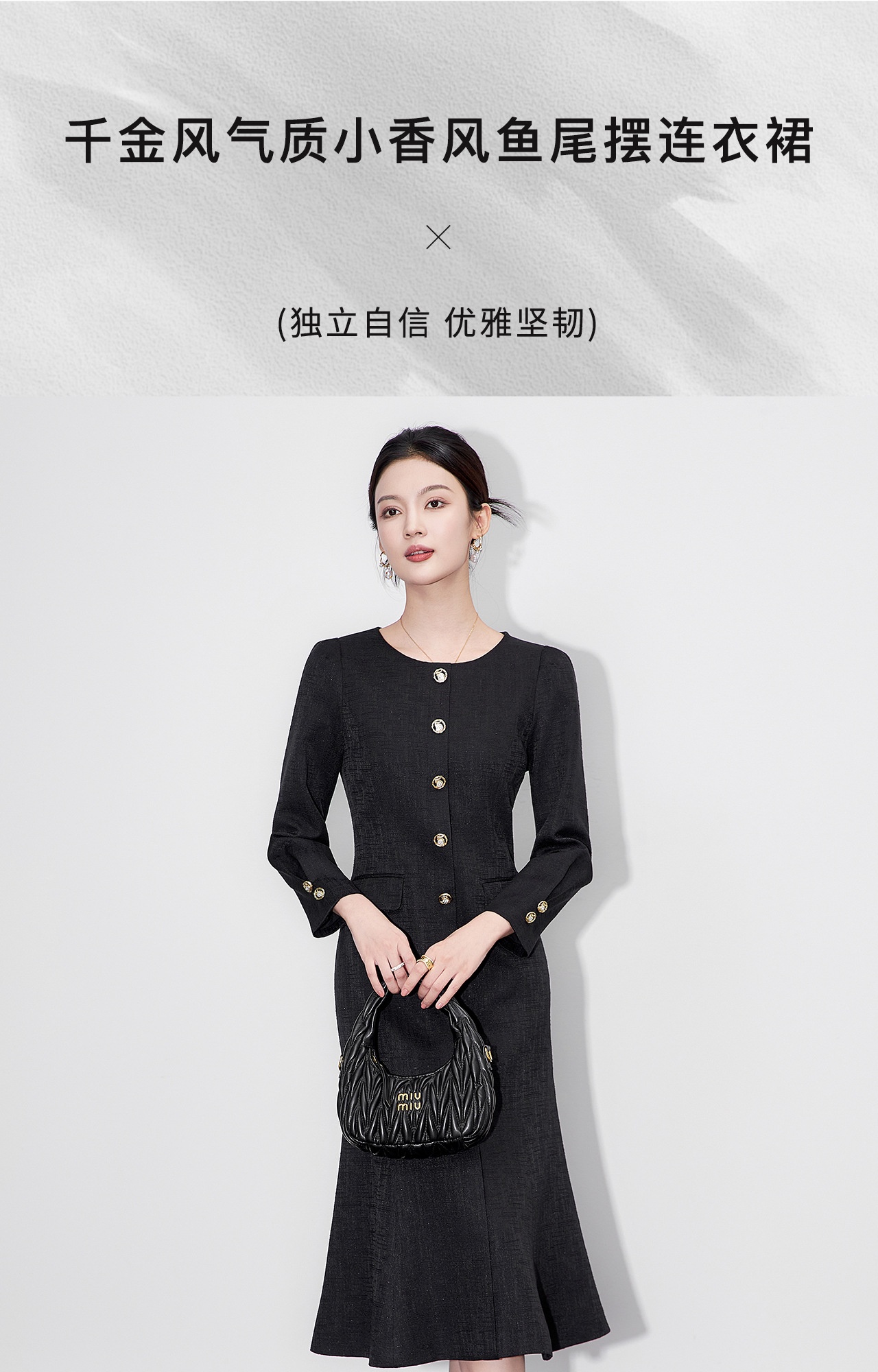 「高货wl」全新升级【铂金会员330/天猫439/差价109】(02919)洛诗琳新款优雅小香风连衣裙2025秋季法式收腰显瘦鱼尾裙