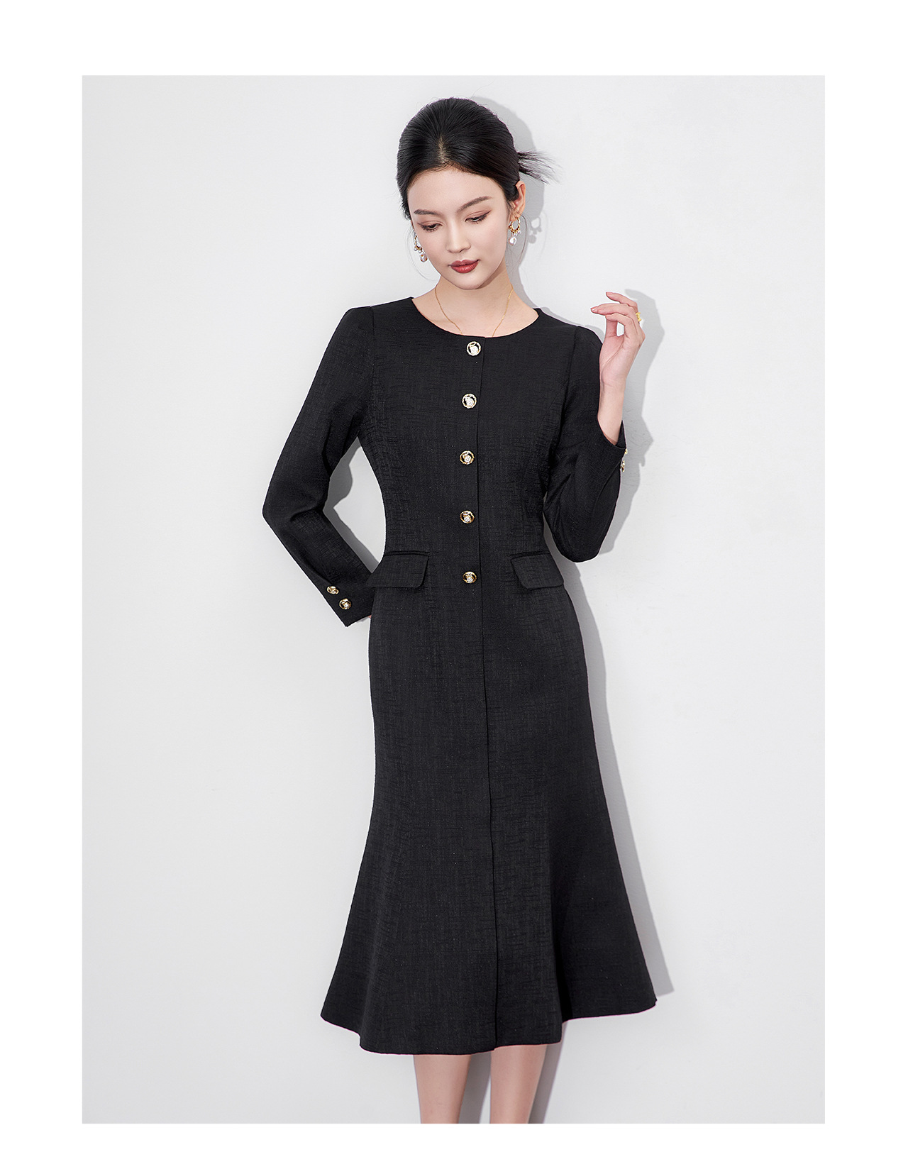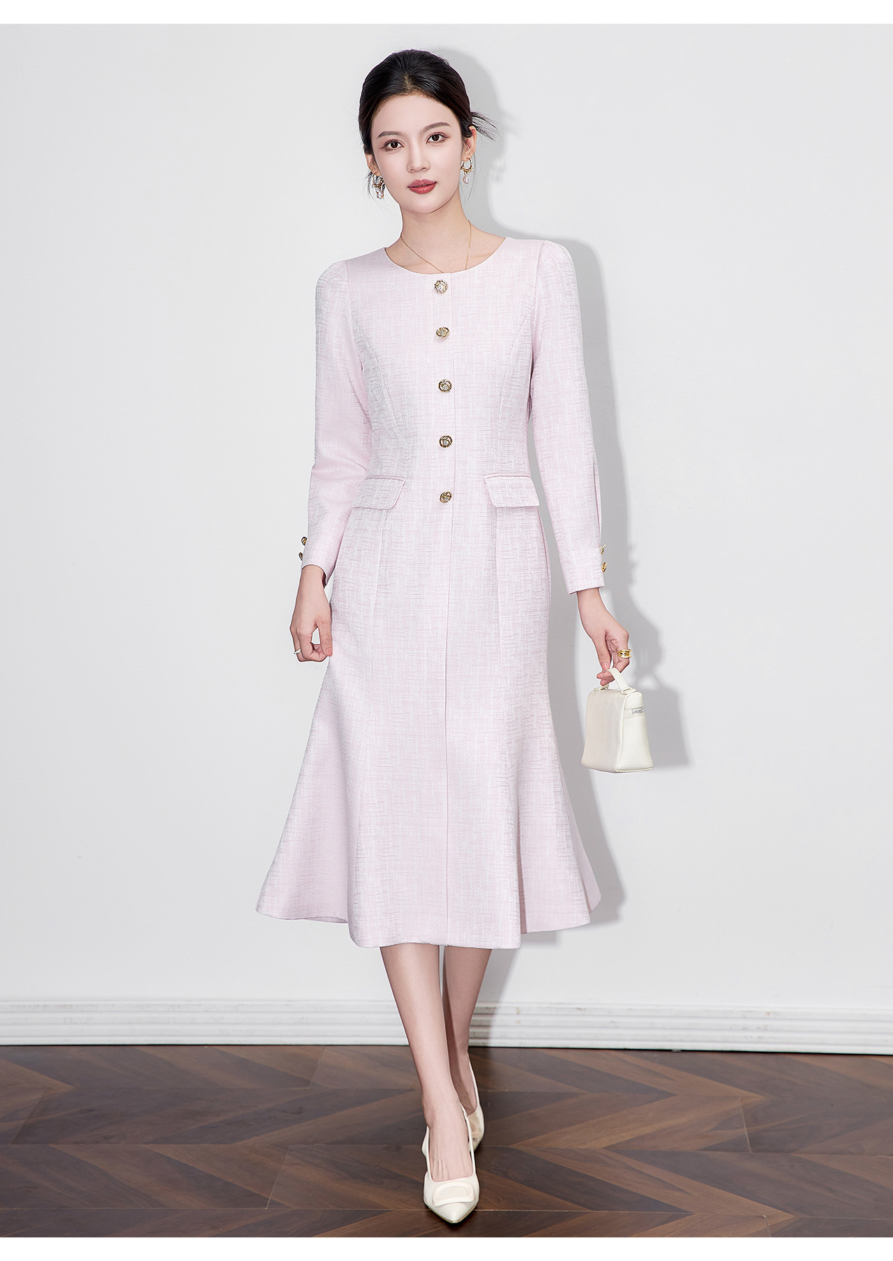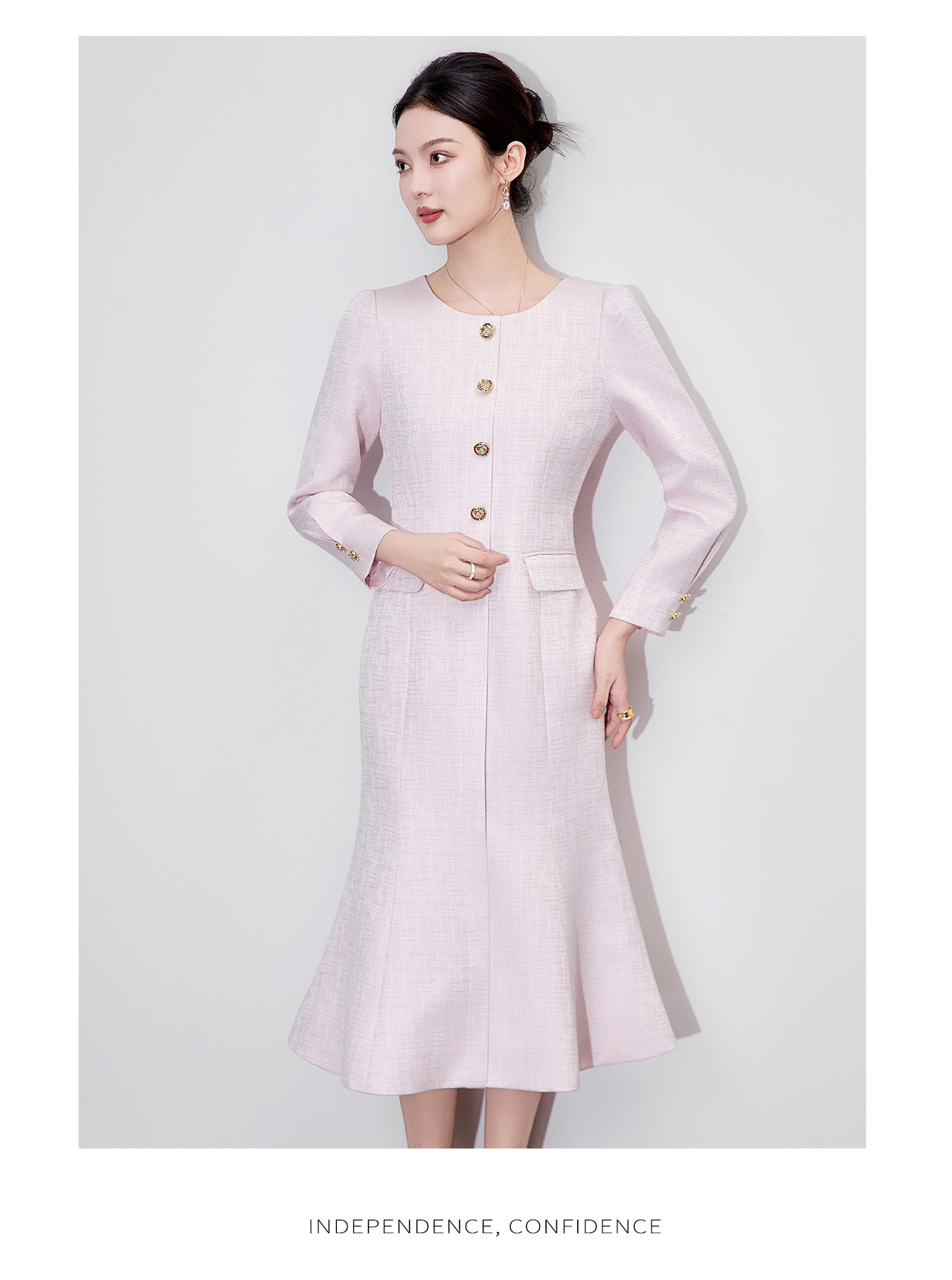 「高货wl」全新升级【铂金会员330/天猫439/差价109】(02919)洛诗琳新款优雅小香风连衣裙2025秋季法式收腰显瘦鱼尾裙