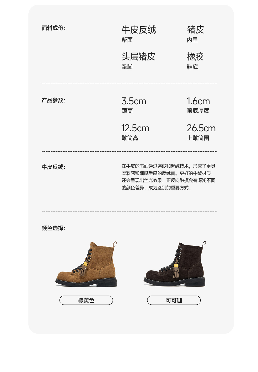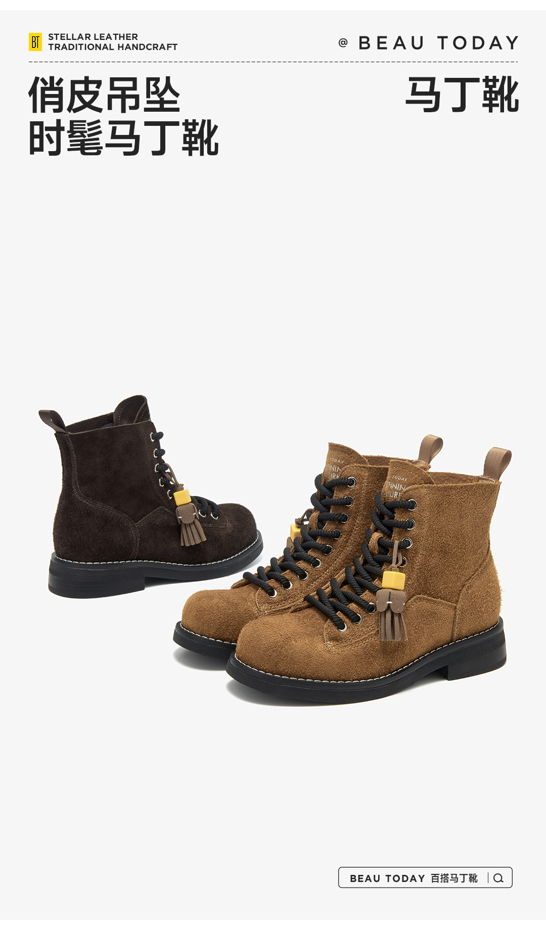 BeauToday 大黄靴厚底马丁靴复古工装靴
