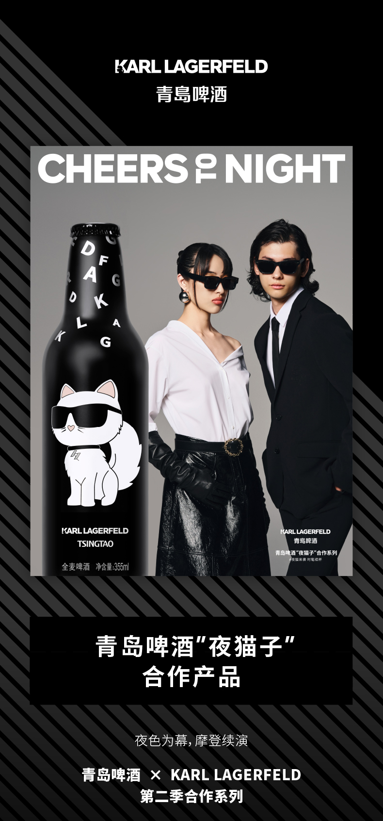 青岛啤酒夜猫子全麦啤酒卡尔拉格斐联名355ml*12瓶 商品图0