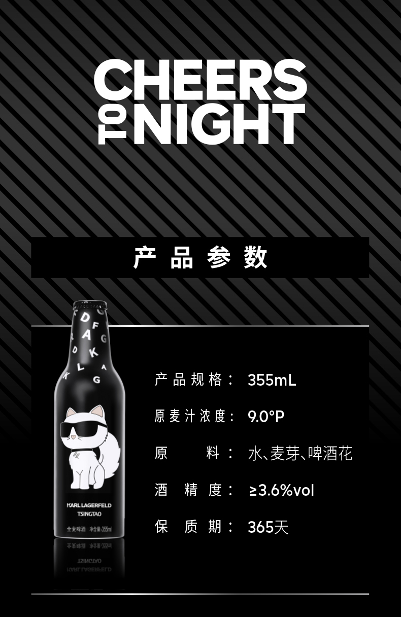 青岛啤酒夜猫子全麦啤酒卡尔拉格斐联名355ml*12瓶 商品图2