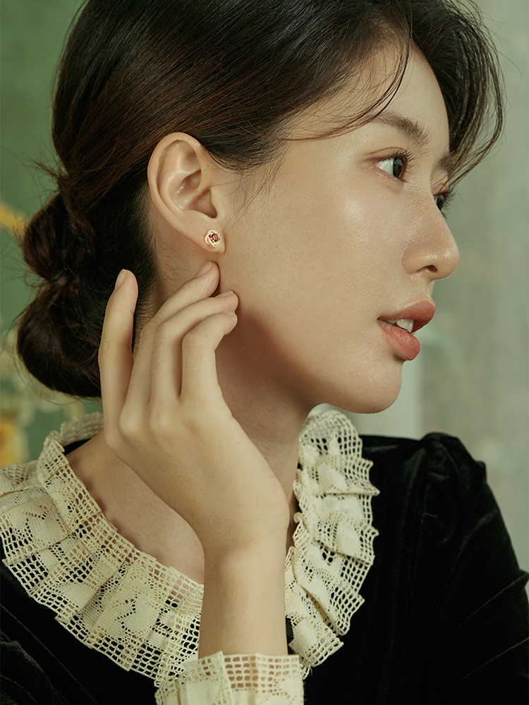 Oflye潮流饰品 S925银红色锆石镶钻耳钉女高级耳饰新款新年轻奢耳环 商品图4