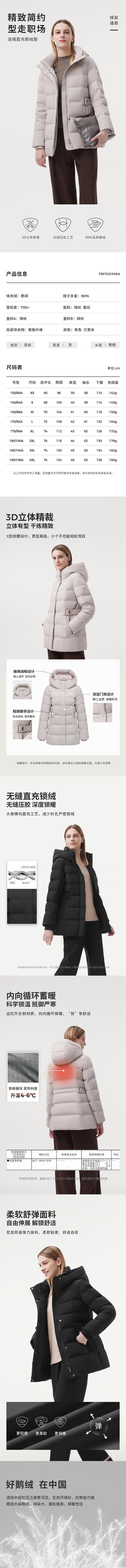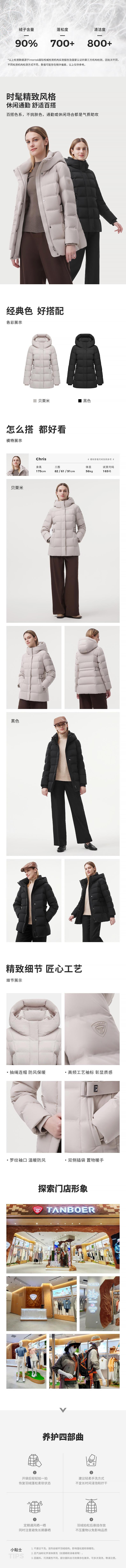 坦博尔 鹅绒羽绒服女连帽 TBF520396A