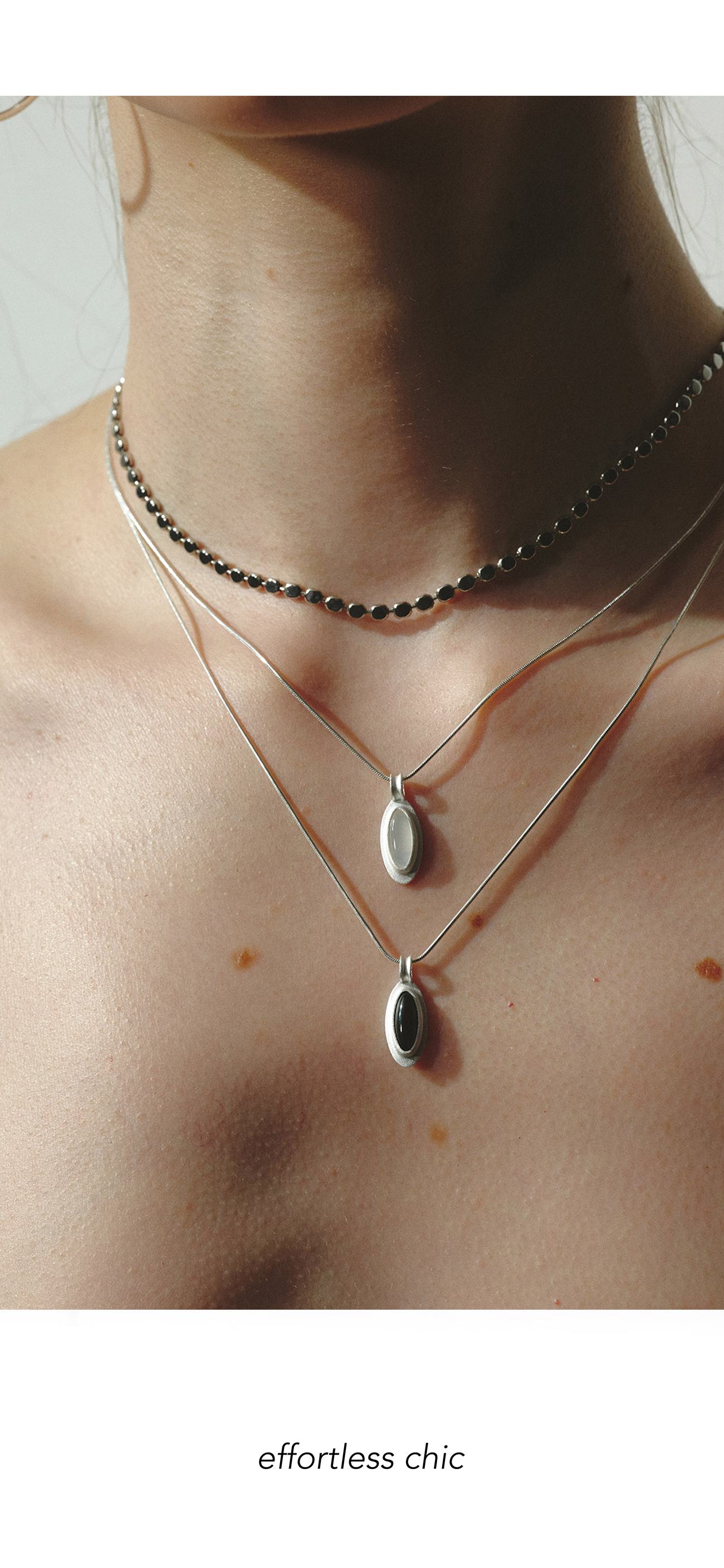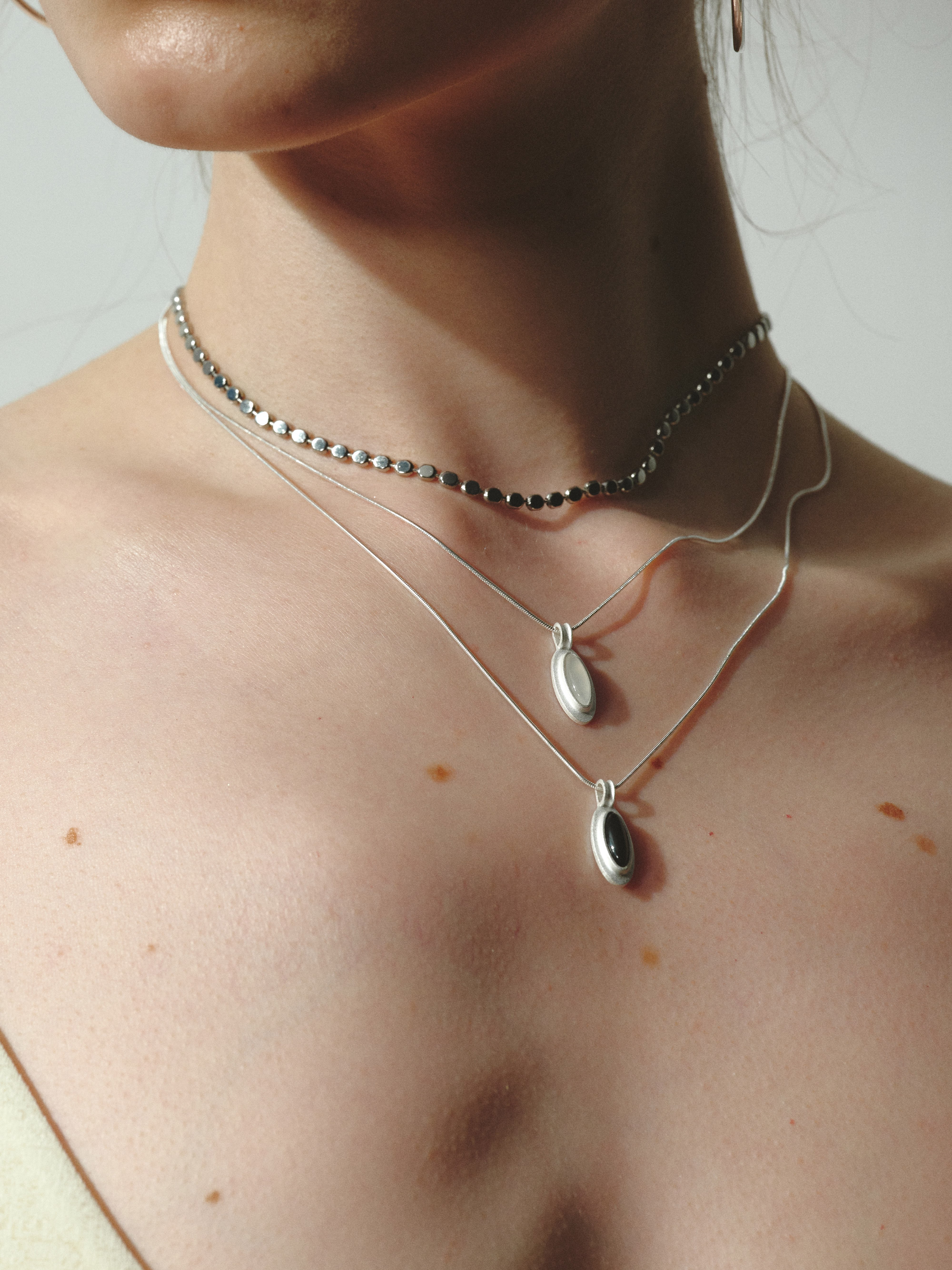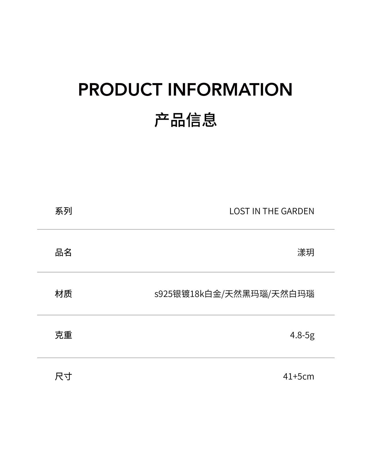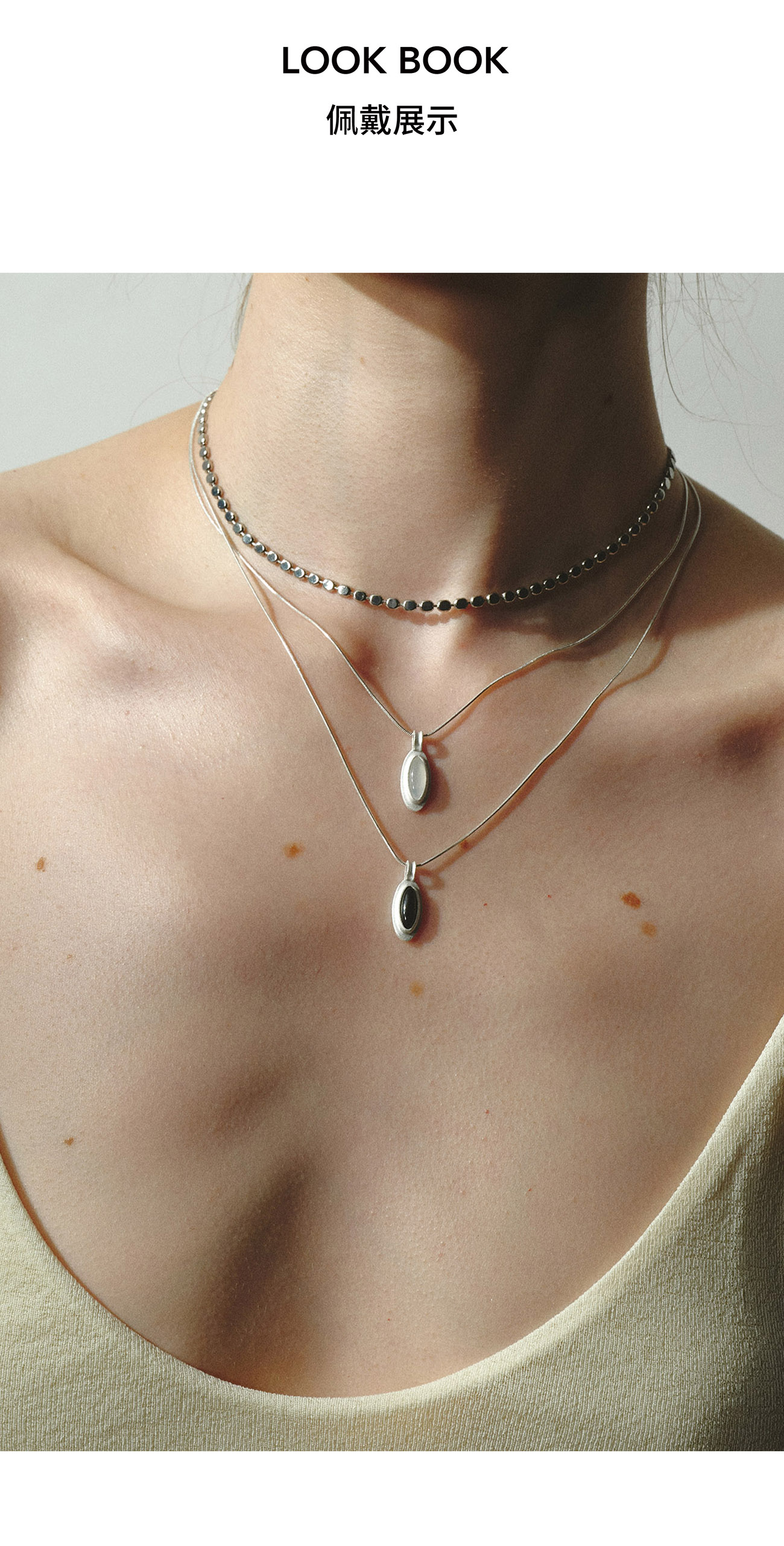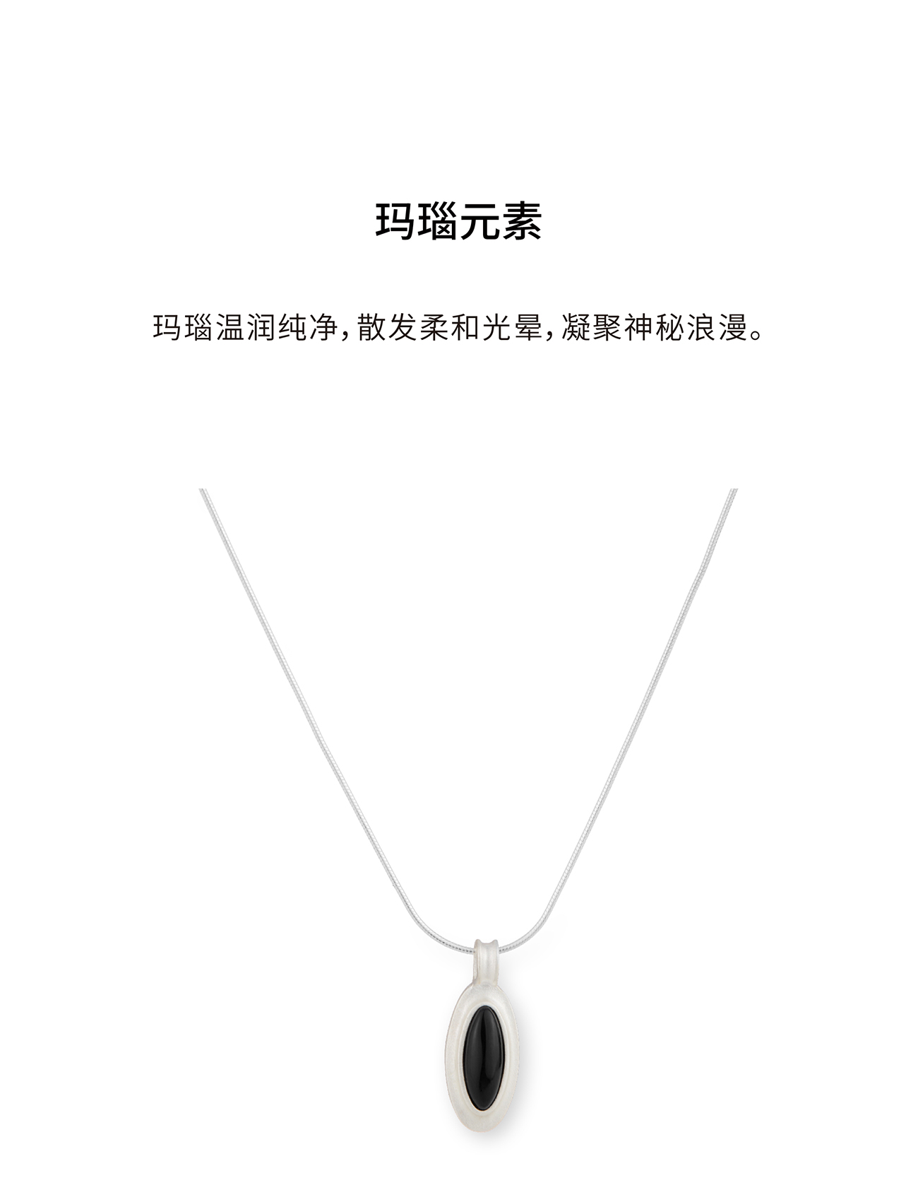 alodia.co|漾玥白玛瑙黑玛瑙项链S925银镀白金设计款