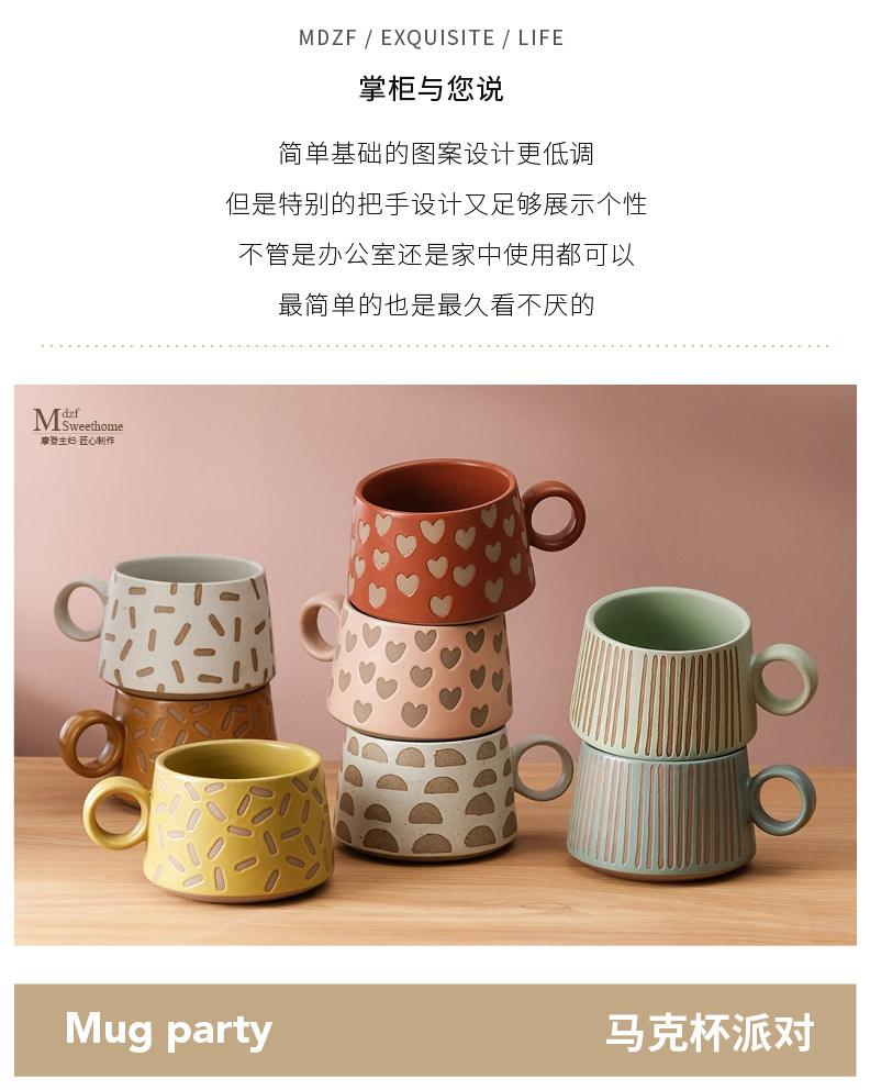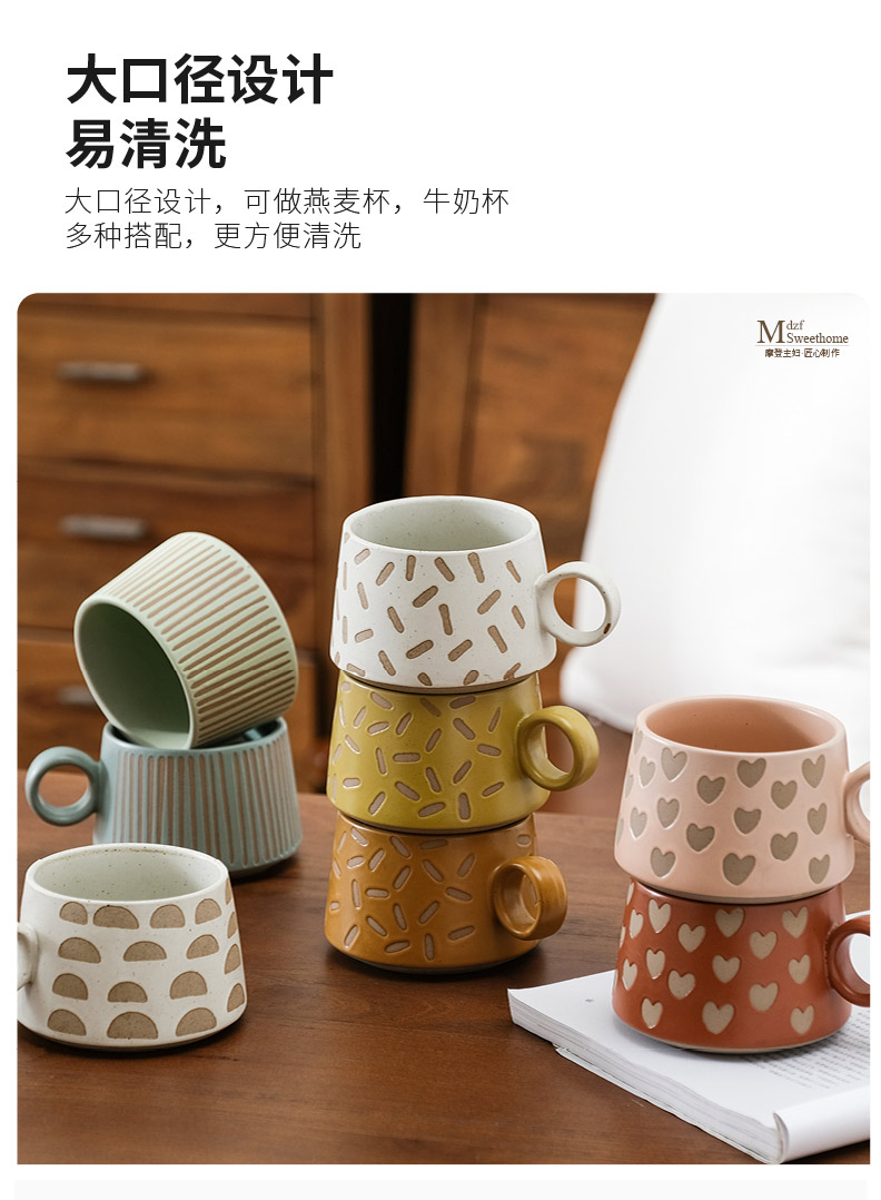 摩登主妇马克杯高颜值早餐咖啡杯复古大容量家用情侣水杯陶瓷杯子