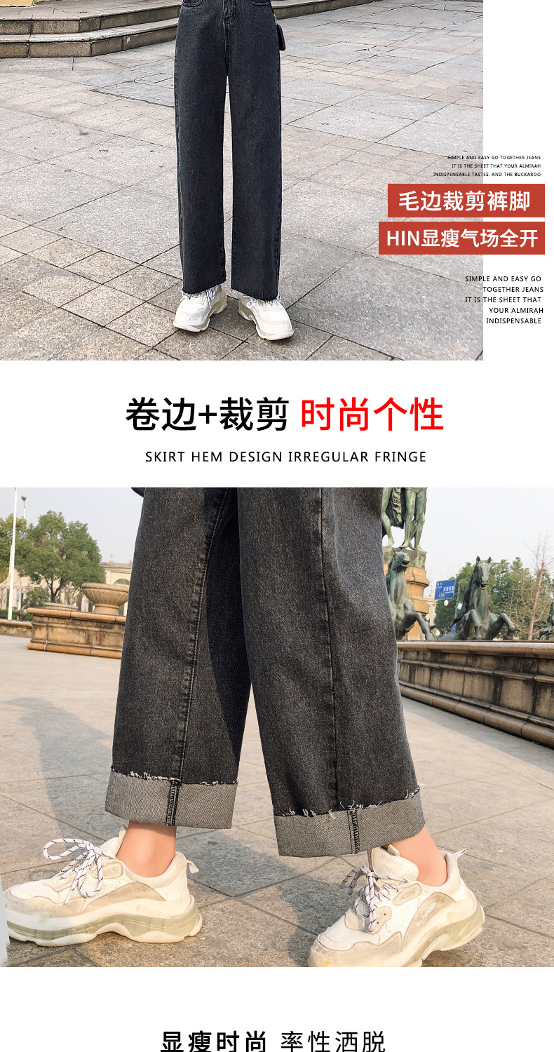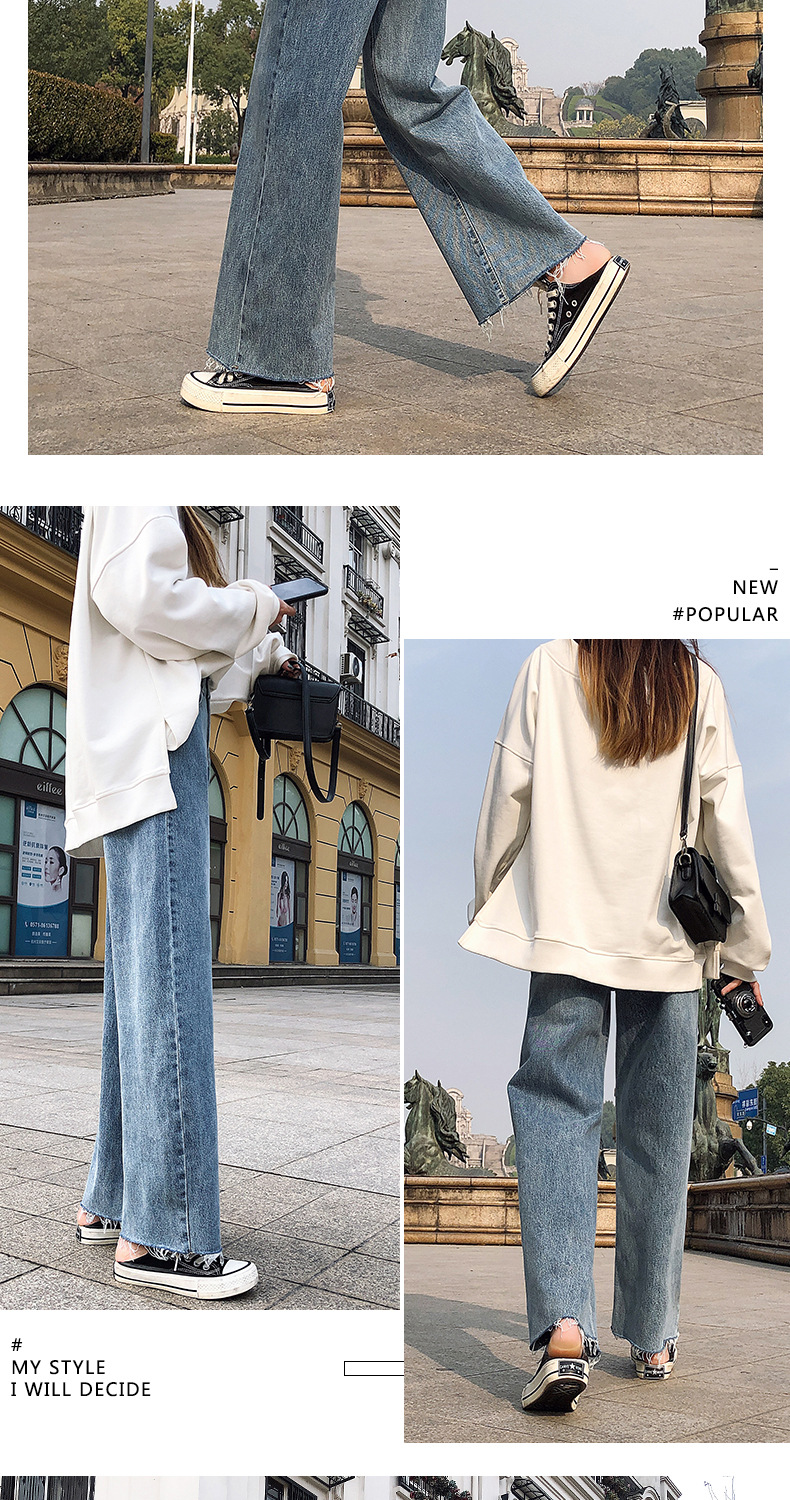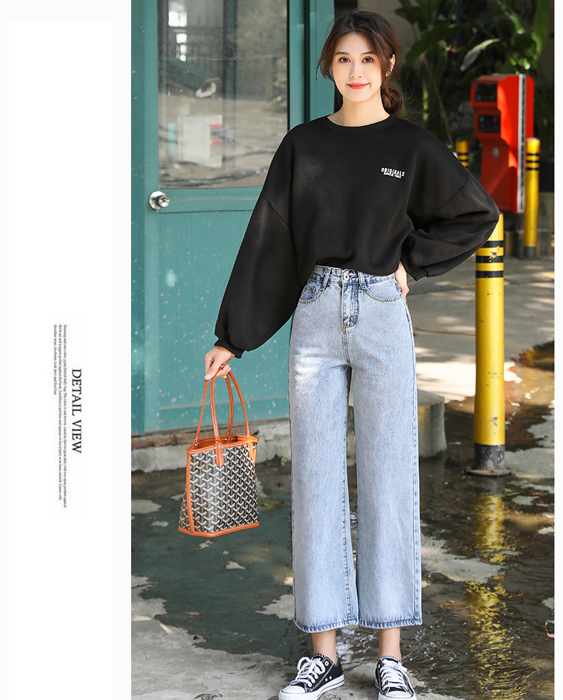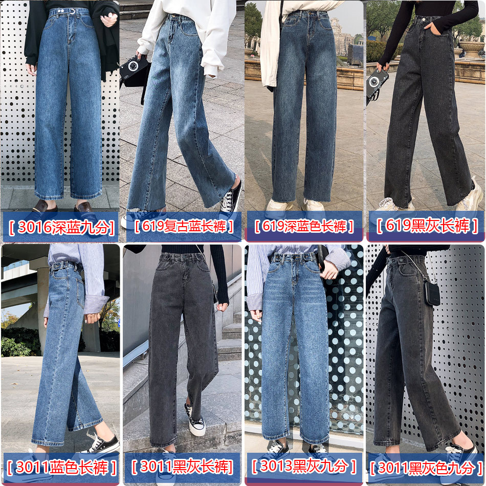 LG-1023新款高腰破洞直筒裤