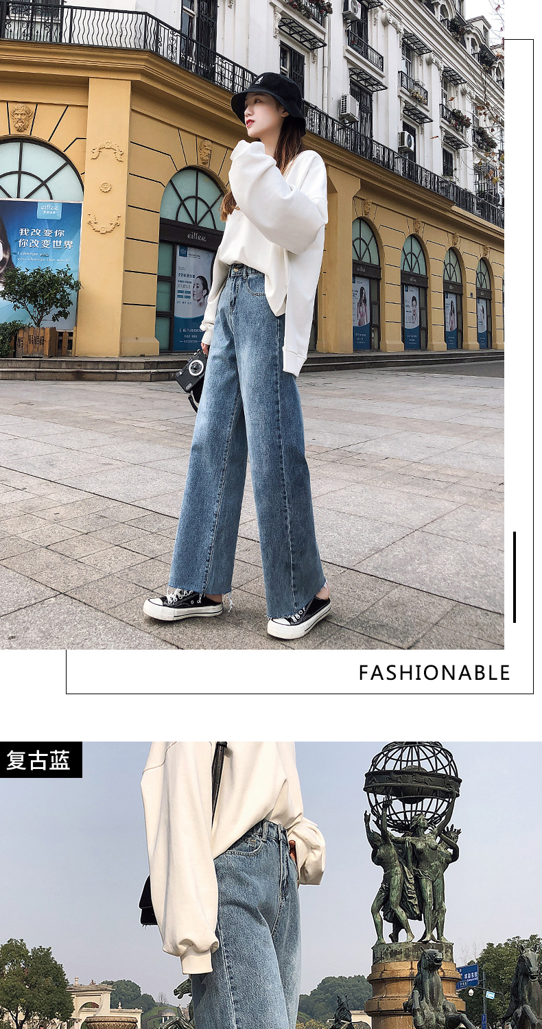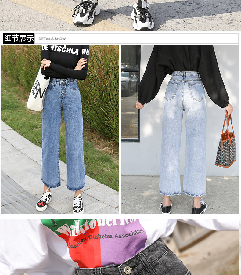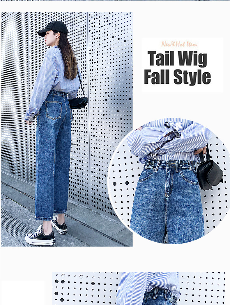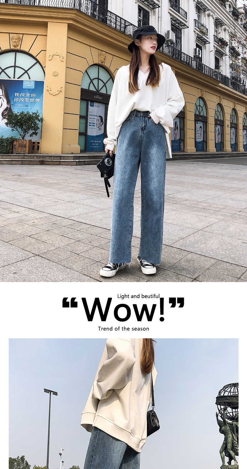 LG-1023新款高腰破洞直筒裤