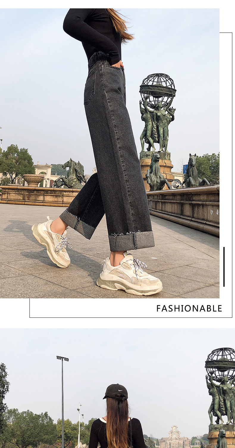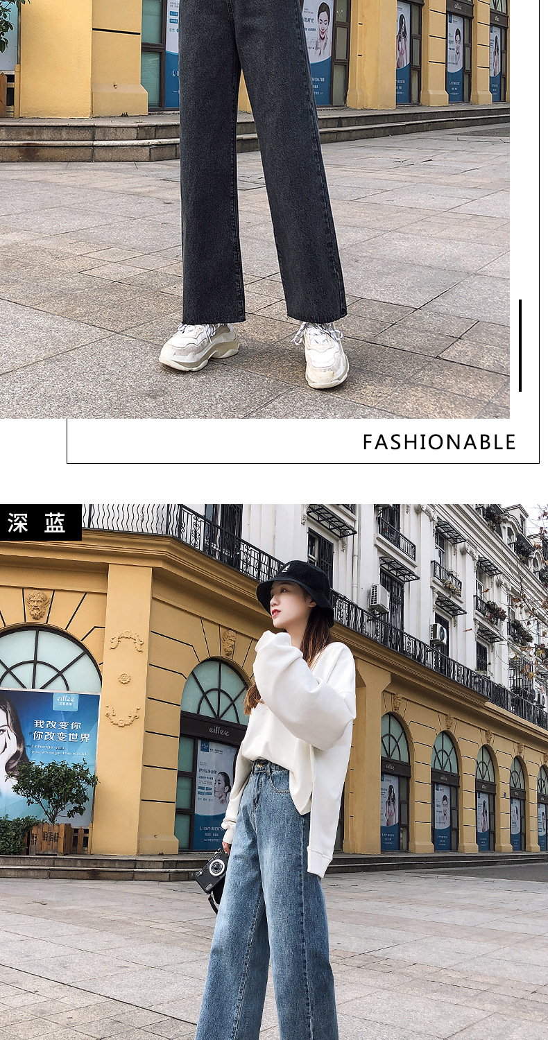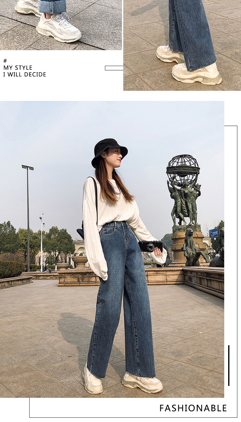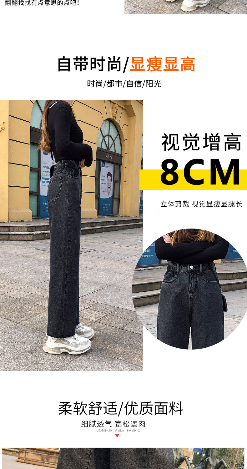 LG-1023新款高腰破洞直筒裤