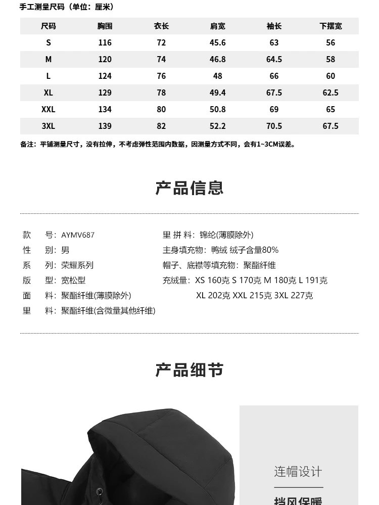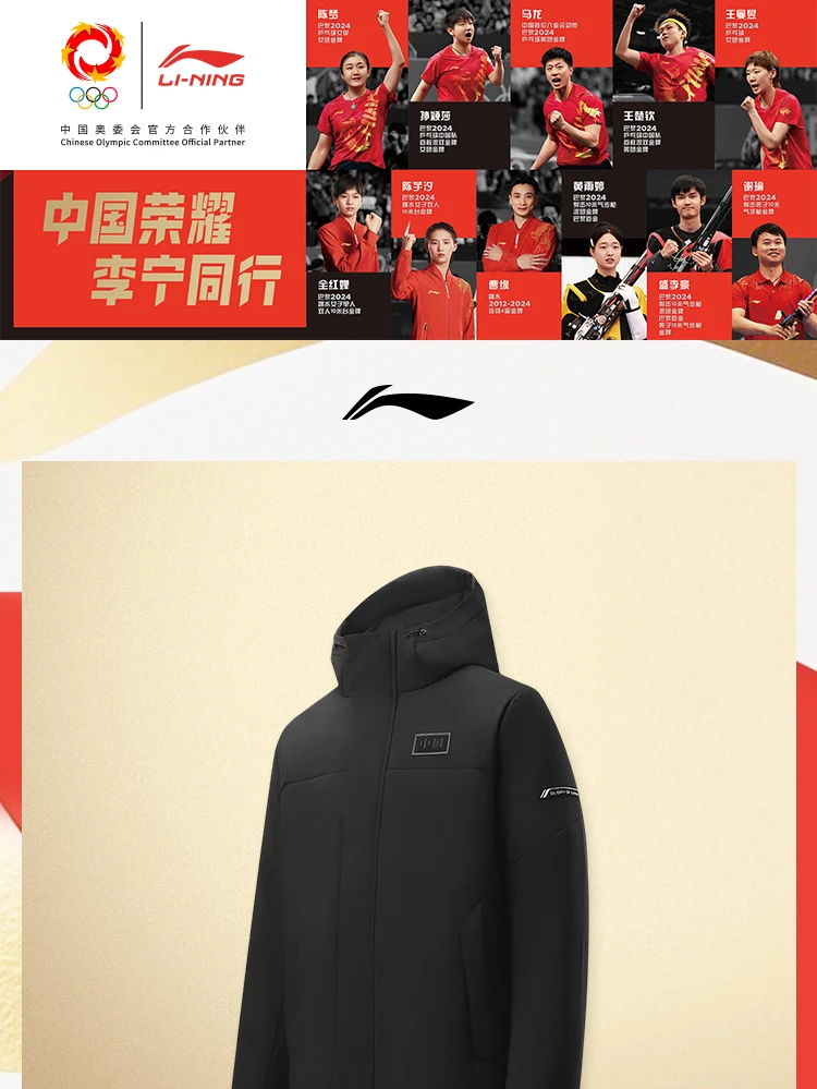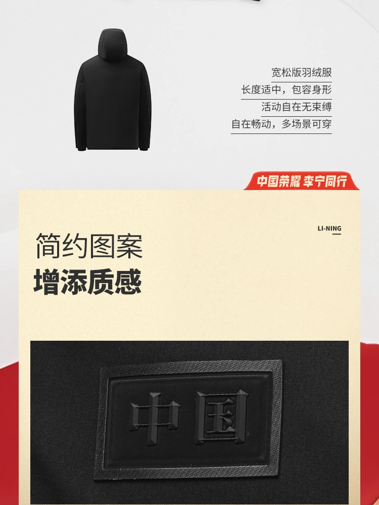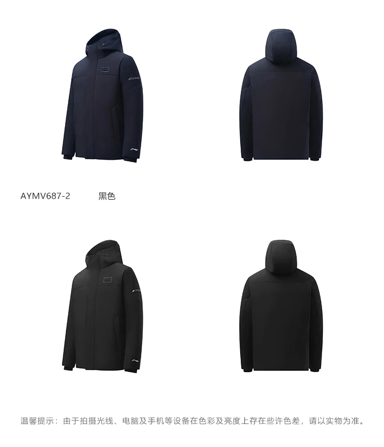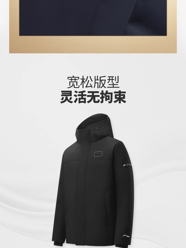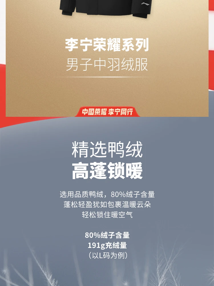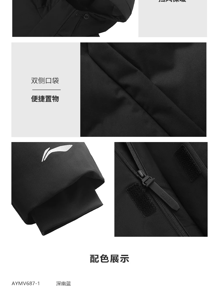 李宁荣耀系列男子防泼水宽松鸭绒中羽绒服AYMV687