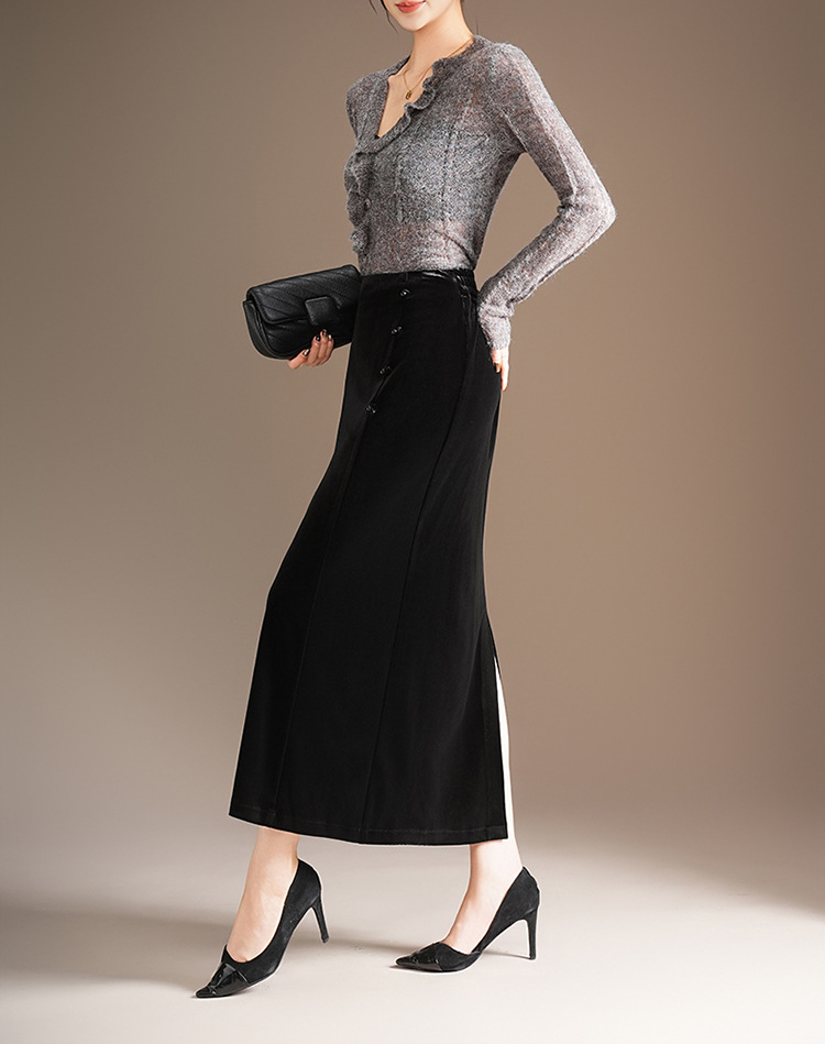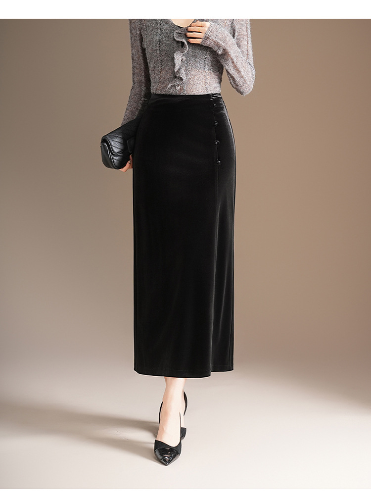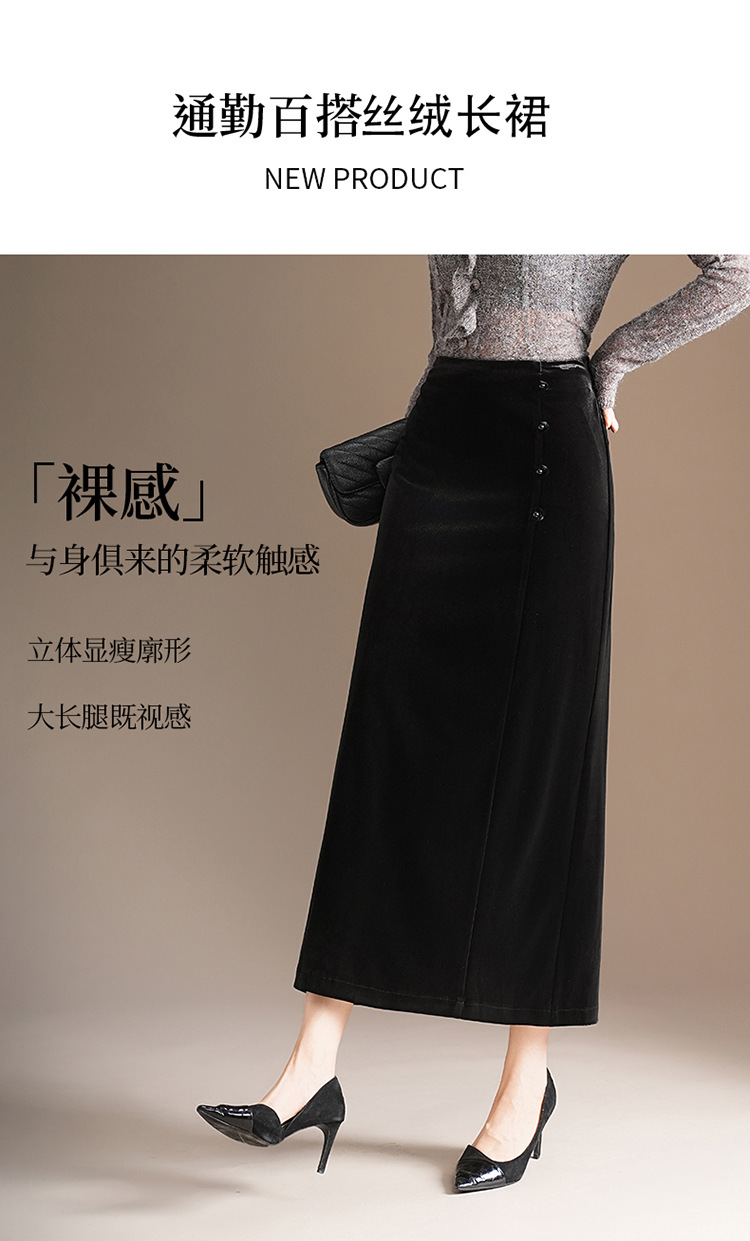 QYM M212-Y金丝绒开衩包臀裙半身裙时尚中长款优雅一步裙 商品图0