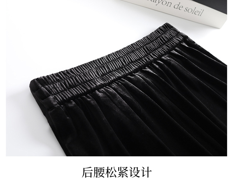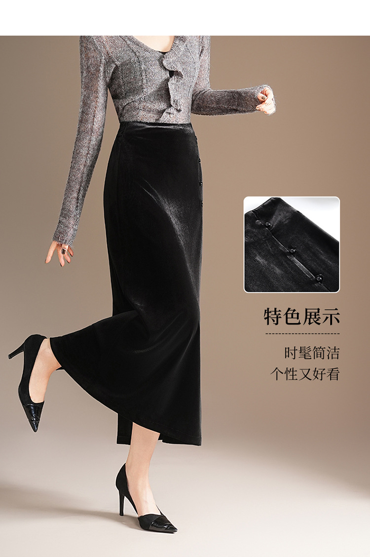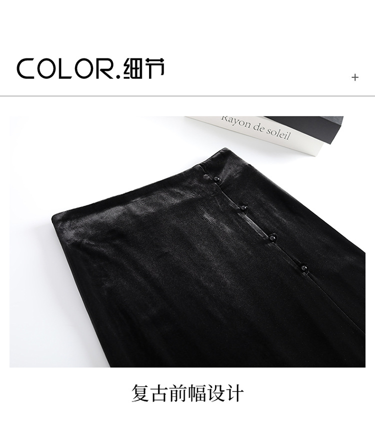 QYM M212-Y金丝绒开衩包臀裙半身裙时尚中长款优雅一步裙 商品图4
