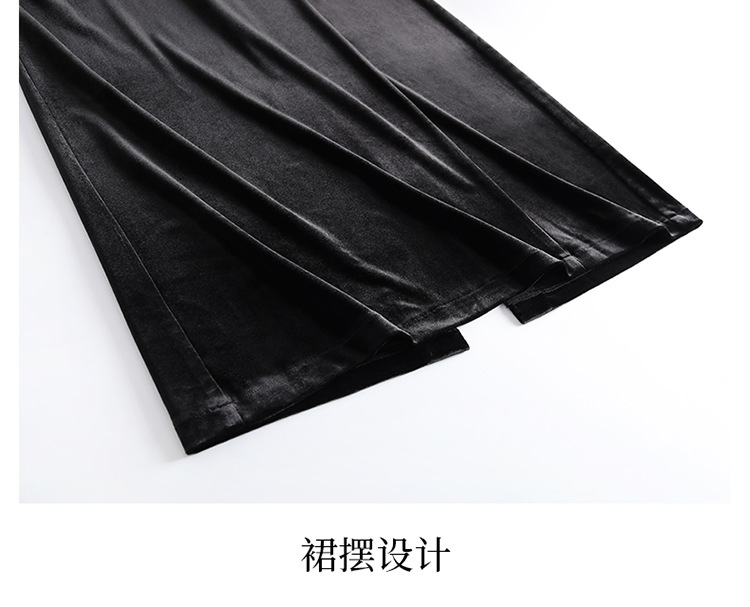 QYM M212-Y金丝绒开衩包臀裙半身裙时尚中长款优雅一步裙 商品图2